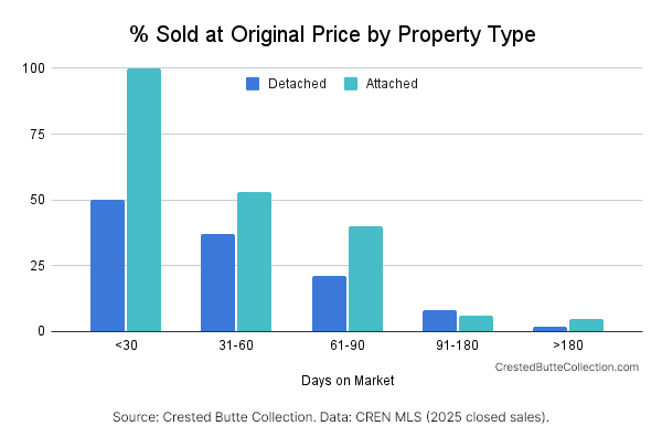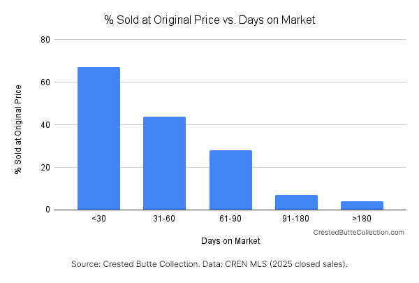 In Crested Butte, not a single single-family home on the market over 90 days sold for original price. Zero out of 30 properties.