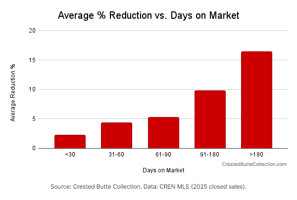 On a $1.5 million Crested Butte home, a 4% reduction at 60 days equals $60,000.