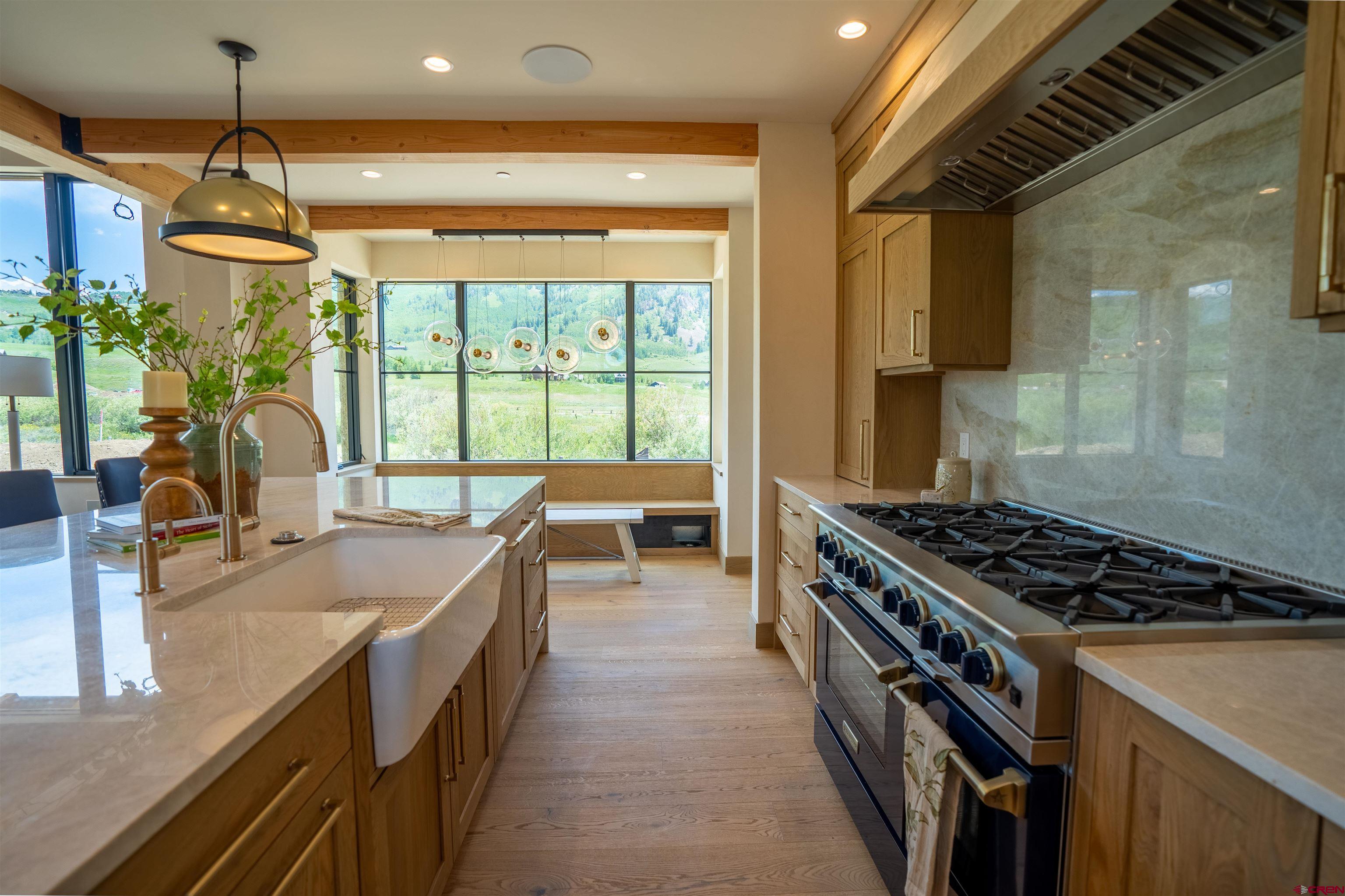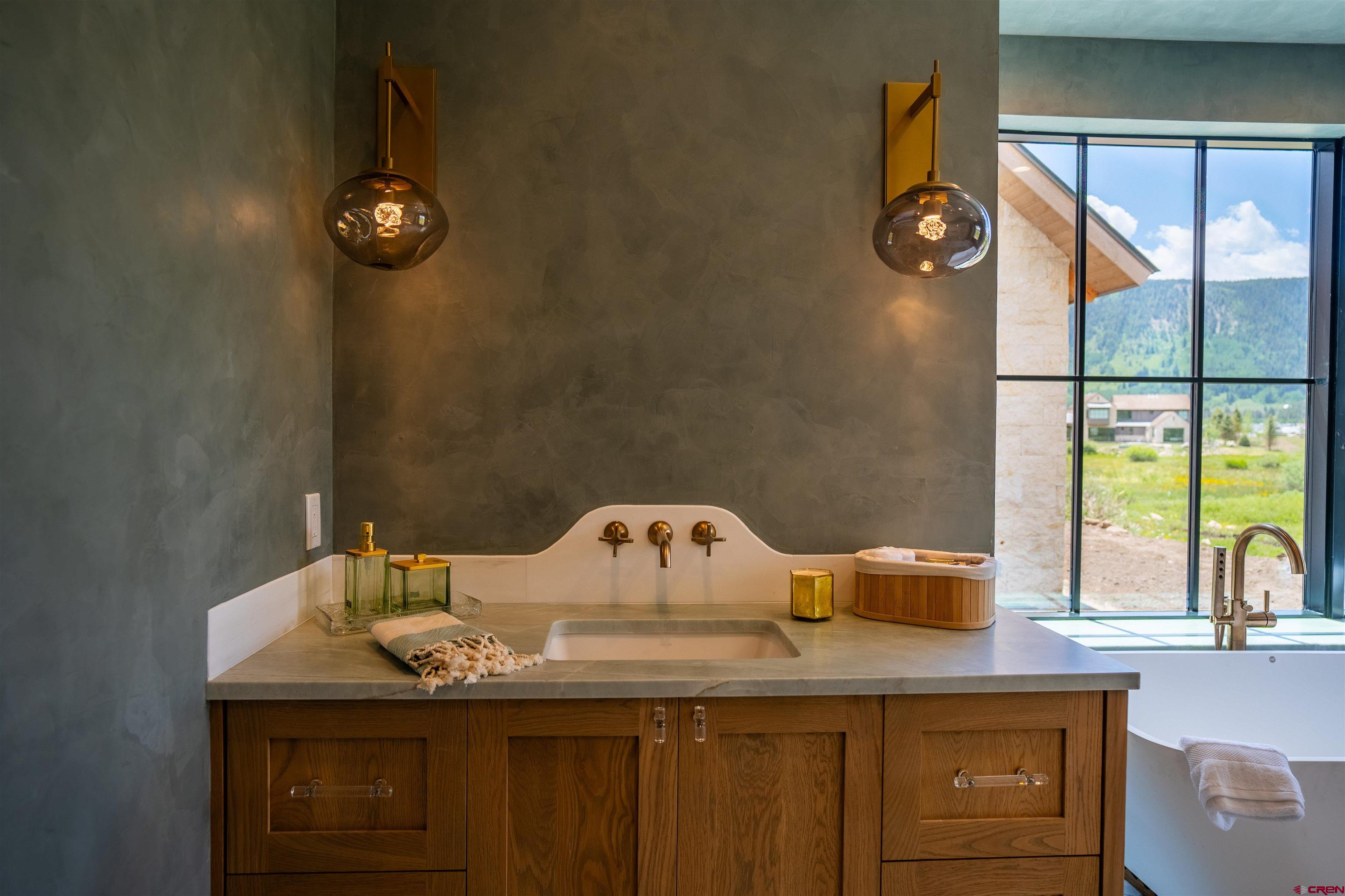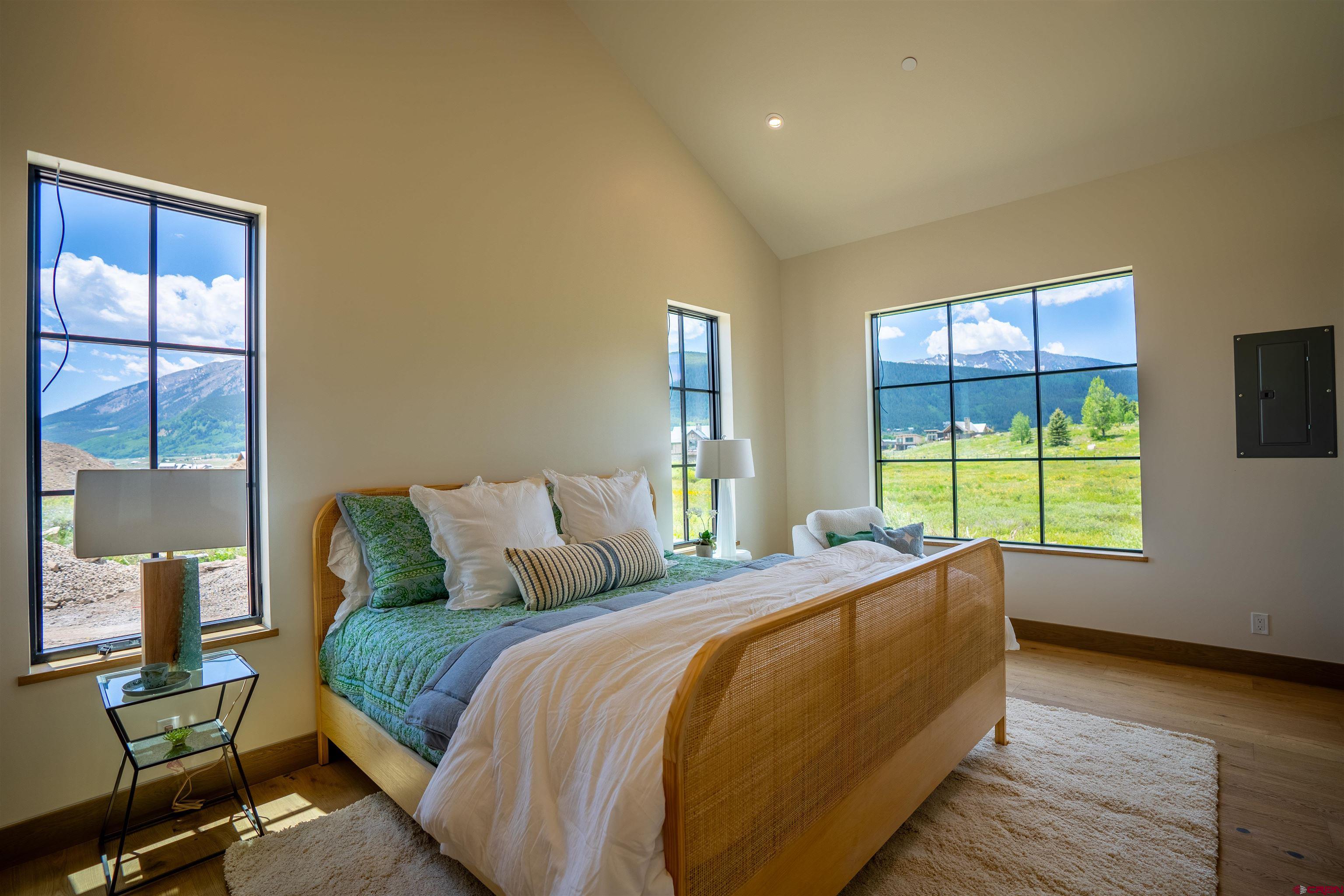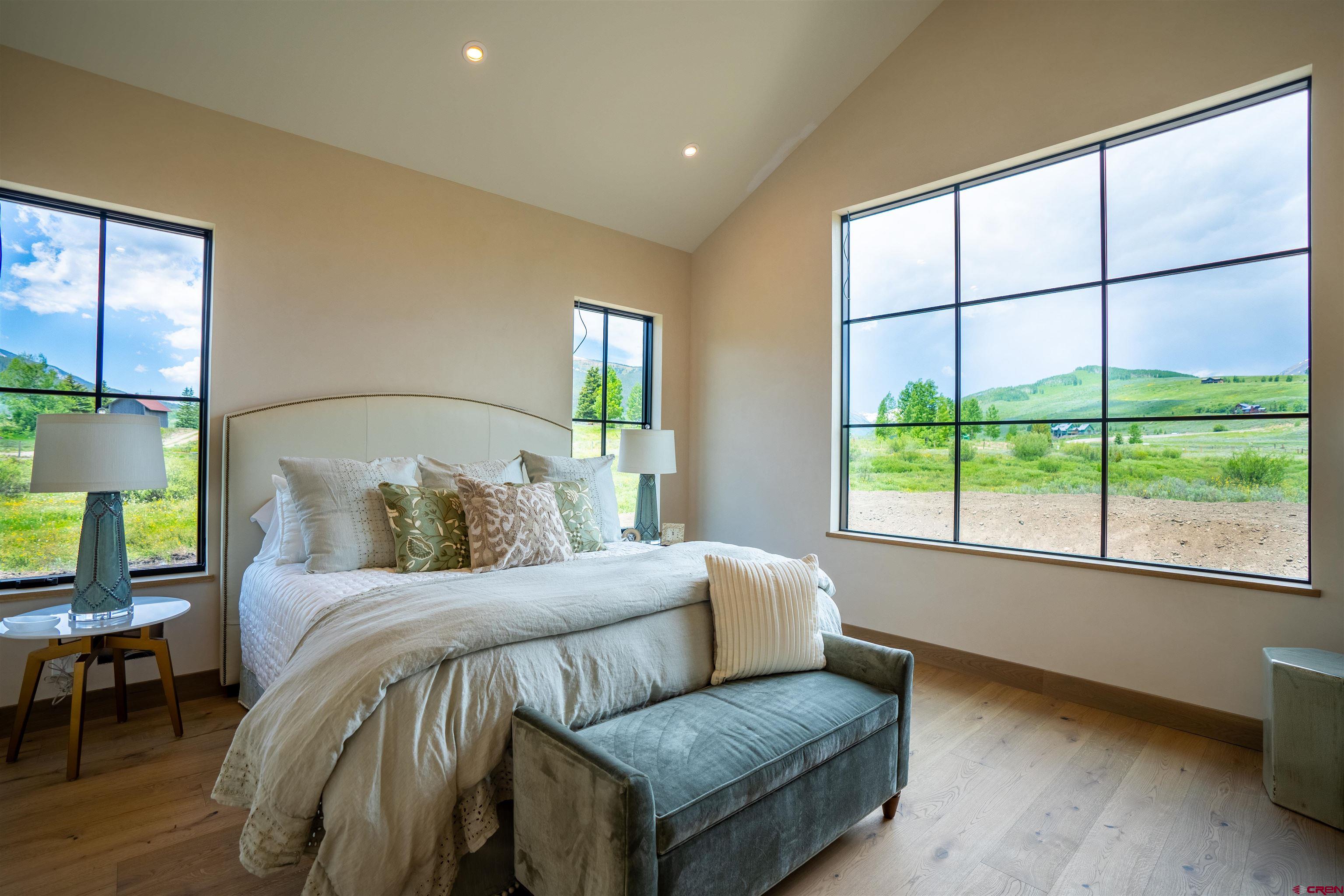 257 Pyramid Ave is a custom built, mountain modern home and is the team effort of SHM architects, Michael Weil Custom Home builders and the design vision of Erin Kiltz and Niki O'Connor. It comes completely furnished and ready to move in; bring your toothbrush because everything else is provided! This magnificent home is in the Aperture subdivision in Crested Butte, Colorado and boasts 5 bedrooms and 5 1/2 baths in 5065 square feet. Additionally, there is a 2 car, 580 square foot attached garage. This property combines the accessibility of being in town with the larger lot and home size of being outside of town proper. This lot is arguably the best lot in the subdivision as it is located at the end of a cul-de-sac and has privacy as well as stupendous views of the surrounding mountains. It is surrounded on 2 sides by open space. The house is fully furnished, including dishes, linens, etc so it is a brand new house that is literally move in ready. This is no typical spec house. This house has many upgrades from even a custom home, let alone a spec house. The builder is including an oxygenated bedroom which simulates lower elevation for better sleeping, custom American Clay walls, an audio/video/security/wifi system, 2 fireplaces - one of which is double sided, and it comes fully furnished in mountain modern style. The sellers even selected the rugs personally, in Turkey. There is a built-in grill, and the home is designed around a courtyard for privacy. The guesthouse sports a complete kitchen, as well as bedroom, living area and bathroom. The Aperture neighborhood has a pavilion for group gatherings, and fishing and water sport access directly in the subdivision.