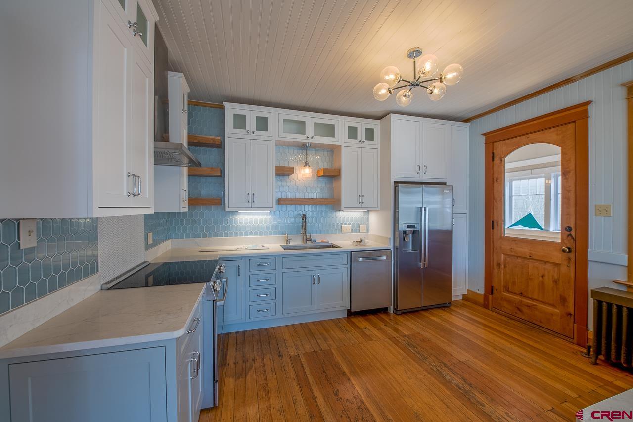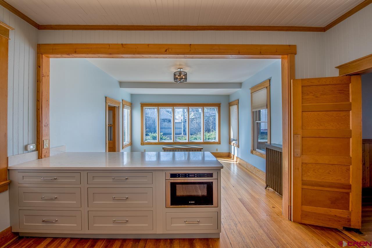 This home represents the complete, in town package. Charm, character and convenience abound in this historical home in the center of Gunnison. The home was originally built in 1889 and remodeled to retain the original features with modern conveniences. From the front covered porch, enter into an open living room with fireplace, den in the back and dining room, open kitchen, large pantry and breakfast room with large windows to capture the morning sunshine. The first floor includes two bedrooms and two bathrooms. Stairs from the hallway lead to two additional bedrooms, bathroom and bonus area. This historic gem is situated on an oversized lot with mature landscaping and encompassed by a custom iron fence to accent the home. Centrally located a couple blocks from Western Colorado University campus to the east and downtown and all its conveniences to the west, your new home is surrounded by homes of equal appeal. A real bonus is the three car detached garage with upstairs apartment (2 bed / 1 bath) that offers additional short or long term income to make this package more affordable or accommodating to your guests. A must see for your buyer.