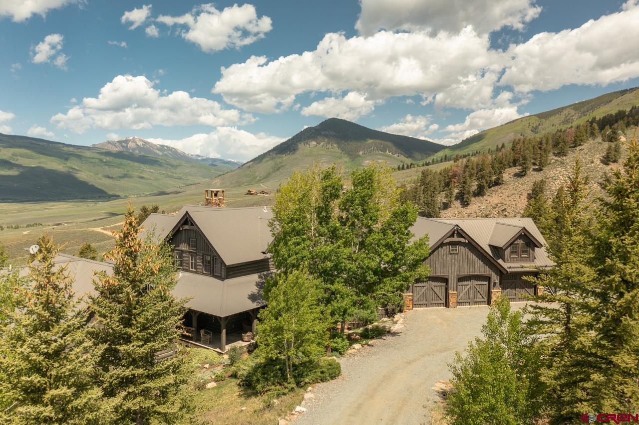 An incredible and rare offering at Roaring Judy Ranch near Crested Butte, this spectacular 118 acre ranch property borders US Forest Service land and features stunning 100-mile mountain and valley views, all day Colorado sunshine and a beautiful mix of dark timber and aspen groves. Roaring Judy Ranch borders the protected Almont Triangle State Wildlife area, home to a variety of wildlife including big horn sheep, elk and deer. Convenient yet private, from this central location it's just 18 miles down valley to Gunnison's jet served airport and 12 miles up valley to the historic mining town of Crested Butte and the ski resort. Nearby, the Jack's Cabin Cutoff road provides quick access to the public lands and world class fly fishing on the legendary Taylor River. Whether you are entertaining a large group, hosting a reunion or leading your crew on a trail hike from the front door, this legacy property will accommodate family and friends in style and grace for years to come. Every square foot of the spacious six bedroom ranch house and the one bedroom guest cabin is dressed in exquisite finishes and materials including reclaimed wood, wide-plank and flagstone flooring, gorgeous posts, soaring beams and trusses, American Clay walls and designer lighting and hardware. The main level living room and primary bedroom suite both enjoy commanding rock fireplaces and every bath features amazing custom vanities, tops and tile treatments. The spacious chef's kitchen features island seating, a Viking range and hood, a Subzero refrigerator and Thermador wall ovens. Among the home's many distinctive architectural elements, the sky bridge connecting the main living area to the north wing is a stand out with dramatic stone floors and a captivating view of iconic Red Mountain to the west. Other interior highlights include a state-of-the-art home automation system for sound, lighting, window shades and security. There is an oversized three vehicle garage that includes a caretakers apartment above and down below there is another big garage and storage space perfect for ATVs, snowmobiles, bikes and skis! Outside, flagstone steps, walkways and patios connect the covered porches to the amazing wildflower gardens, water features, the wood burning fire pit and the well designed outdoor living spaces and expertly outfitted outdoor kitchen. The property is fenced and includes a loafing shed and riding arena. The property's furnishing package is negotiable. Showings are by appointment only.
