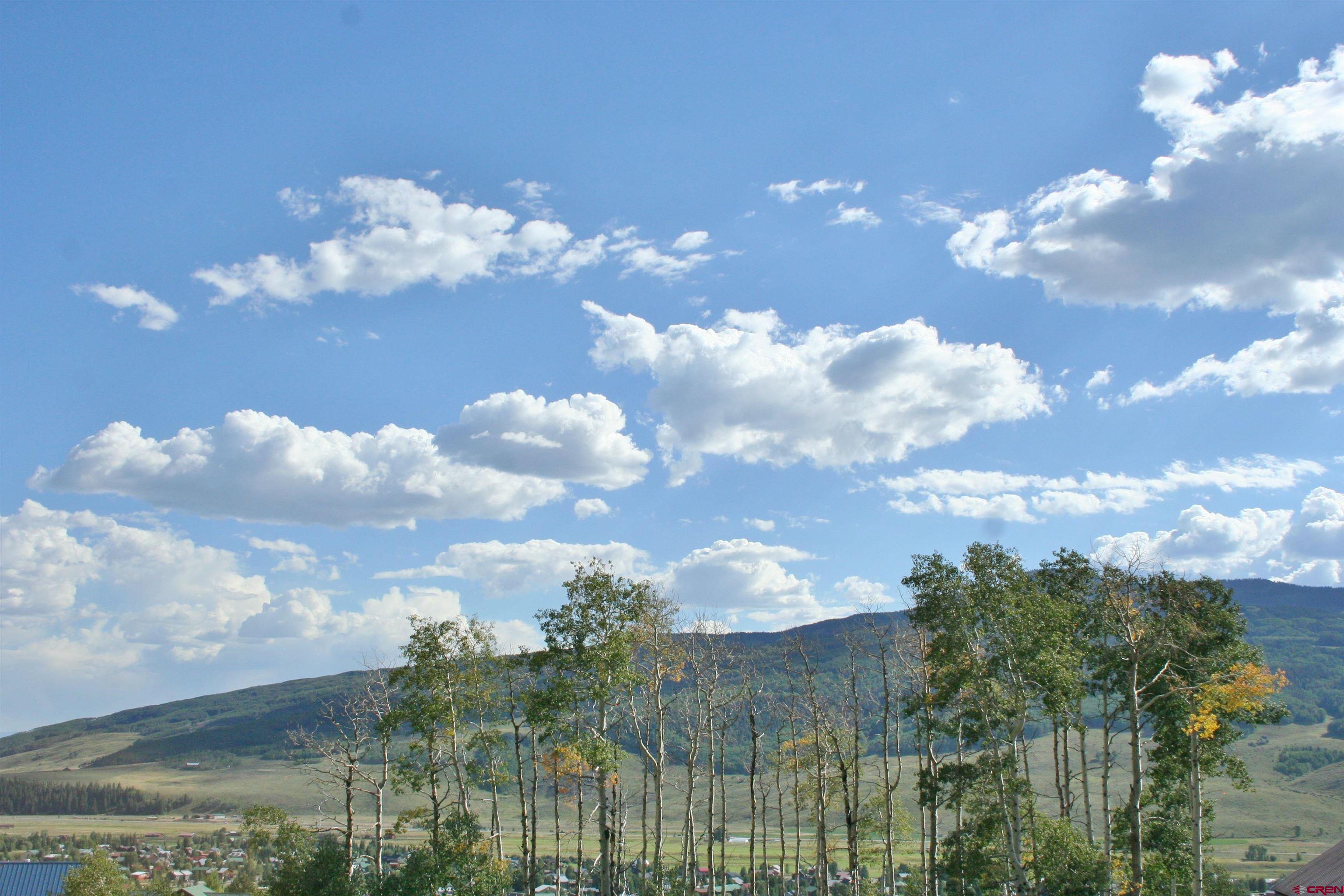 Situated high up the hill at Crested Butte South, this 1/3 acre homesite is a quality location for your Crested Butte home. With a terraced topography and lots of aspen trees perched on the high side of Anderson Drive, the views are a broad vista toward Whetstone Mountain and across the valley with the San Juan Mountains in the distance. The north neighbor has a generous side yard setback enhancing the north views. On the south, a nearby streamlet greens up the groundcover. The large open space parcel at the rear extends 200’ north from the property and is over 1,000 feet long. Across the street, the sloping grade makes a new build situated lower in profile. Nearby along Cement Creek Road are trails and back-country roads for mountain adventures. Crested Butte South has recreation amenities, cross-county ski trails, dining and everyday conveniences. The cul-de-sac street makes for a quiet, residential character with attractive neighboring homes. This quality homesite is a rewarding parcel to create your new home.