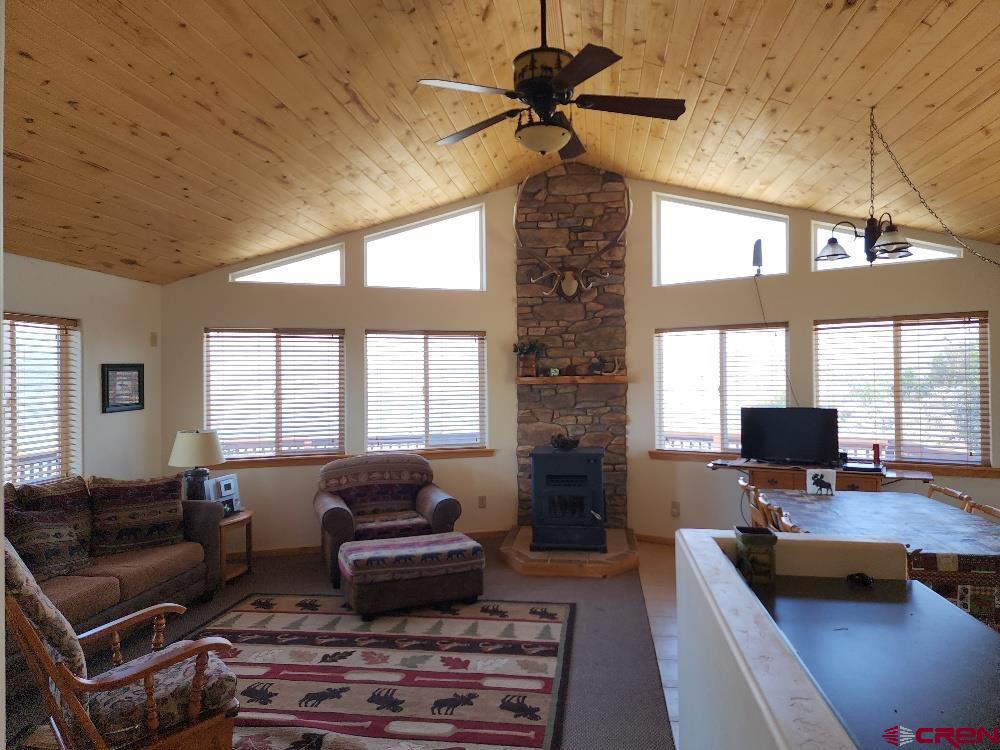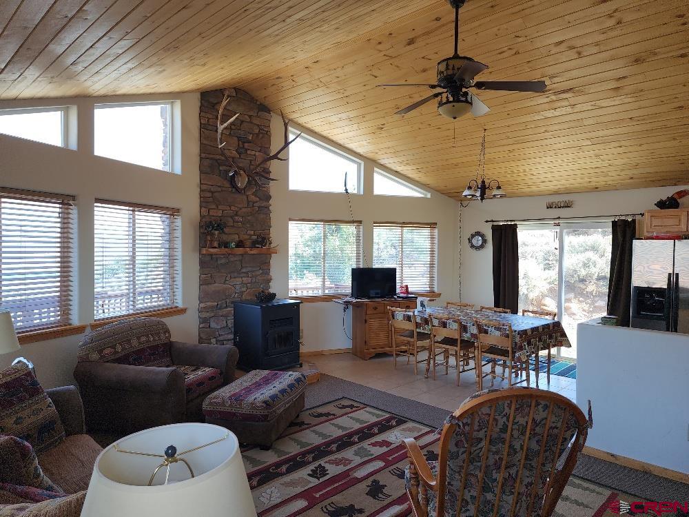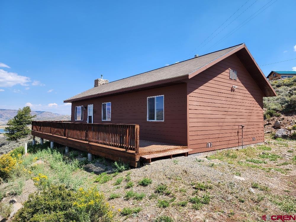 Price Reduced! Owner Financing available! Come and see the view from this fantastic Blue Mesa Village cabin with 3 bedrooms and 2 full baths on a double 1.25 acre lot. Turn-key property with furniture included. If you enjoy boating, fishing and playing on the lake this cabin has it all. This property sits on the hill overlooking the dam and the marina on the west end of the lake. Relax on the huge wrap-around deck with a crazy beautiful view of the lake and mountains. Full kitchen with nice appliances, lots of windows to soak in the view and a pellet stove to keep you warm. This comfortable cabin is fully insulated with 2x6 construction and all utilities installed, even has cell phone service. Excellent access to this property. If you enjoy recreation on the lake, you need to consider this cabin!