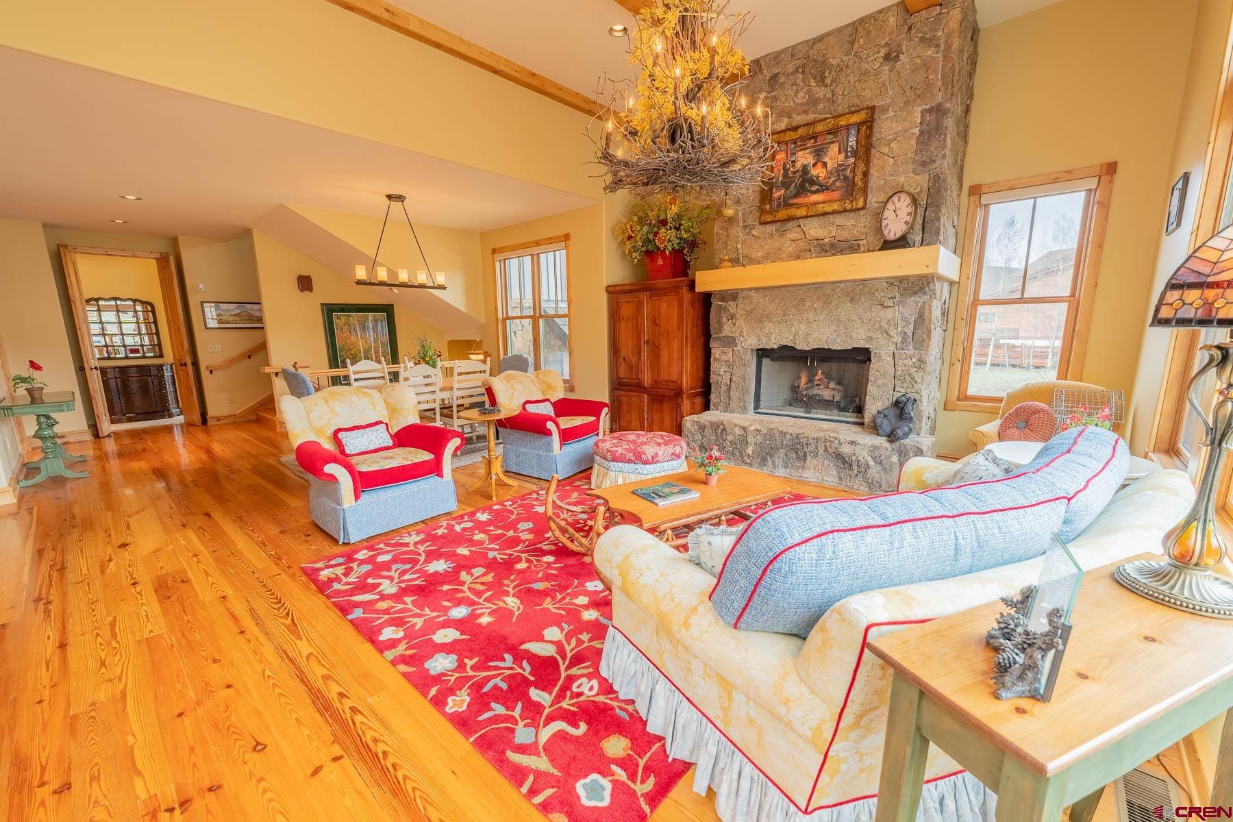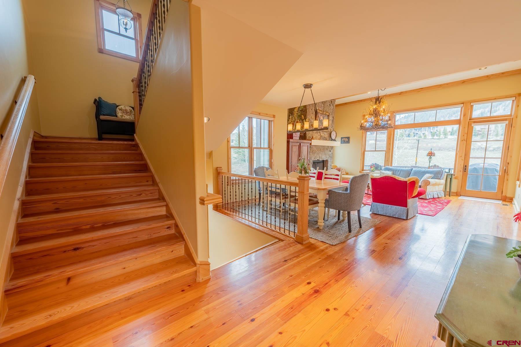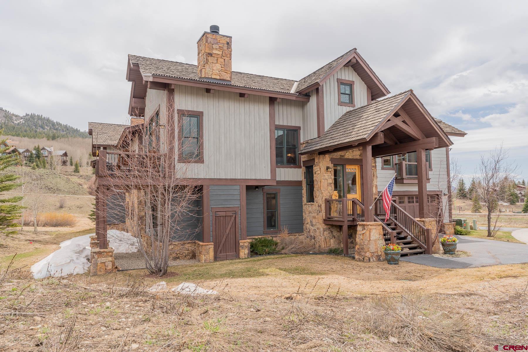 The Club Cottages at Skyland is a tastefully designed townhome neighborhood located directly across Country Club Drive from the Clubhouse of the Club at Crested Butte. Built by John Stock and High Mountain Concepts, this spacious property boasts jaw-dropping views of Crested Butte and Whetstone Mountains. The centerpiece is the cozy living room/dining room/kitchen combination with elevated ceilings, heart pine wood floors, expansive windows and an impressive stone (gas) fireplace. This magnificent great room combo connects to a gracious back deck where the majestic character of Crested Butte Mountain reveals itself throughout the day from the sunrise with morning coffee to evening grilling and sunset cocktails. The master suite is positioned on this same main level with a bonus room upstairs doubling as a fourth bedroom and kids play zone. Downstairs you will find two more en-suite bedrooms together with the oversized, heated two-car garage. The clever architecture makes this duplex live like a single family home (floor plans included in the MLS Documents section) with the lock-and-leave ease of a zero-maintenance townhome. Offered by the original owner, take advantage and make this rare listing your own family retreat.