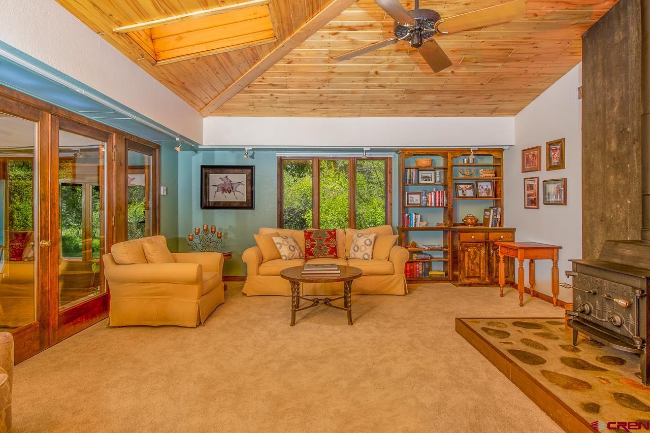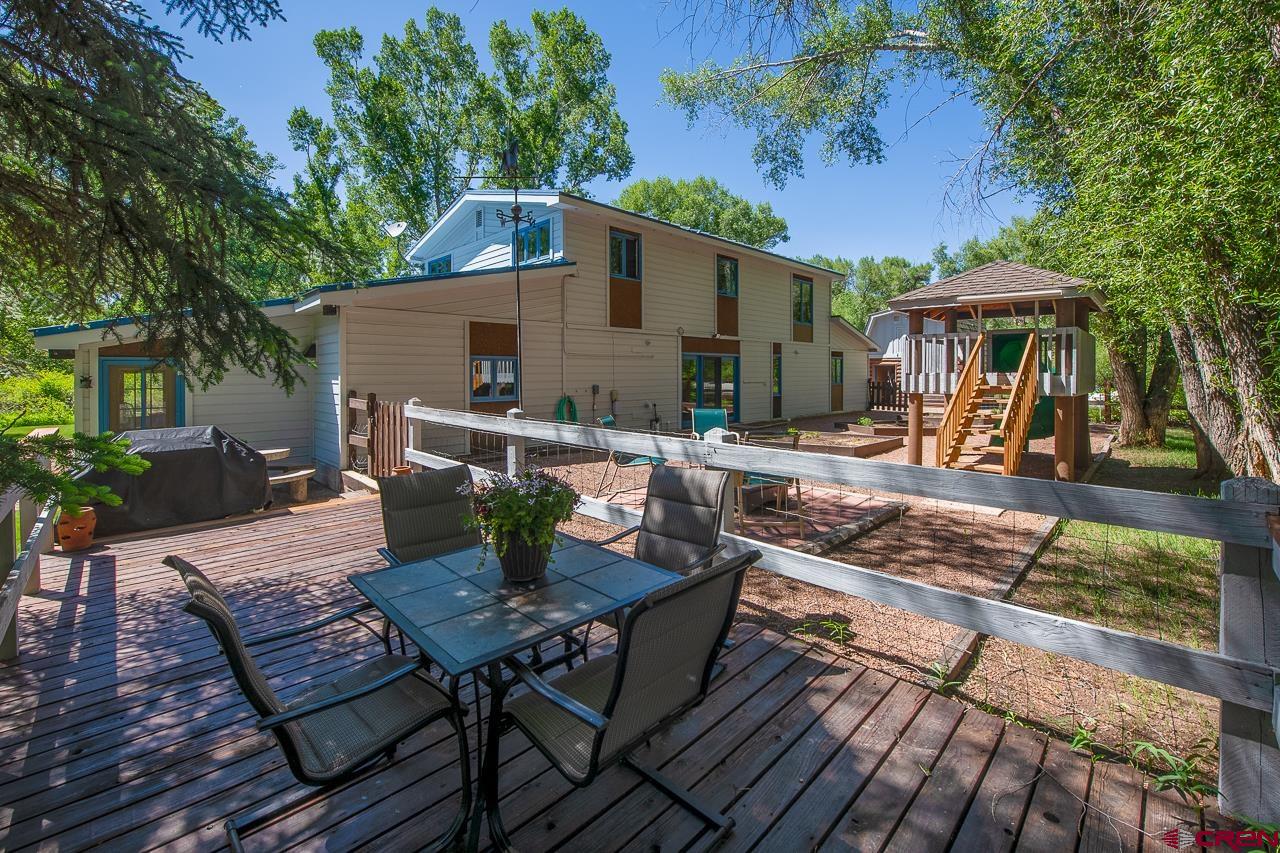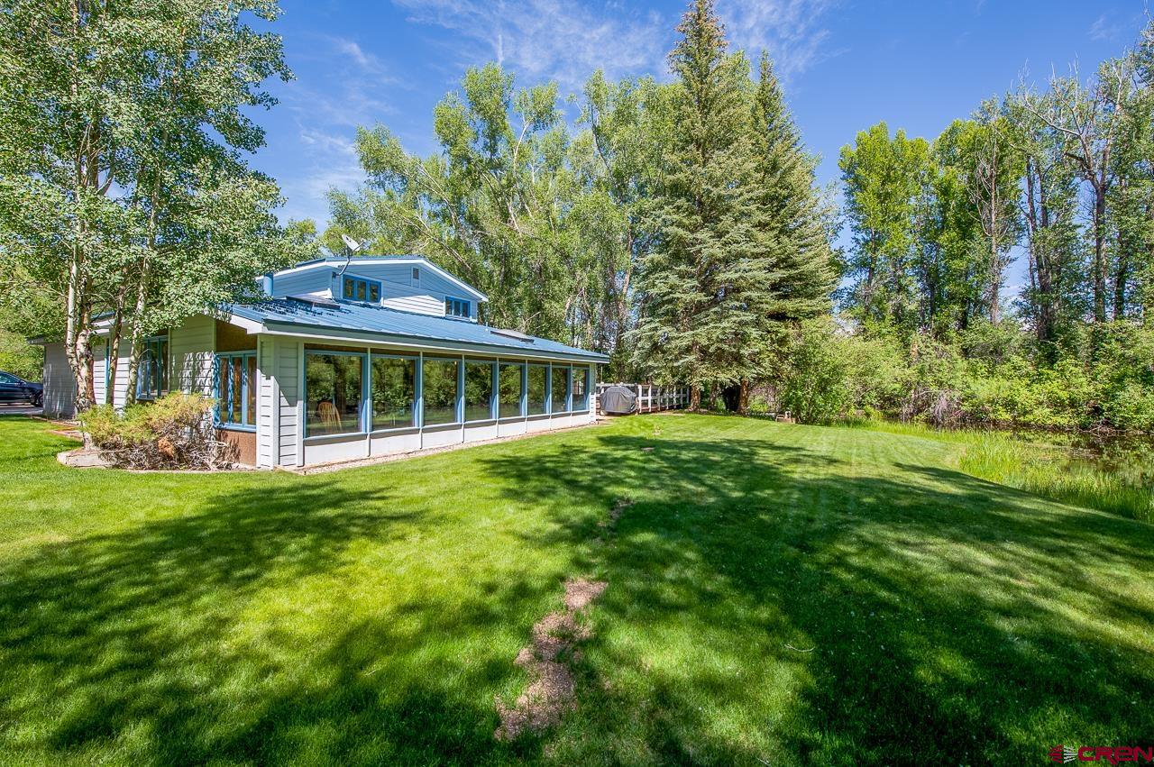 This beautiful home is nestled on the perfect property. Enjoy privacy from the aspen and cottonwood trees and sit on your back deck and listen to the gentle reflections of the pond. Just over an acre, there is also plenty of space to enjoy outdoor BBQ's while the kids play on the grassy park like lawn. Inside you'll see this home has been cared for with lots of love. The main level has a spacious primary suite that includes a bathroom with a gorgeous clawfoot tub. You'll also find an office as well as a Den and living room on the main level. The kitchen includes a 36" Viking range and the ceiling is a fun piece of Gunnison history, as the ornate metal ceiling came from the building downtown that is now the Blackstock Bistro! To round out the main level is an expansive Sun Porch that is a great place to enjoy your morning coffee and includes several planter boxes to have your flowers year round! The second floor of the home includes four well sized bedrooms and a full bathroom with a double vanity. Outside you will also find a barn that makes for a great workshop. Fenced back yard that has xeriscape for a fantastic play area for kids and your pets. Only 5 minutes from downtown Gunnison and about 30 minutes from Crested Butte, this home would make for a perfect rental as well as there are no covenants. The bus stop is minutes from your door for a quick ride to Crested Butte to ski and play. Life in the Gunnison valley is full of adventure, a slower pace of life with less traffic and abundant wildlife. Check out the virtual tour and call for your tour of this great home.