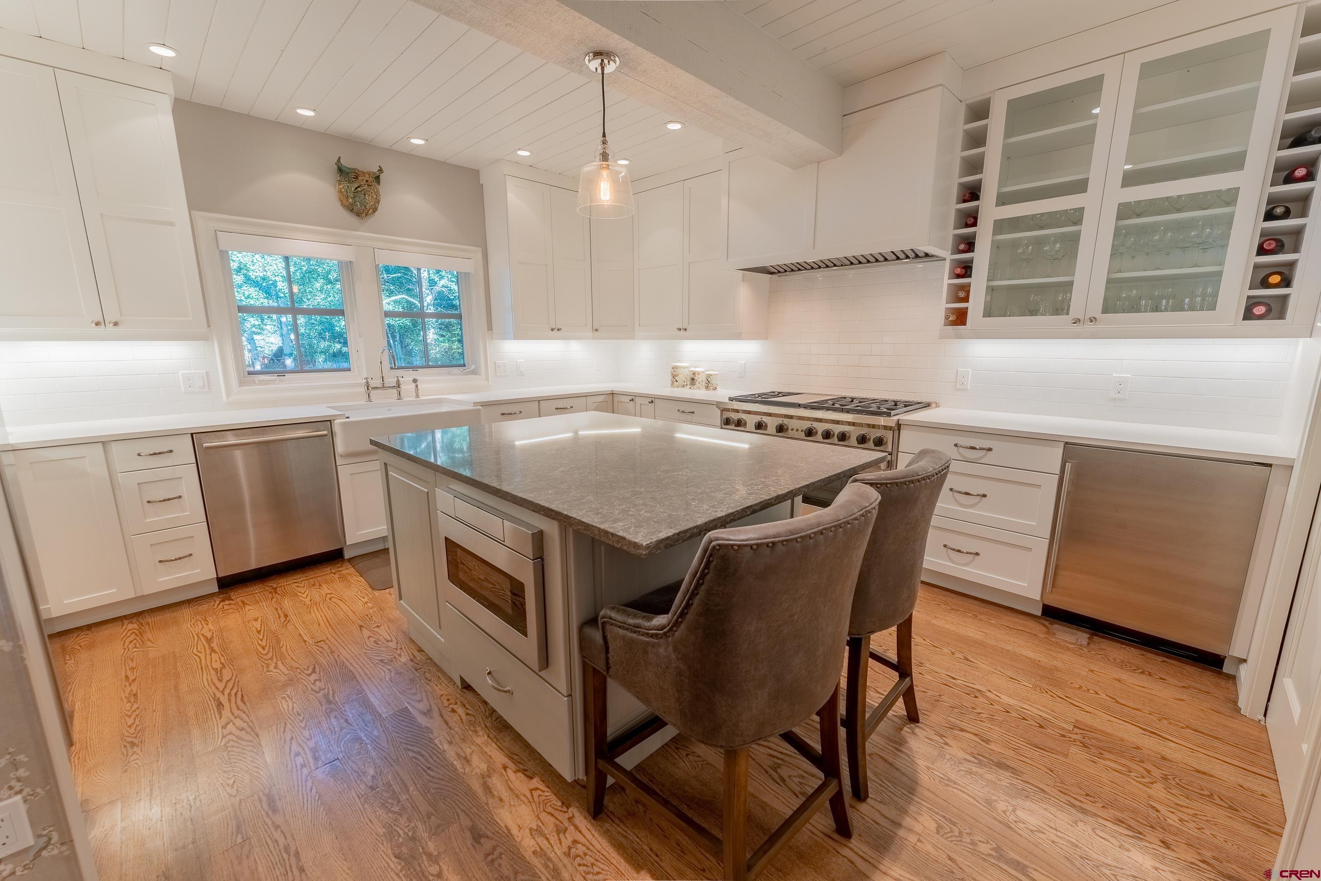 Iconic brick Victorian on the upper west end of Crested Butte. Situated on a quiet street with mature trees and views of Mt. Crested Butte, 15 Third Street exemplifies character and charm. The only brick home in the Town of Crested Butte (and only one of two brick homes on the north end of the Gunnison Valley), this unique property has been tastefully remodeled and enjoys 3 stories of spacious living, a gorgeous back yard and patio, and a premier location steps from Elk Avenue and CB’s best hiking and biking trails. Approaching the home you will immediately appreciate its “curb appeal” with a well-manicured lawn, lush gardens, large windows, and inviting front entry porch. And once inside, the functional floorplan and modern, yet classic interior finishes will attract the most discerning of Buyers. Throughout the renovations, thoughtful care was given to the home’s original features, and the result was a perfect mix of old and new. From the 10-foot ceilings and distinctive beam work, to the original hard wood floors, fireplaces and wainscotting, the Victorian character seamlessly blends with stylish upgrades including new fixtures, new kitchen & bathroom cabinets, quartz countertops, subway tile, stainless steel appliances, and timeless furnishings and décor. Additional features within this one-of-a-kind property include picture windows that take in extraordinary natural light, a primary bedroom suite, 2 guest bedrooms, a large den/family room that seconds as a 4th bedroom, 2 gas fireplaces, in-floor heat, and a magical back yard and patio. The quality of construction, attention to detail, and location of this residence is unmatched by any other in this market, and you will fall in love with 15 Third!