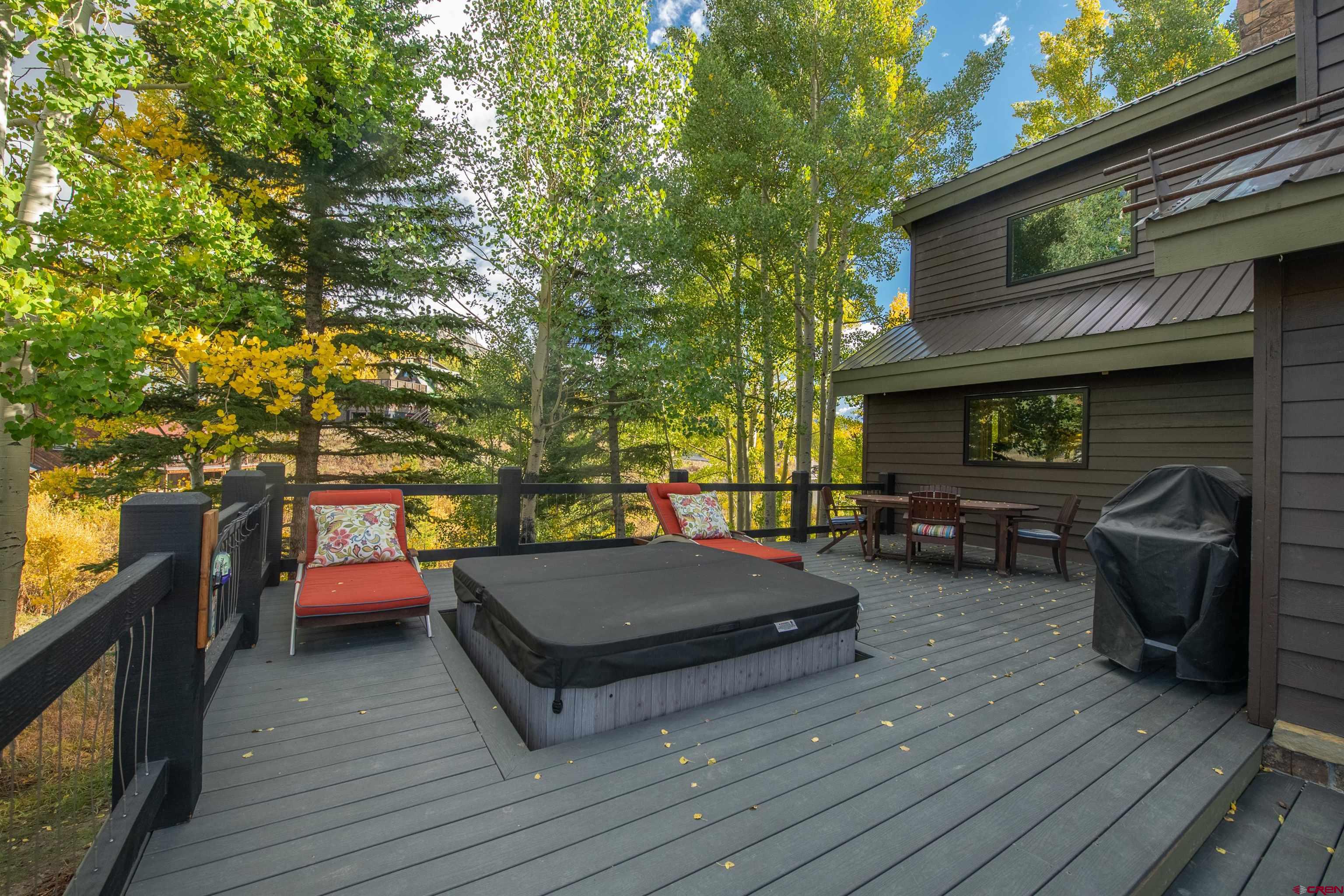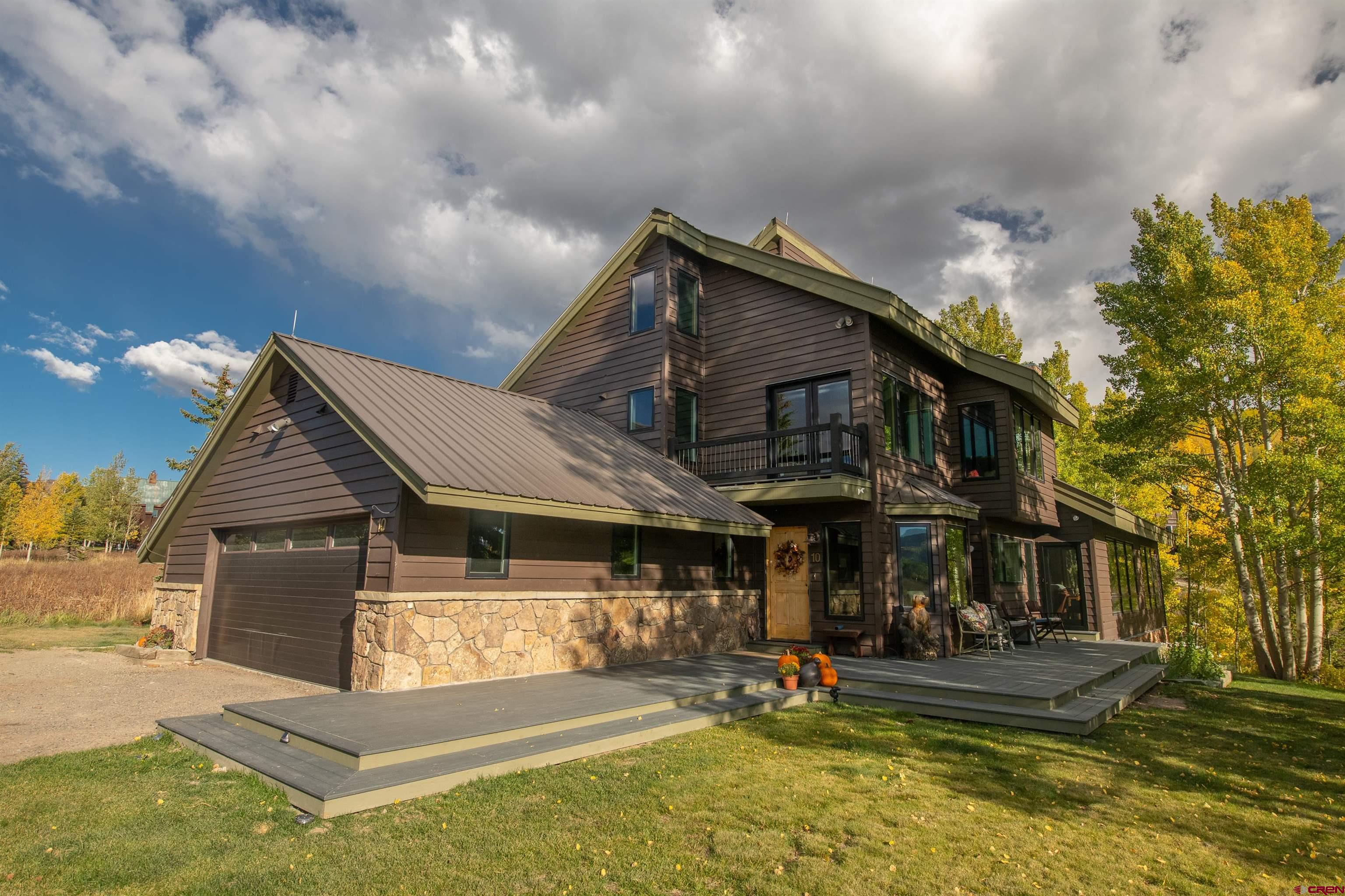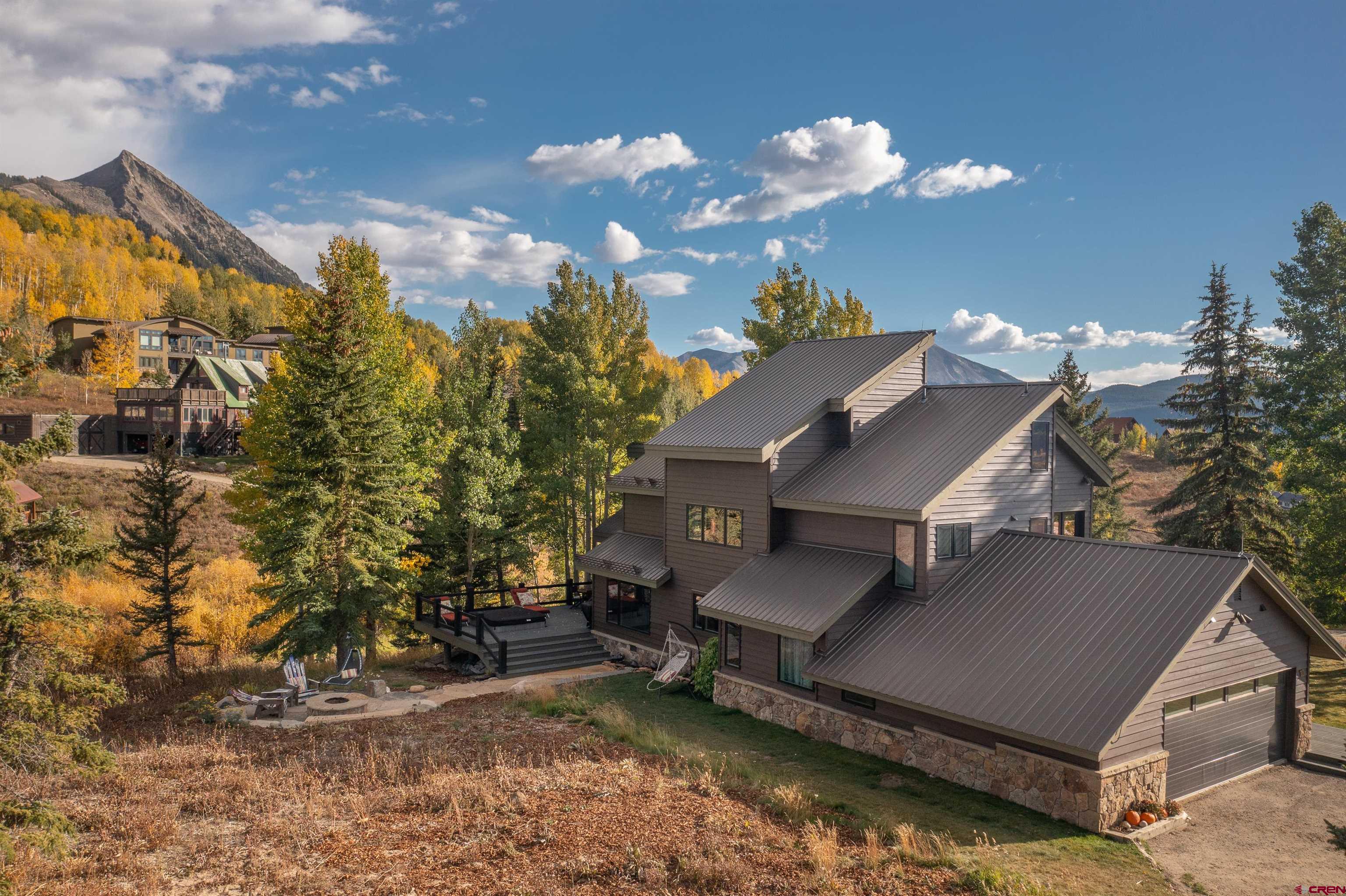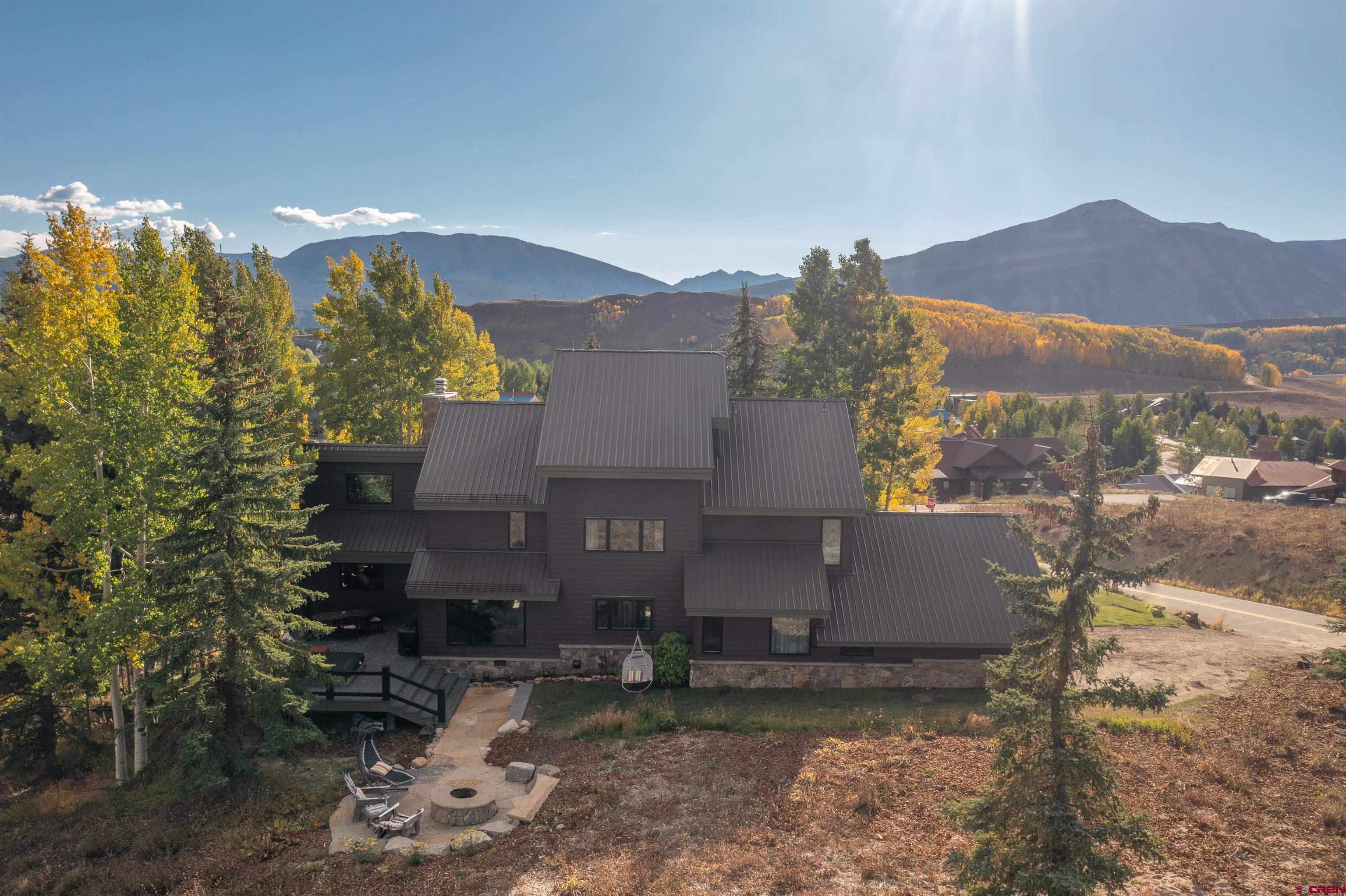 10 Daisy Circle is a gem of a house, situated on an elevated 1+ acre site that enjoys panoramic views of the surrounding mountains and ski area. A classic Mt. Crested Butte ski home with over 3,000 sq. ft of living space, including dual living areas with a floor to ceiling double-sided, moss rock fireplace, 5 bedrooms, 5 baths and a bonus loft with bunk beds. The current owner has recently updated many features in the home including windows, doors, kitchen appliances and countertops, carpeting, exterior decking including hot tub and rock fire pit, as well as, masonry rock work around the base of the home. In addition, 4 of the 5 baths have been completely redone and have in floor heat. The large primary bedroom has a spacious walk-in closet with built-ins, gorgeous double vanity bathroom with a soaking tub and its own private balcony looking out over the mountains. On this same level, there are 2 additional bedrooms/baths, one as an ensuite with a steam shower! Climb up the ladder and you will be surprised with the spacious loft that has a bunk bed, plus 3 single beds. On the main level, there is another ensuite bedroom with a large Japanese soaking tub plus an additional bedroom that is currently being used as an office. 10 Daisy offers a great outdoor living space where you can soak up the breathtaking views while relaxing in the hot tub or sitting around the fire pit. What are you waiting for? Make this special home yours!