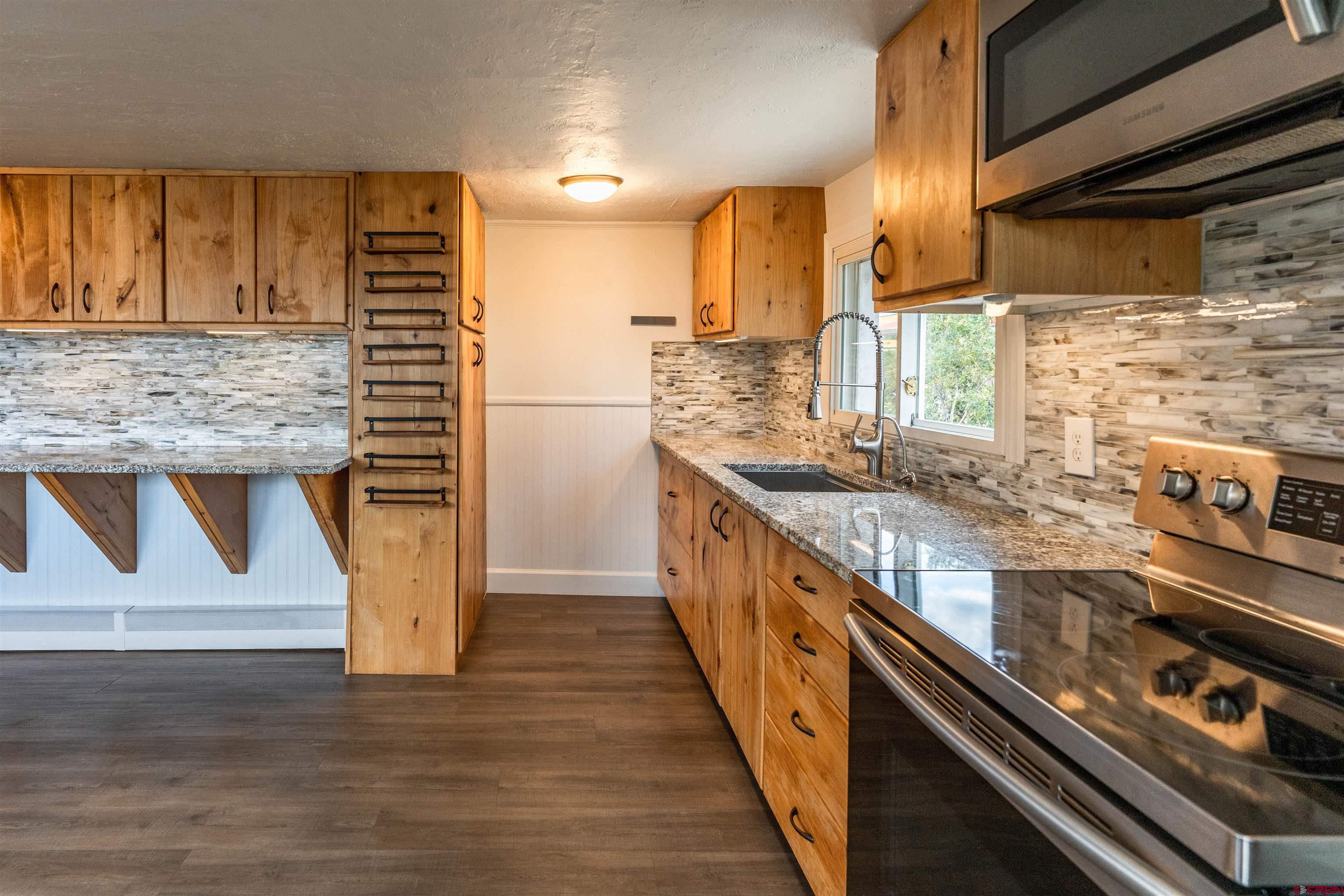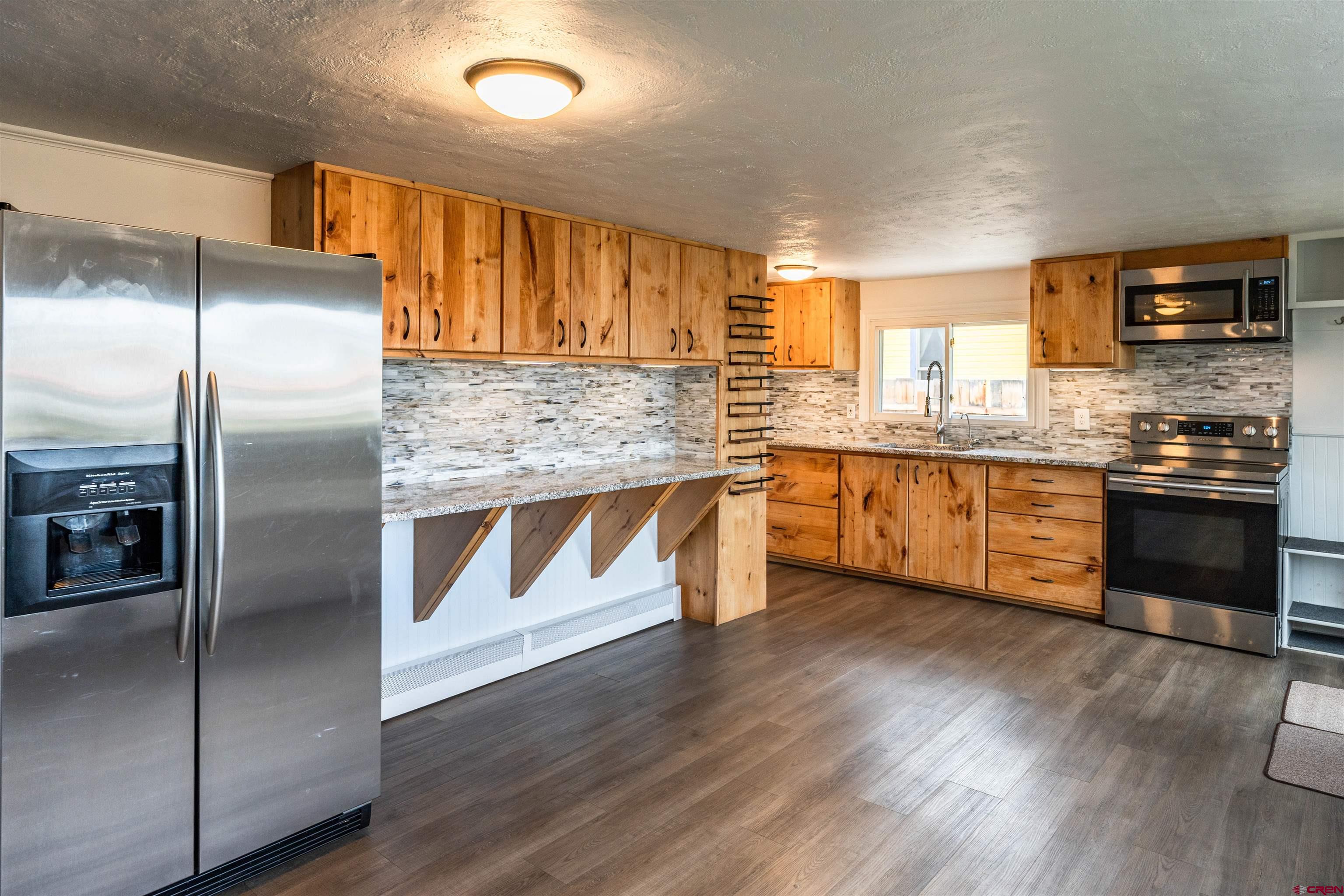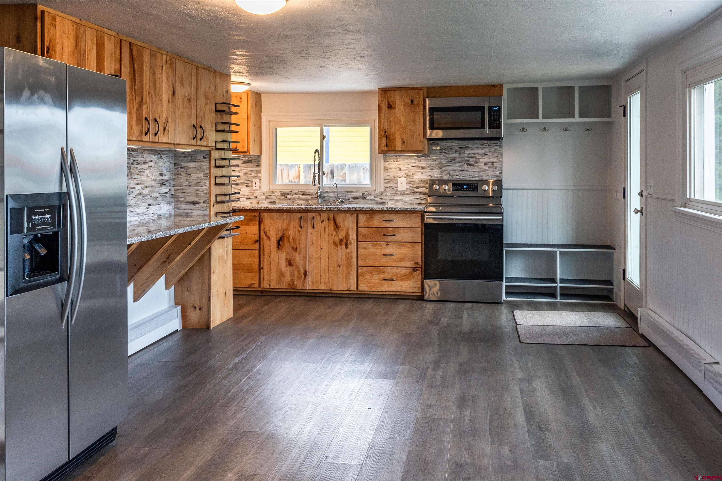 Welcome home! This turn key, single family home features 3 bedrooms and 2 bathrooms. This home is just over 1500 sq ft and centrally located to Downtown Gunnison. You'll love the updated kitchen with granite countertops, custom cabinetry and newer appliances. The primary bedroom has an en-suite and is located adjacent to the living area. The open floor plan is great for entertaining. The recently refreshed paint and newer vinyl plank flooring throughout help make this home move in ready. The two additional bedrooms and fully updated bathroom ensure there is space for everyone. Other home highlights: separate laundry/mechanical room, great outdoor space with an oversized concrete patio that is perfect for entertaining. Fenced in back yard with privacy fencing, and additional parking spaces off the alley for campers, trailers or guests. The shed is also included in sale. Residential within Commercial zoning offers future opportunities for accessory dwelling unit, detached shop or retail use. Neighbors on both sides are residential. Natural gas boiler efficiently runs the baseboard hot water heat system and has recently been serviced along with a new water heater. Property has been meticulously maintained by current owners and is available for immediate occupancy.