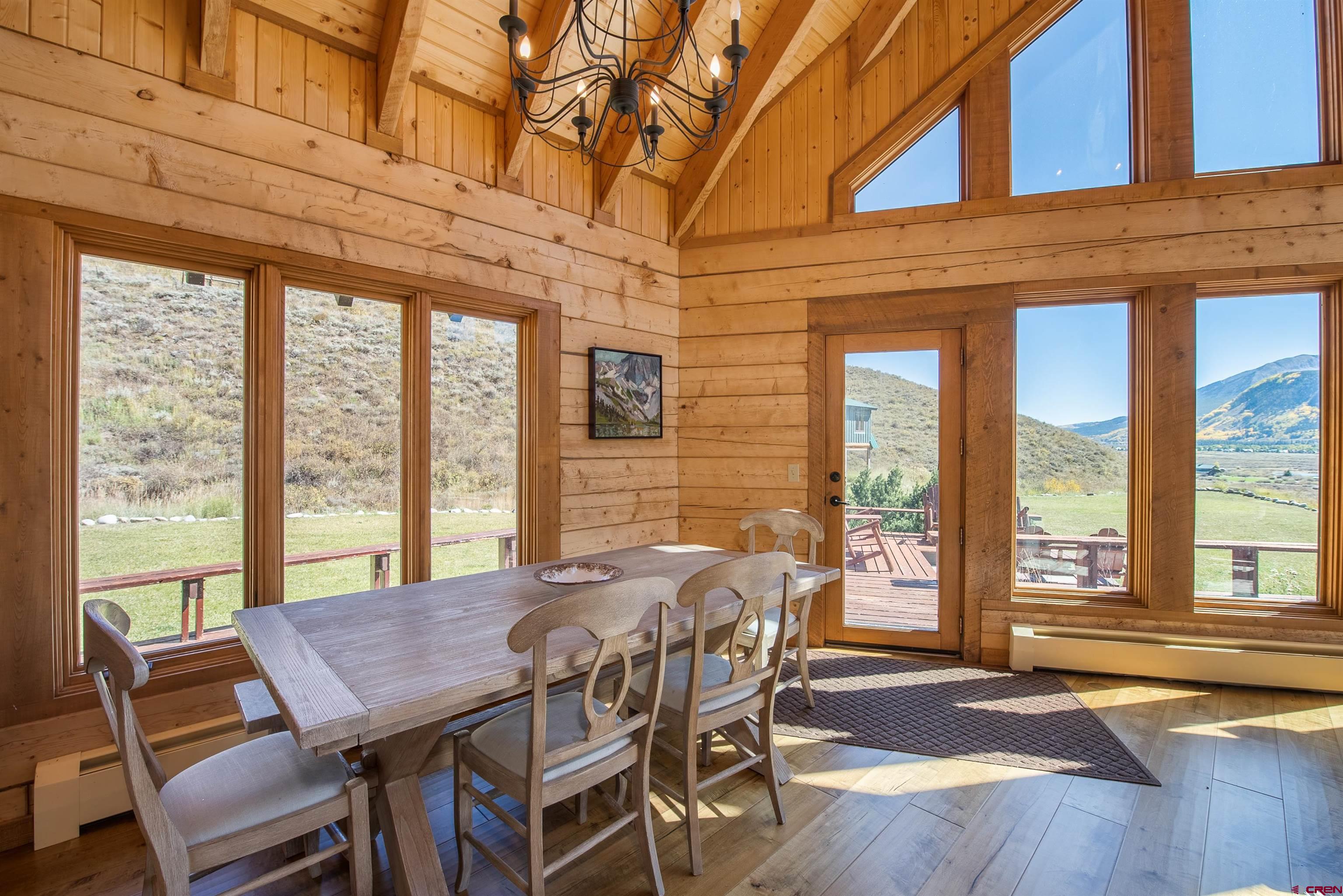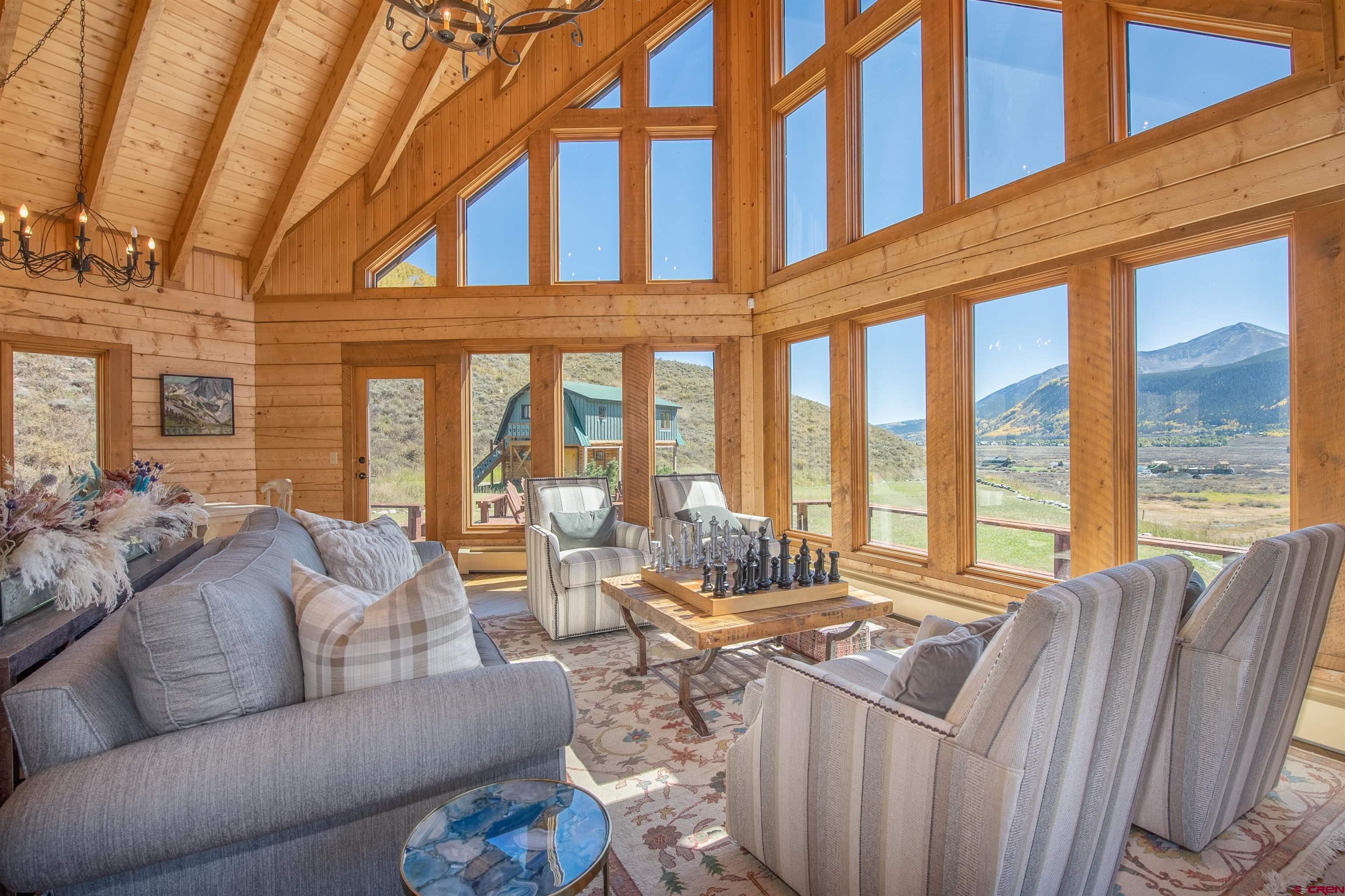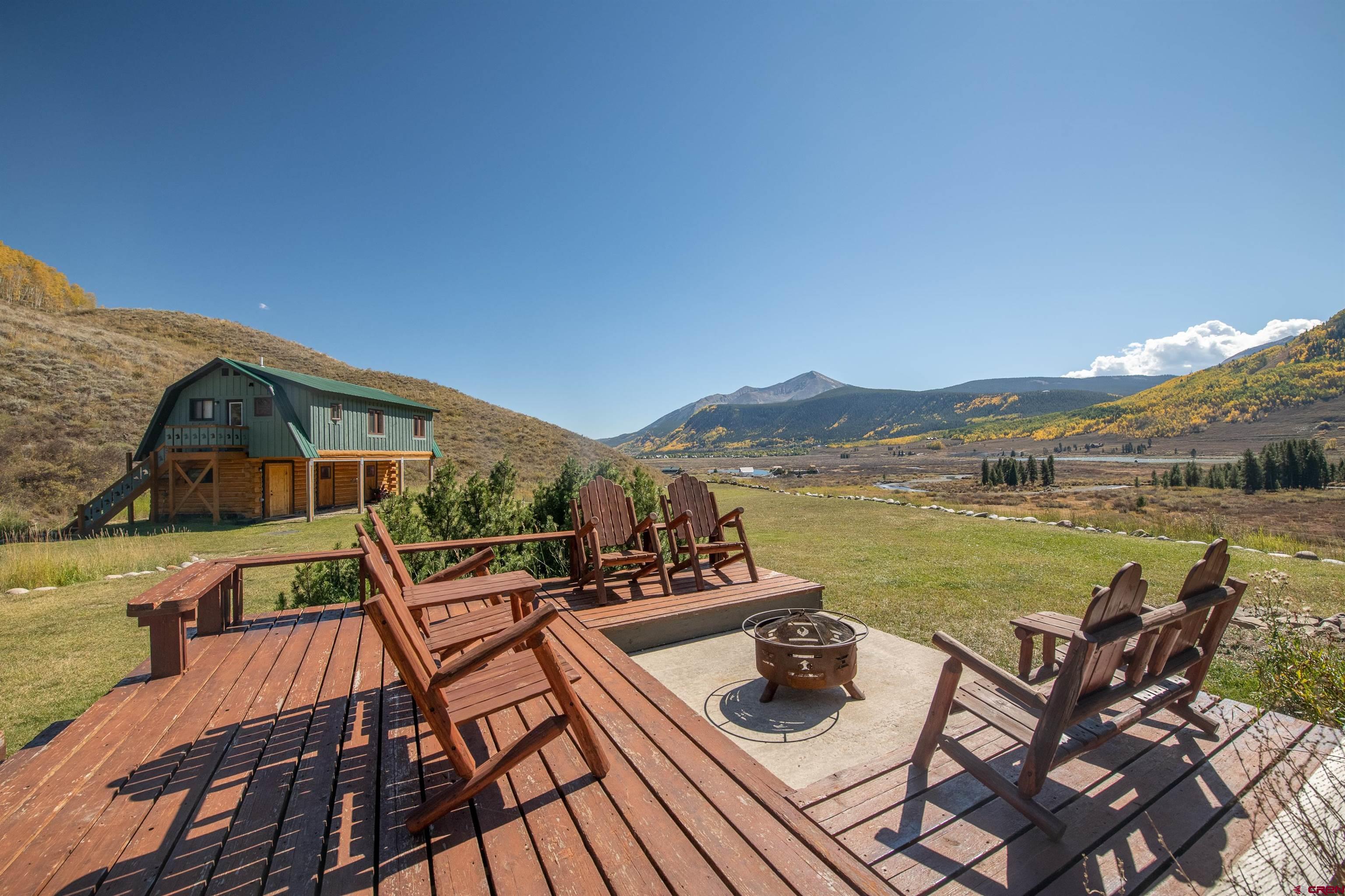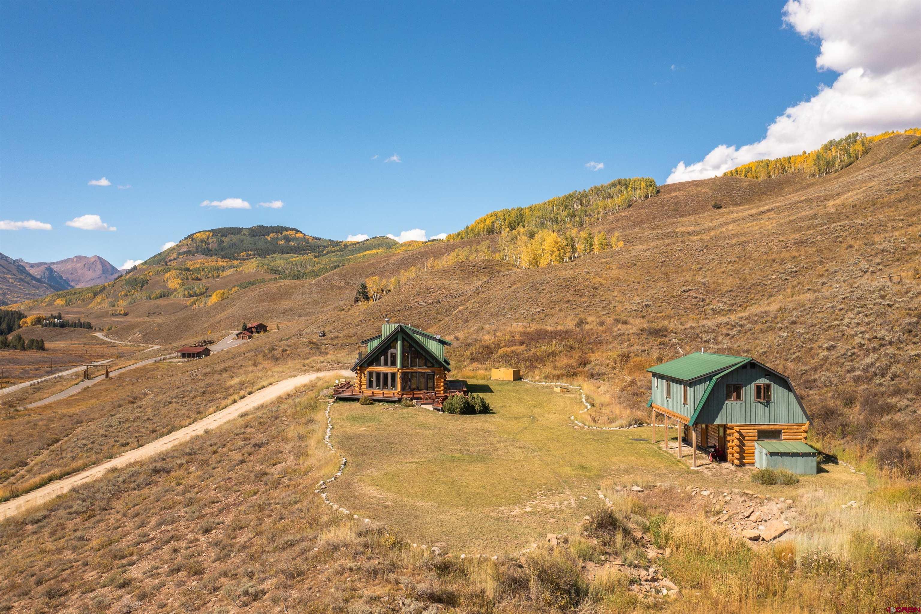 NEW PRICE OPPORTUNITY! ADJUSTED TO $2,495,000!! 1250 Slate River Road provides a rare opportunity to own an authentic mountain log home on spacious acreage in a convenient location. This property is just 5 minutes to downtown Crested Butte and only 5 minutes to skiing and riding at Crested Butte Mountain Resort. The Slate River Valley area offers year-round outdoor recreation including multiple trails for hiking, mountain biking, cross-country skiing, and snowmobiling, as well as close proximity to the Oh-Be-Joyful Recreation Area and Raggeds Wilderness. The main residence and guest residence sit on 10.35 acres in a private hillside setting with stunning views of the surrounding peaks and the Slate River Valley. Enjoy southern exposure and an open, sunny setting. The 3,111 SF home is light and airy thanks to dramatic windows and a vaulted ceiling. The property (including the un-restricted Guest House) features 5 bedrooms including a large master suite, 4 full baths, a game room, and a wood burning fireplace in an open living area. The kitchen has granite countertops and new appliances. This property is ideal for a family who desires a multi-generational, turn-key vacation home that is fully furnished, tastefully decorated, and can sleep up to 12 people. The 608 SF Guest House is a comfortable and private area for additional rental income or an office/den and/or additional sleeping area. It is located above a clean and organized storage area, which could also be utilized to stable horses. There are trails on the property for horseback riding or hiking, with easy access to popular mountain bike rides including the Lupine and Gunsight trails. The generous outdoor space includes a level grassy yard, large deck, and a fire pit all overlooking the meandering Slate River below.