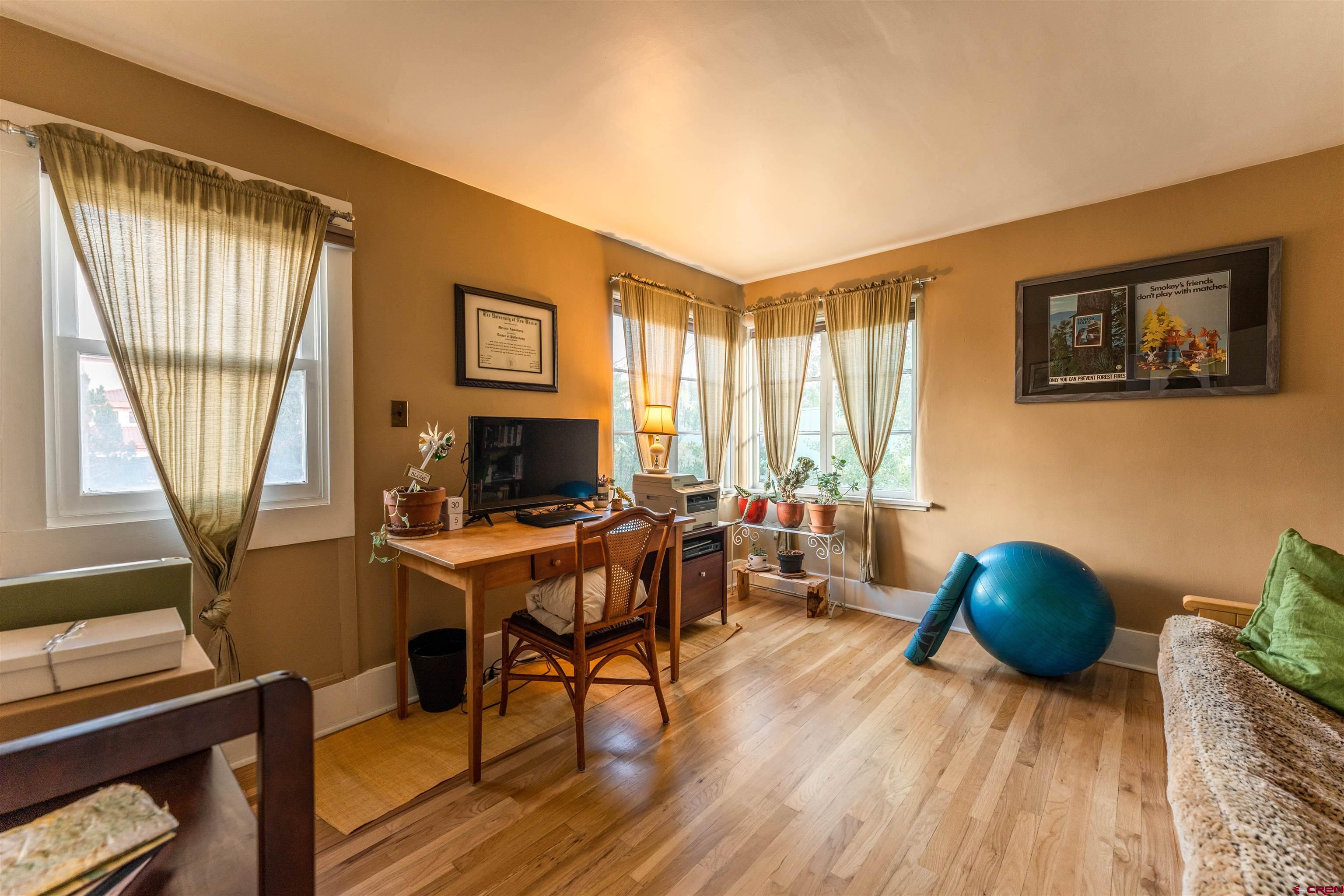 Welcome to 422 N Colorado. This beautiful 3 bed, one and a half bath home is perfectly situated on a large corner lot with mature landscaping. This home sits adjacent to Western Colorado University campus making it an ideal location for staff or students. Walking distance to downtown & nearby amenities! As you enter the home, you are immediately drawn to the beautiful sun-filled living room featuring large corner windows and an inviting fireplace. At the Eastern facing aspect of the home is a large built in eating nook located in the sunroom just off the southwestern style kitchen. Half bath located adjacent to kitchen and mud-room entry. Upstairs you'll find three bedrooms and full bathroom with historic yet updated charm. Restored hardwood floors throughout home make for a warm and inviting living space. You'll love the backyard with brick patio, manicured grass and landscaping. Fully irrigated lawn with integrated system to the greenhouse. The sauna on the back patio is perfect for relaxing with family and friends and enjoying the chilly Gunnison days. The outdoor entertaining space also features a Bocce ball court along the back fence line and private stage to enjoy your own backyard concert. A storage shed and a full, unfinished basement allow for plenty of storage opportunities. Only blocks to downtown Gunnison amenities, you are right in the heart of all Gunnison has to offer. Atmos $270 / $33