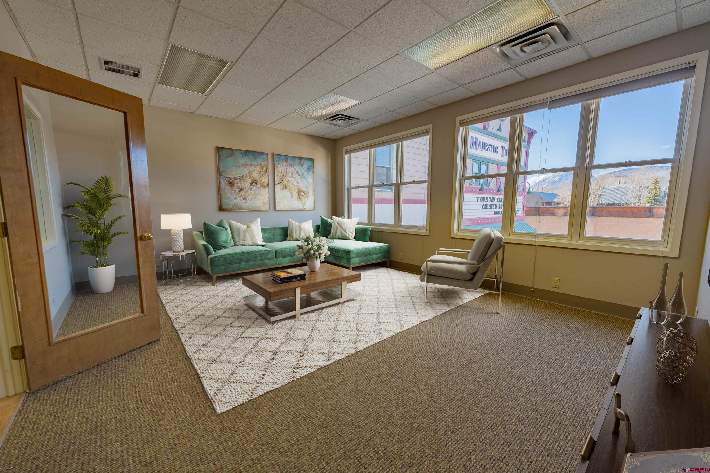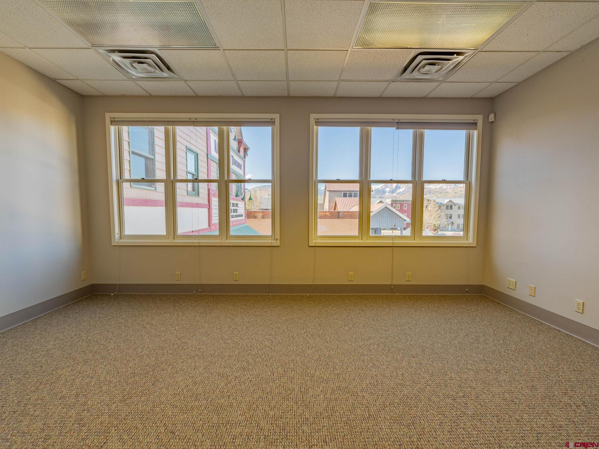 Listed for sale is package of four (4) prime 2nd floor office condominium units in Majestic Plaza totaling 3,282 gross square feet with redevelopment potential. Large, fresh office spaces with tons of natural light, and breathtaking views of Crested Butte Mountain and the surrounding peaks, situated on the Mountain Express bus route, new carpet and paint, an electric wheelchair lift on the front stairs, two (2) bathrooms, and plenty of parking. The plaza is literally a touchstone in our community, home to the Majestic Theatre, Clarks Market, a liquor store, a US Post Office facility, and other businesses, bringing locals and tourists daily. All traffic that flows from Gunnison into Crested Butte passes Majestic Plaza, making it unquestionably the premier location for a business and the gateway to Crested Butte. Regarding redevelopment potential, Section 16-5-30 of the Crested Butte Town Code lists 28 conditional uses in the "T" District, including market rate residential uses, as well as employee dwellings, hotel, restaurant, medical and dental clinics, and personal service establishments. *Some photos have been digitally staged*