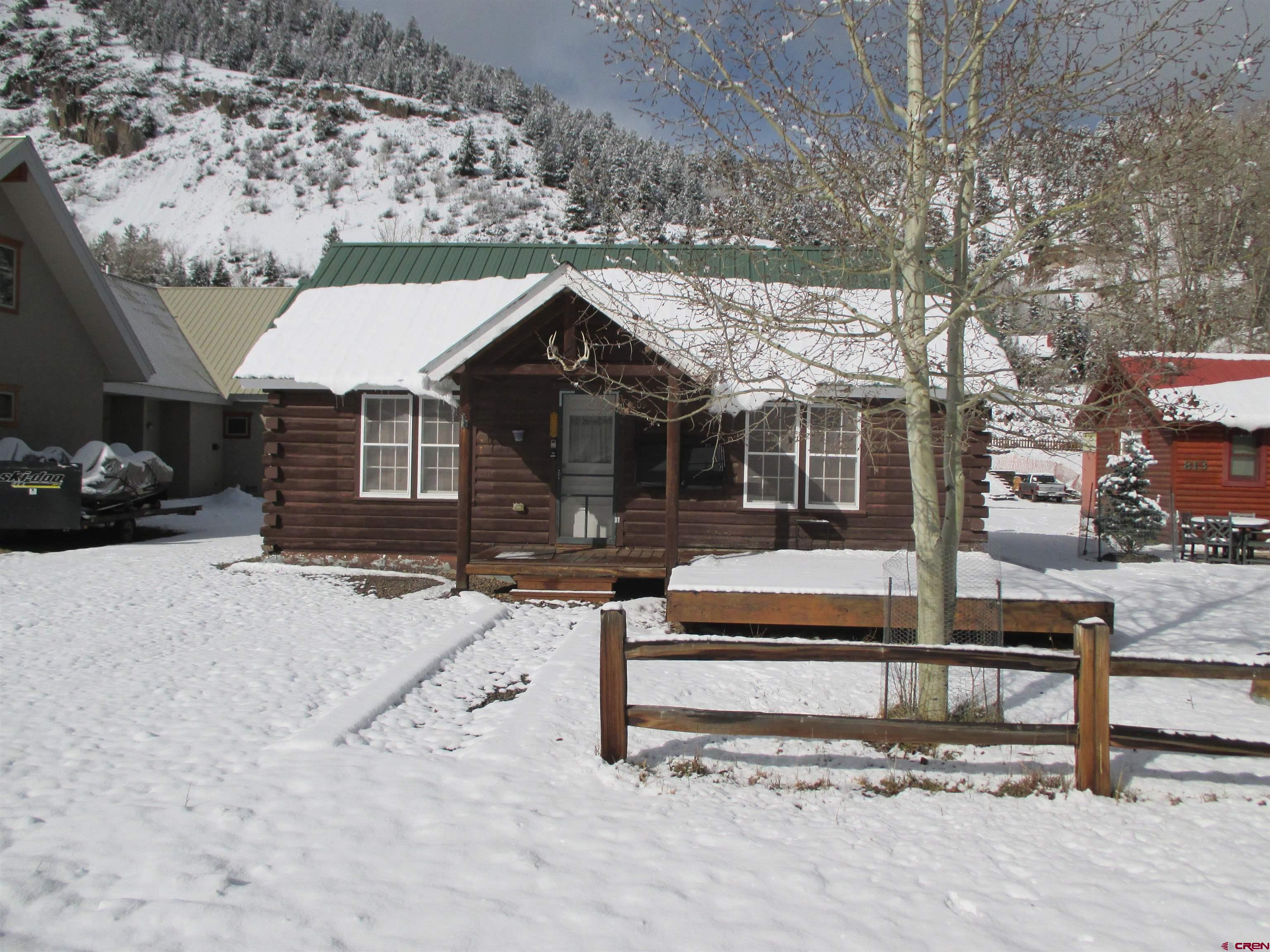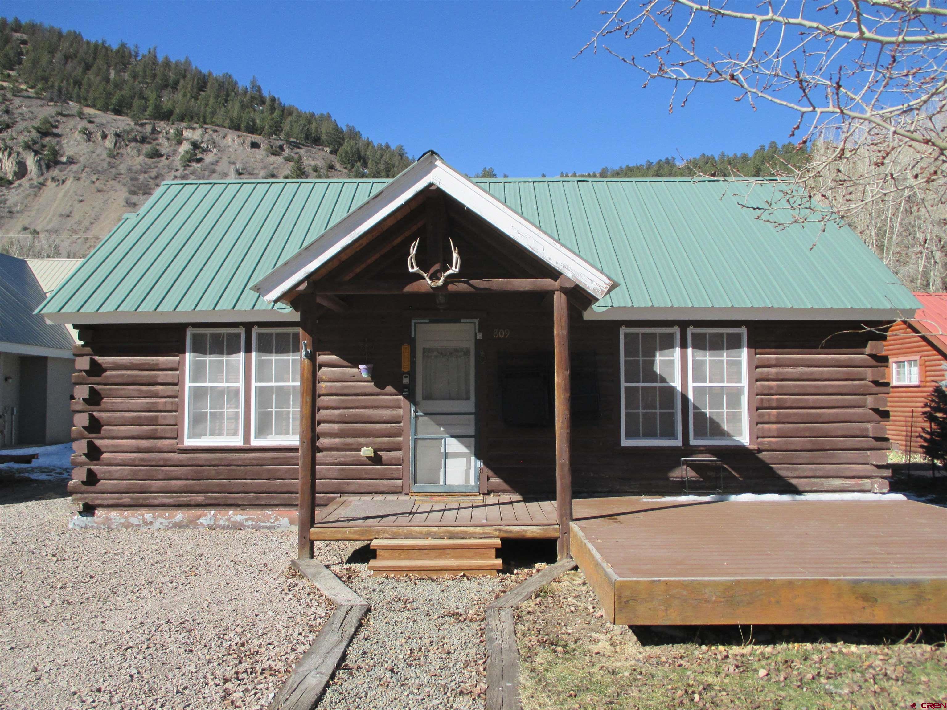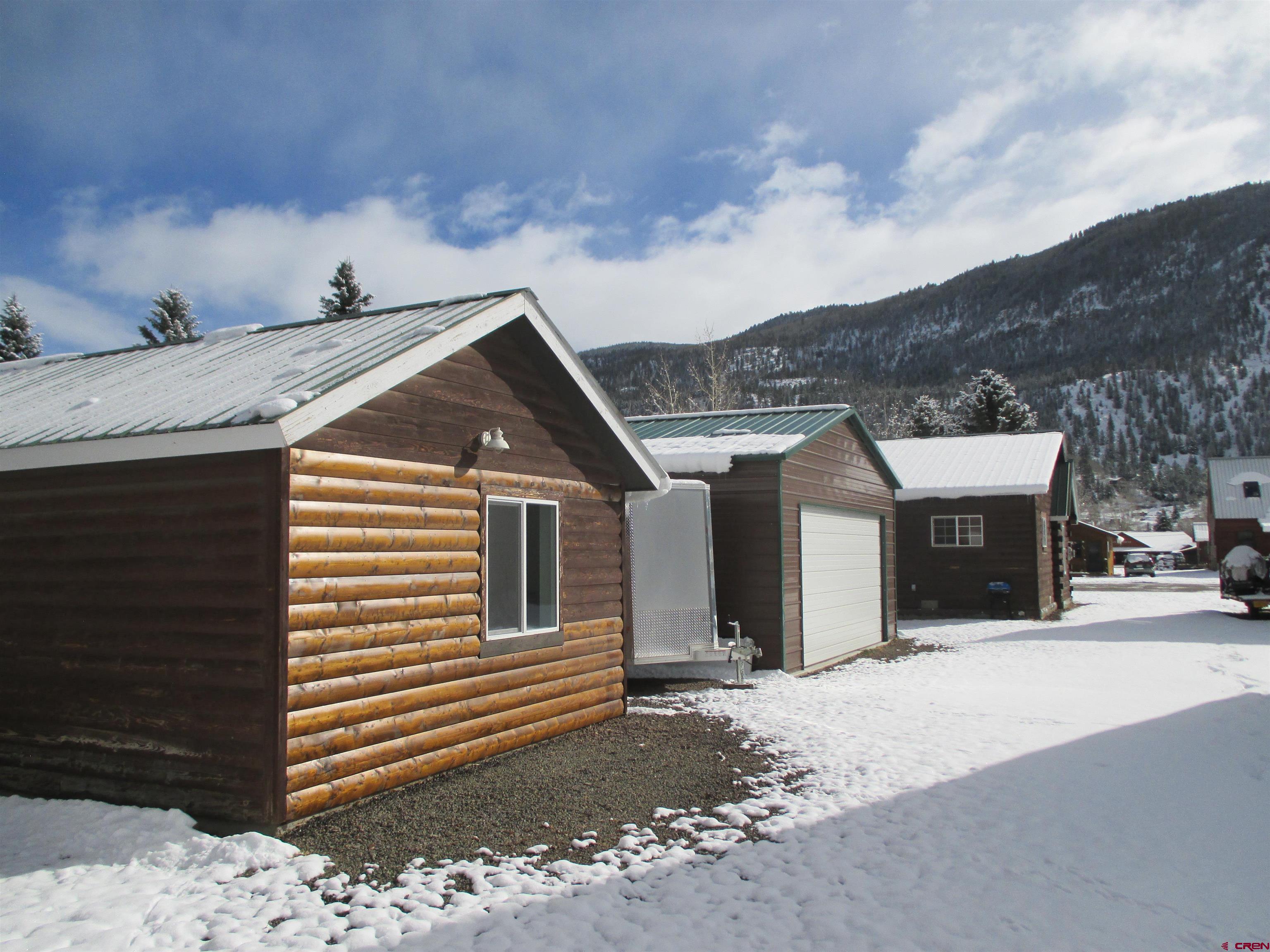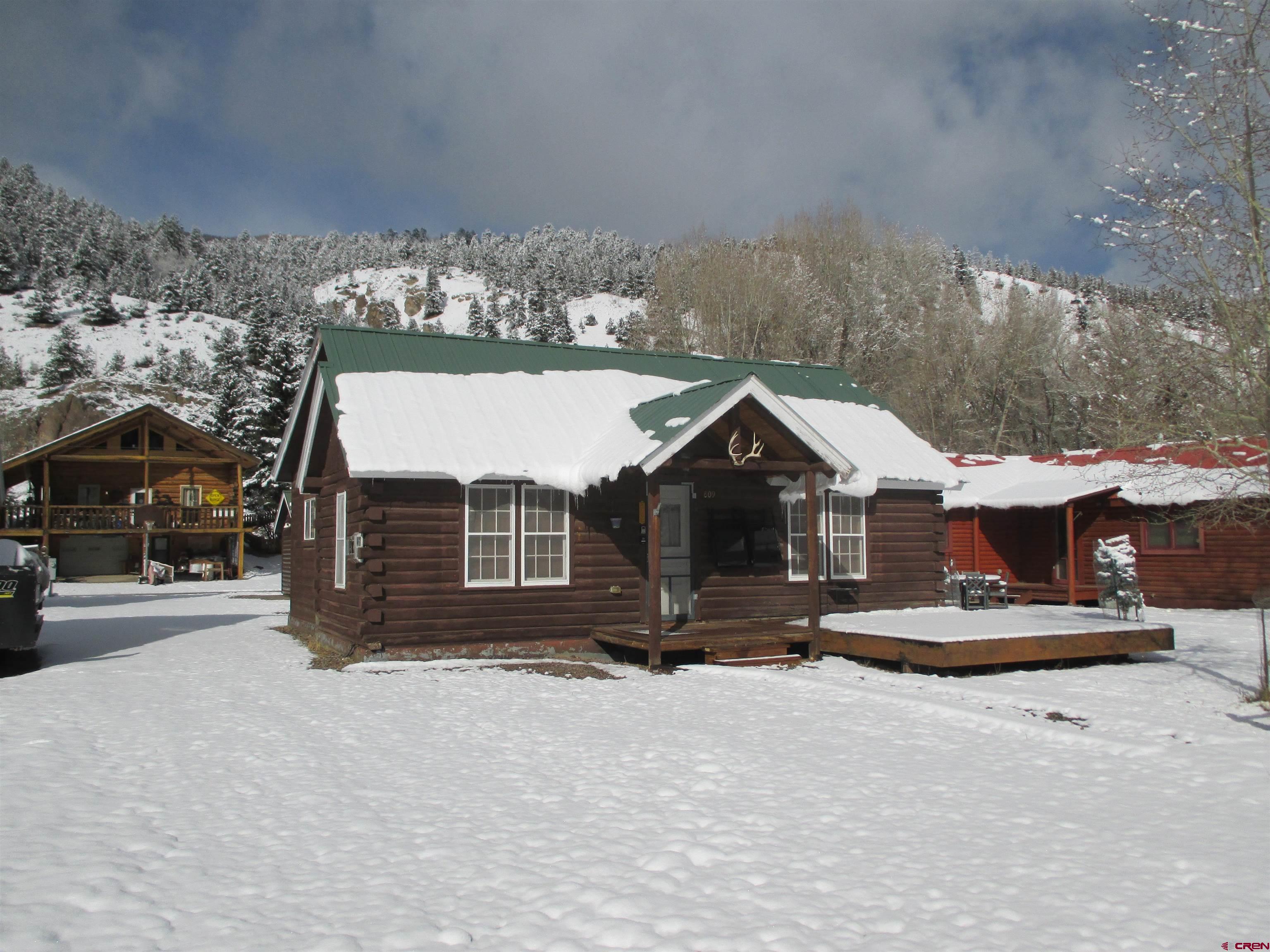 SALE PENDING....Great mountain cabin situated on 2 Town lots near Pete's Lake on Silver Street within the Town of Lake City. The original log cabin was constructed in 1945 and brought to Lake City and completely remodeled in 2001. The main single story log residence offers 833+/- sq. ft. with 2 bedrooms, 1 1/2 baths, vaulted T&G ceilings, partial hardwood/carpet floors, electric baseboard heat, living room propane fireplace and partially covered front deck. Additional amenities include a detached 552+/- sq. ft. 2-car garage constructed in 2021 in addition to a detached studio style residence (formerly a garage) with a 3/4 bath, efficient Rinnai heater, washer and dryer. Great location and within walking distance to downtown Lake City, restaurants, shops, walking trails, Lake Fork of the Gunnison River, grocery store, Mountaineer Movie Theatre and the Lake City Community School. Zoned Limited Multi-Family this property allows for short term vacation rentals. The cabin is being sold furnished and ready to enjoy as a full time residence or your seasonal Colorado mountain get-away. Please call to schedule a showing.