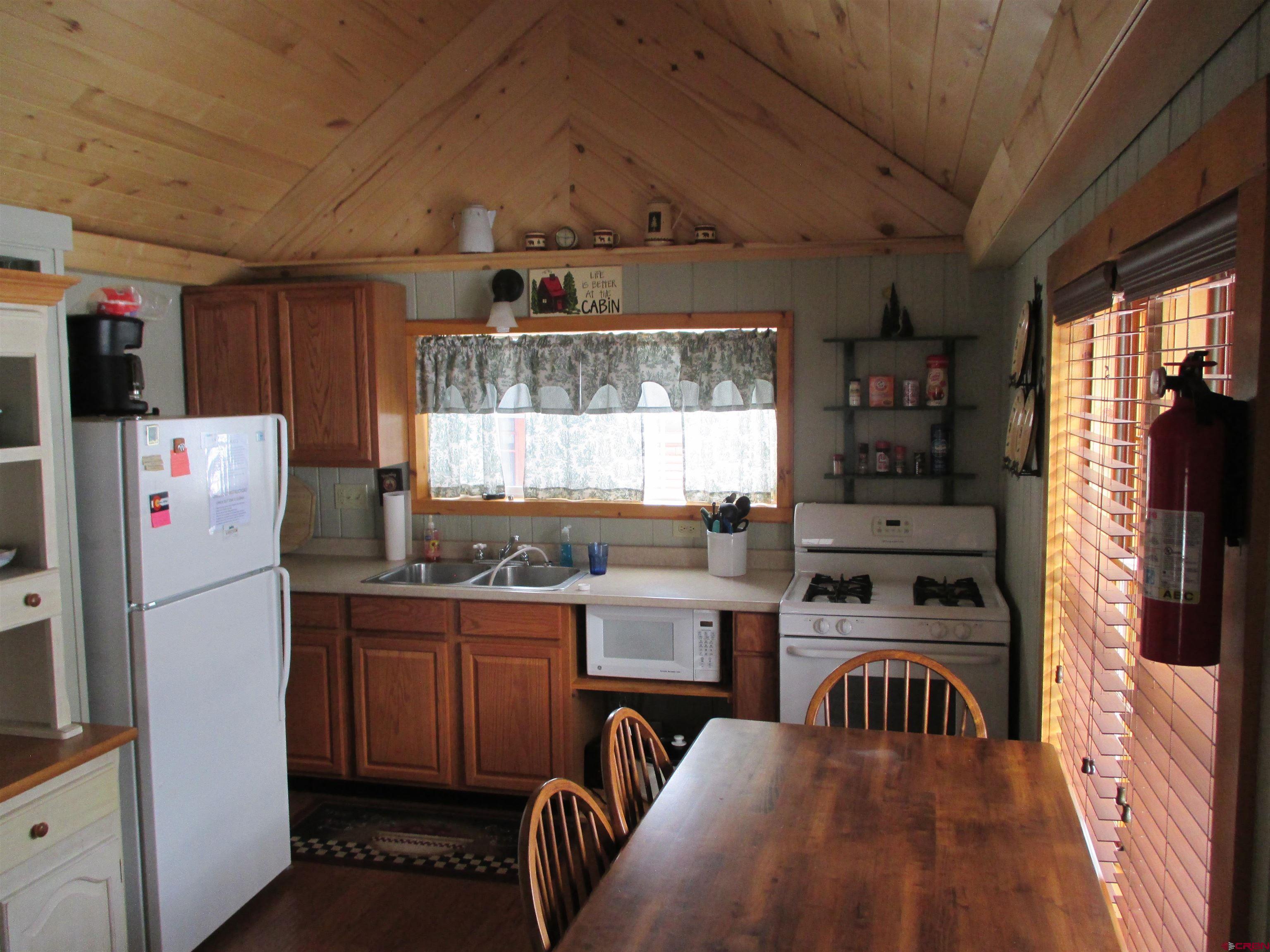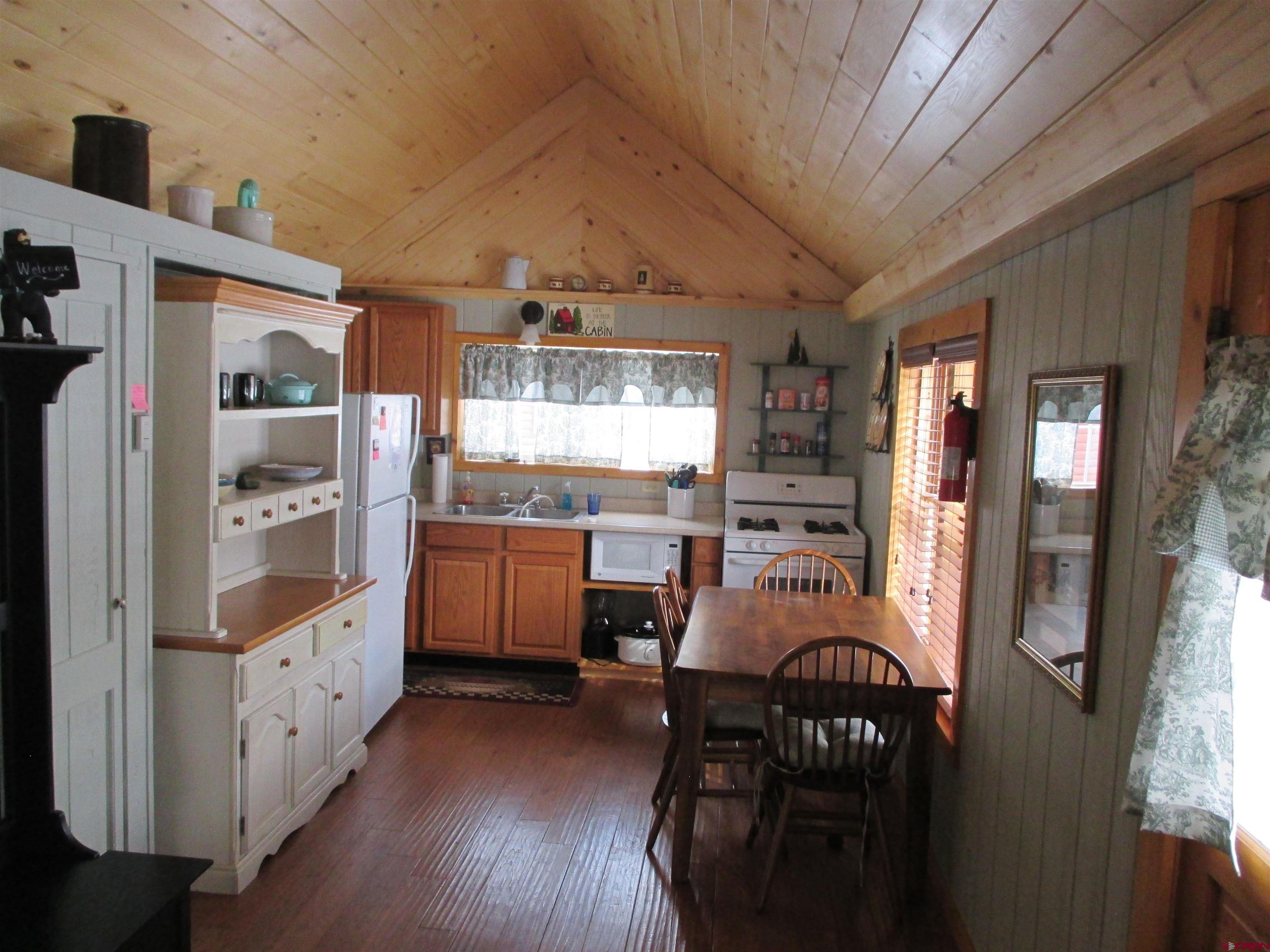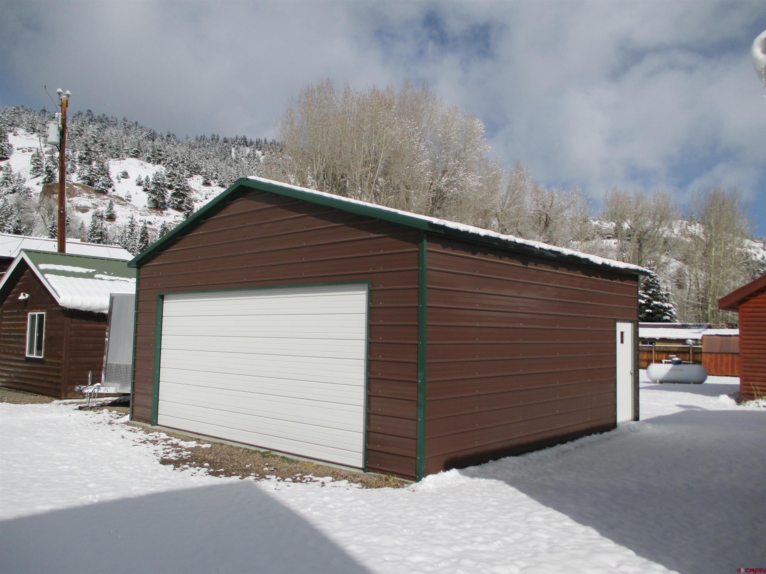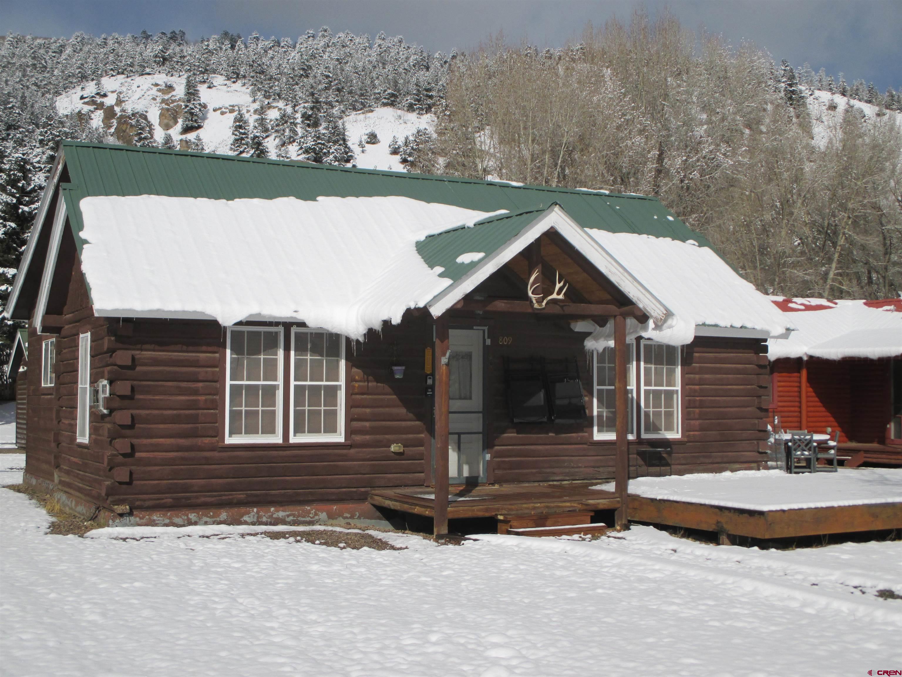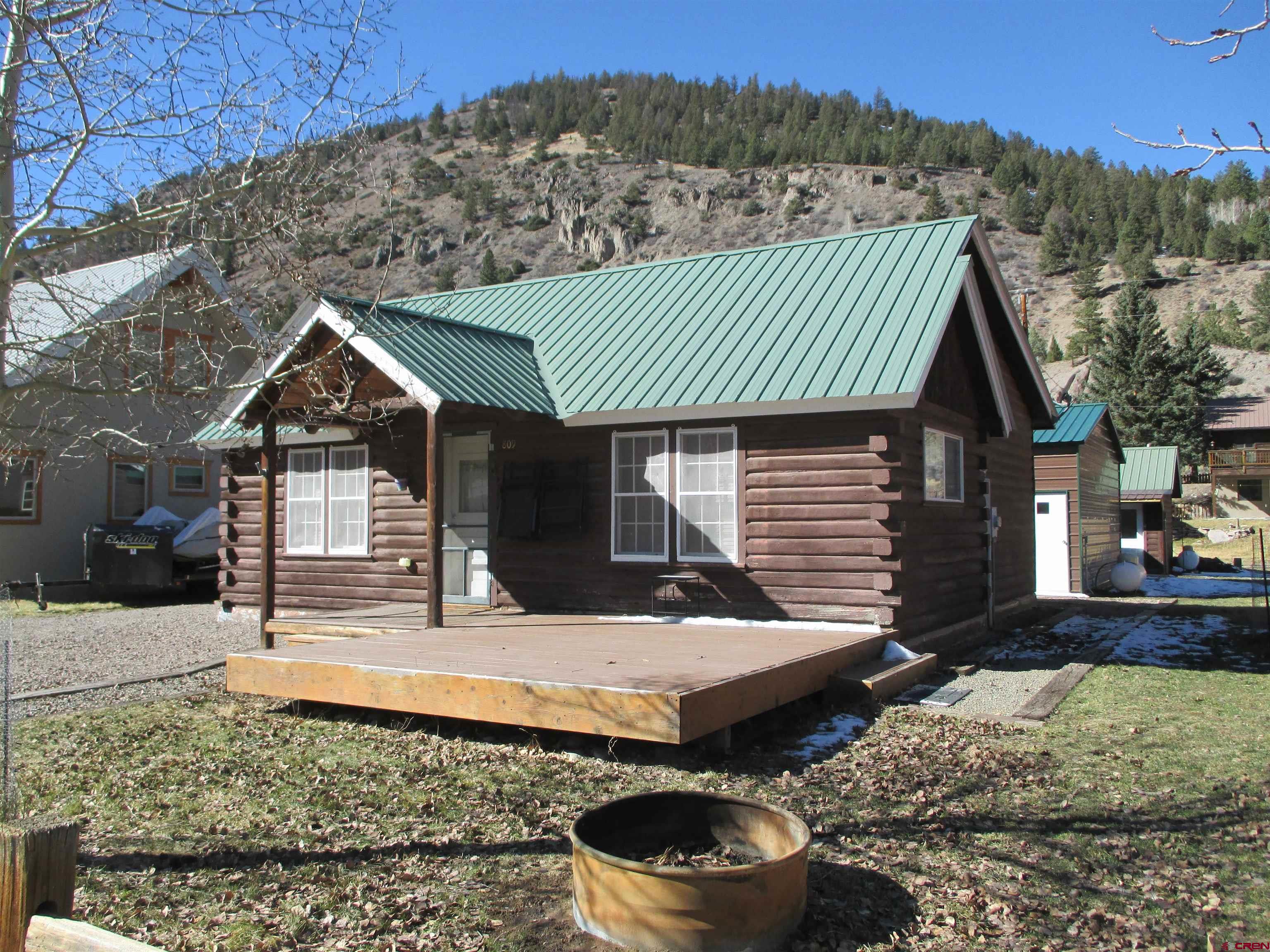 SALE PENDING....Great mountain cabin situated on 2 Town lots near Pete's Lake on Silver Street within the Town of Lake City. The original log cabin was constructed in 1945 and brought to Lake City and completely remodeled in 2001. The main single story log residence offers 833+/- sq. ft. with 2 bedrooms, 1 1/2 baths, vaulted T&G ceilings, partial hardwood/carpet floors, electric baseboard heat, living room propane fireplace and partially covered front deck. Additional amenities include a detached 552+/- sq. ft. 2-car garage constructed in 2021 in addition to a detached studio style residence (formerly a garage) with a 3/4 bath, efficient Rinnai heater, washer and dryer. Great location and within walking distance to downtown Lake City, restaurants, shops, walking trails, Lake Fork of the Gunnison River, grocery store, Mountaineer Movie Theatre and the Lake City Community School. Zoned Limited Multi-Family this property allows for short term vacation rentals. The cabin is being sold furnished and ready to enjoy as a full time residence or your seasonal Colorado mountain get-away. Please call to schedule a showing.