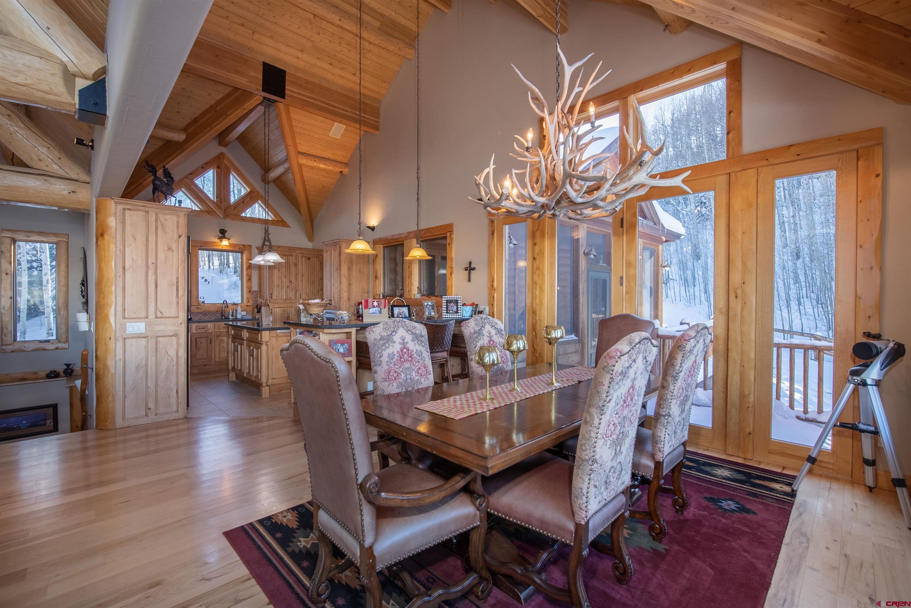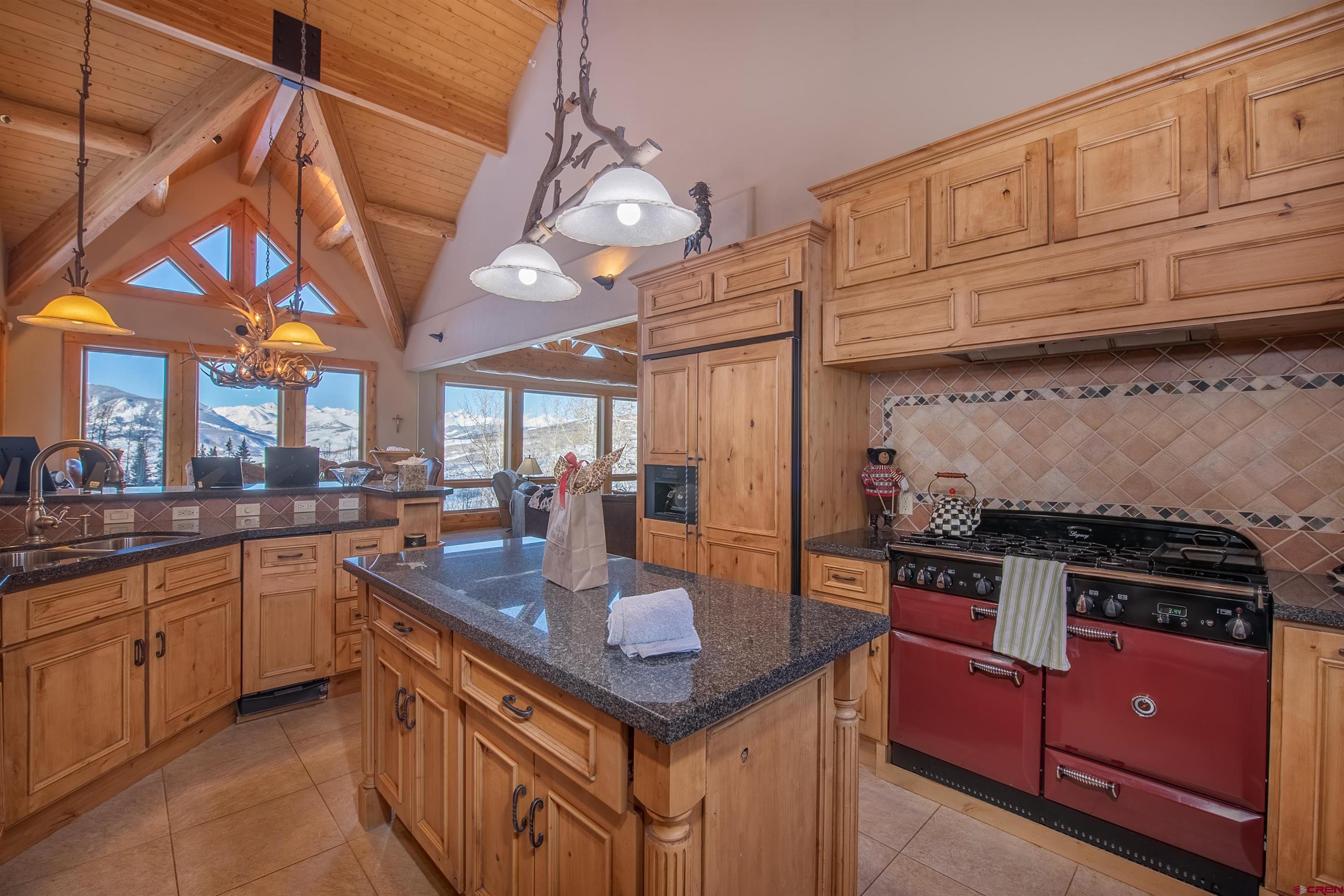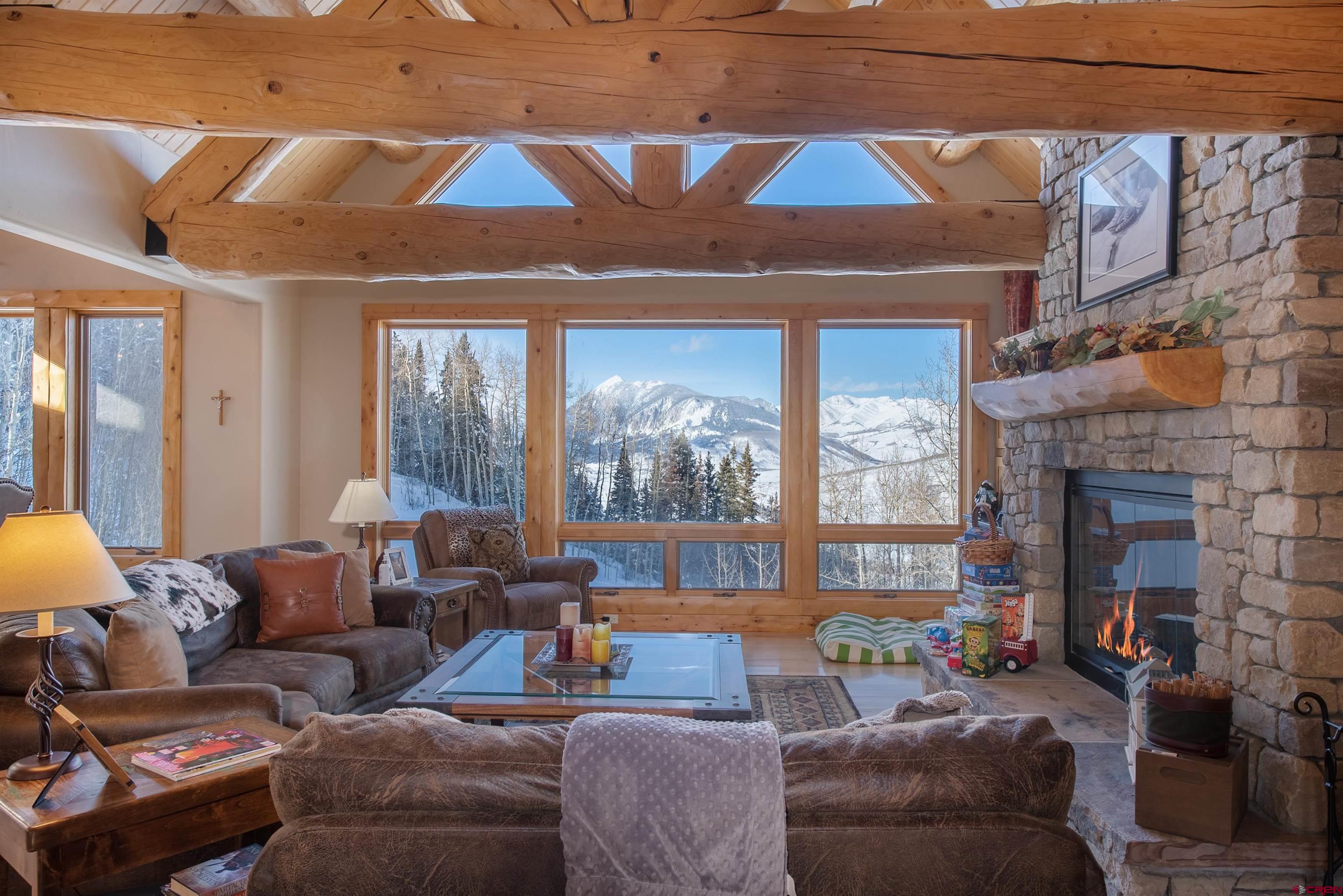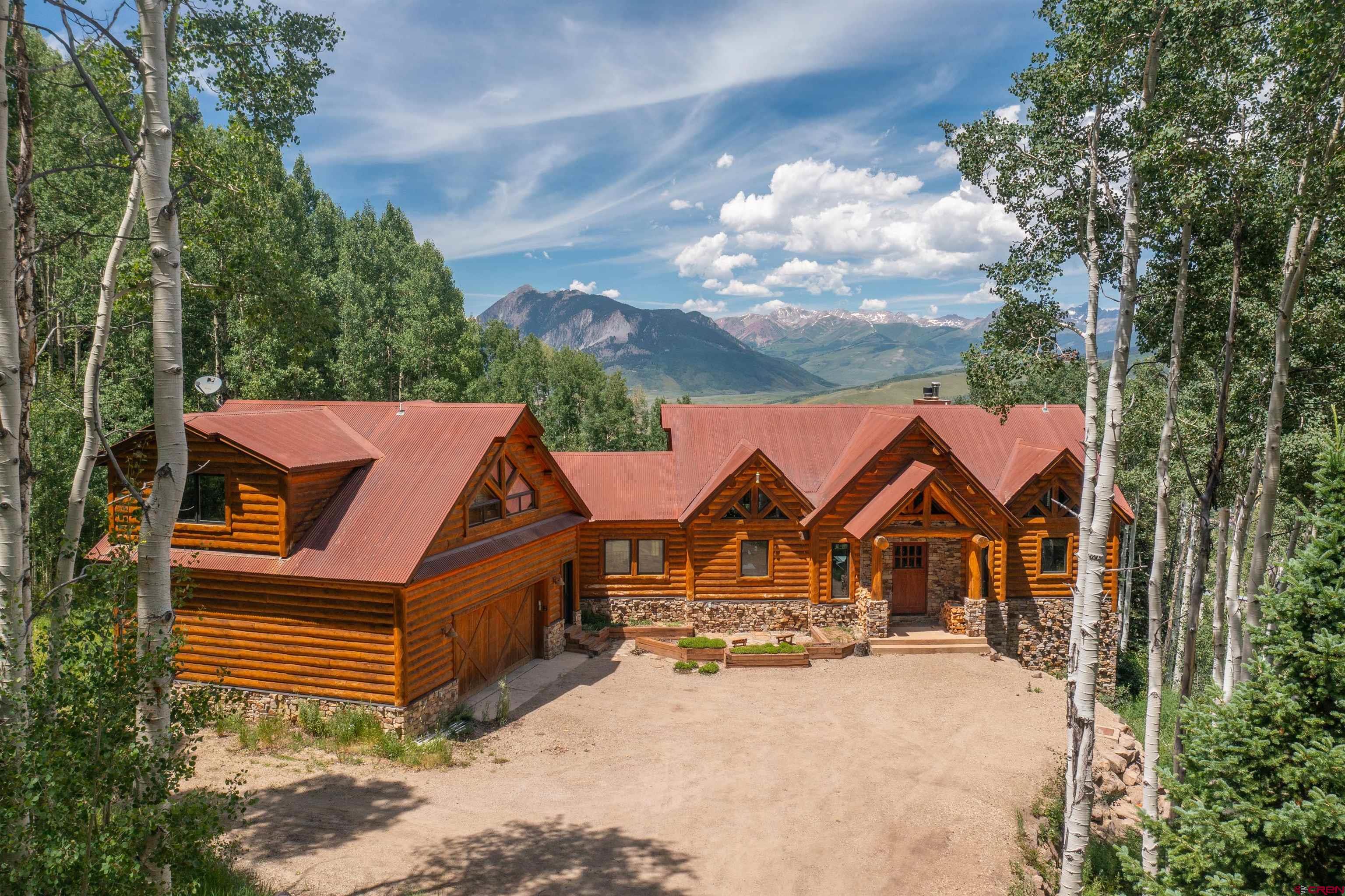Welcome to 1894 Red Mountain Ranch, an exquisite log home nestled amongst the aspens. This home boasts rustic charm, stunning mountain views and located on 35 acres, giving you privacy and tranquility, yet just a short drive to the historic town of Crested Butte. The main level features a gourmet chef's kitchen with granite countertops and an exquisite AGA range oven. The open-concept living and dining area has an impressive stone fireplace, beautifully crafted beam details, and the mountain views we all covet. The first primary bedroom located on the main level is spacious and inviting with a custom designed bathroom. The second owner's suite, recently updated, is located above the garage. This private, extra-large bedroom has an additional room that can be used as an office, extra sleeping area, or workout room. The renovated spa-like bathroom is a true oasis, with an oversized soaking tub and beautiful wood and tile details. The lower level hosts two additional bedrooms, each with its own bath and a recreation room with a delightful, entertaining area with a bar and butler's pantry. Not to be missed is the four-season porch, where you can relax by the fire-pit or grill your favorite meals all year round while enjoying the stunning mountain views. If you have been looking for a true mountain log home with views, privacy, and custom design and details, then look no further - your new home awaits you!