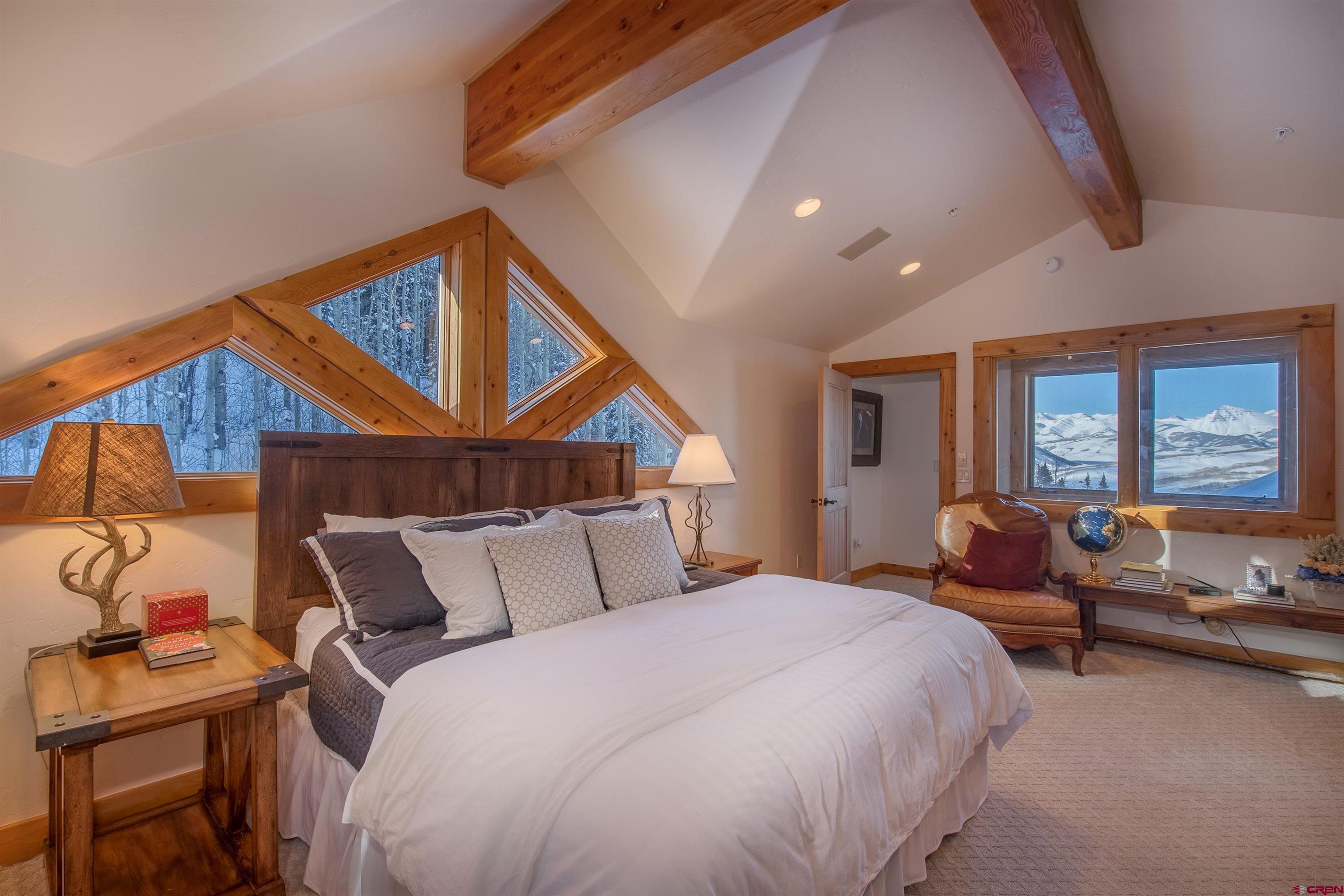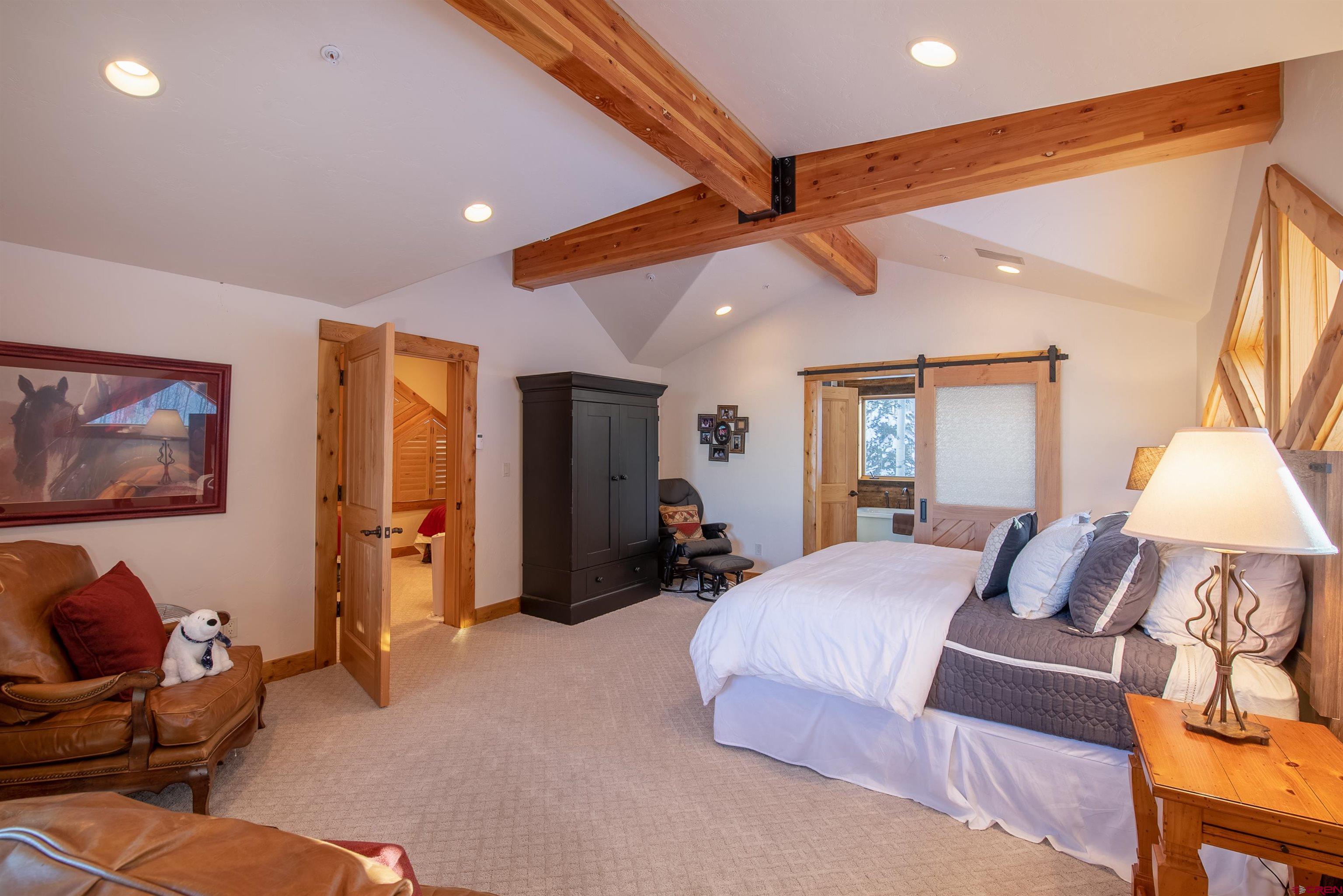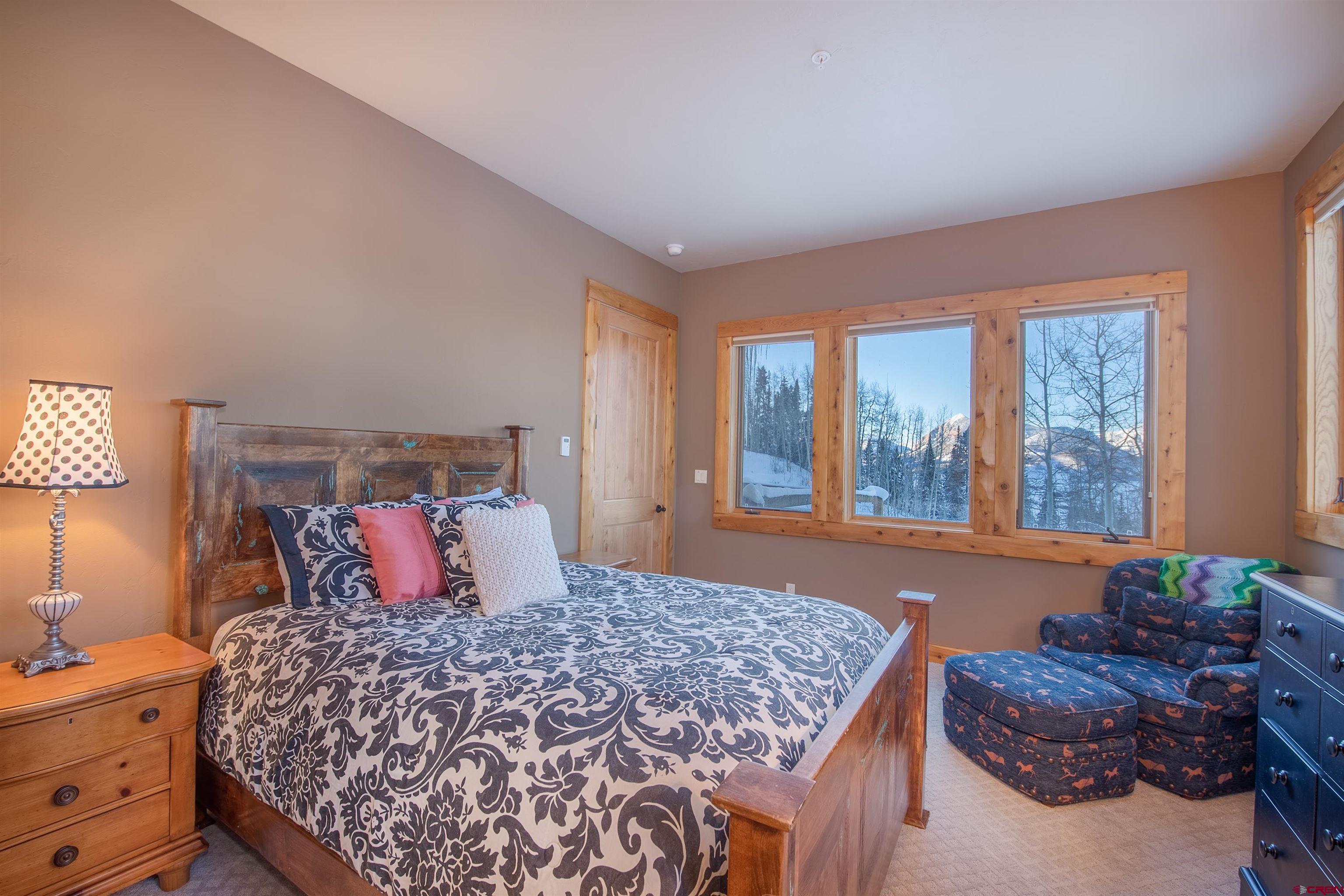 Welcome to 1894 Red Mountain Ranch, an exquisite log home nestled amongst the aspens. This home boasts rustic charm, stunning mountain views and located on 35 acres, giving you privacy and tranquility, yet just a short drive to the historic town of Crested Butte. The main level features a gourmet chef's kitchen with granite countertops and an exquisite AGA range oven. The open-concept living and dining area has an impressive stone fireplace, beautifully crafted beam details, and the mountain views we all covet. The first primary bedroom located on the main level is spacious and inviting with a custom designed bathroom. The second owner's suite, recently updated, is located above the garage. This private, extra-large bedroom has an additional room that can be used as an office, extra sleeping area, or workout room. The renovated spa-like bathroom is a true oasis, with an oversized soaking tub and beautiful wood and tile details. The lower level hosts two additional bedrooms, each with its own bath and a recreation room with a delightful, entertaining area with a bar and butler's pantry. Not to be missed is the four-season porch, where you can relax by the fire-pit or grill your favorite meals all year round while enjoying the stunning mountain views. If you have been looking for a true mountain log home with views, privacy, and custom design and details, then look no further - your new home awaits you!