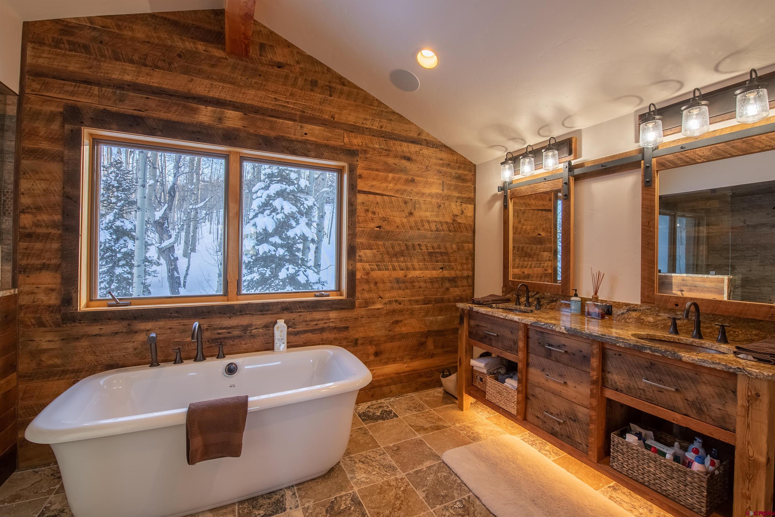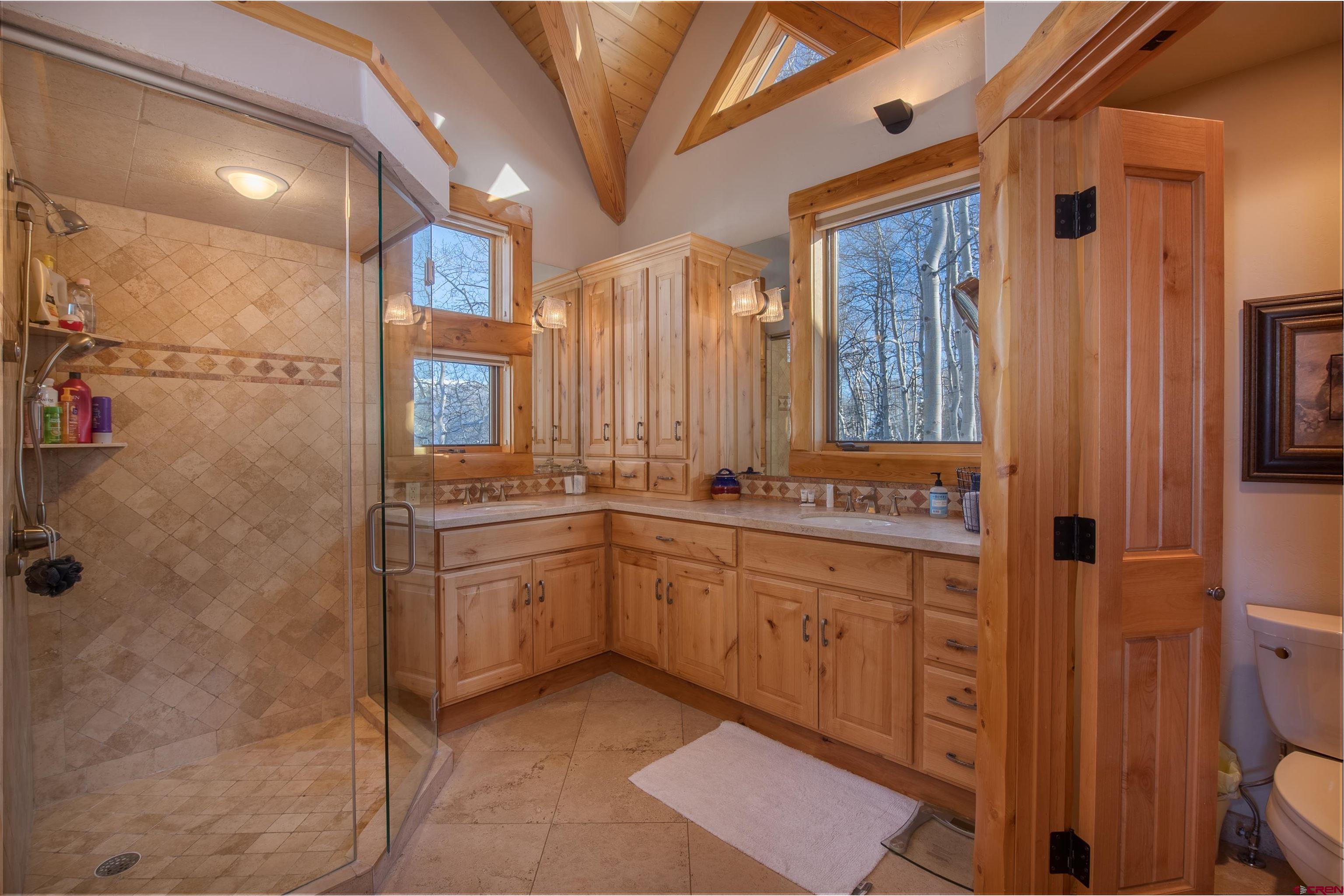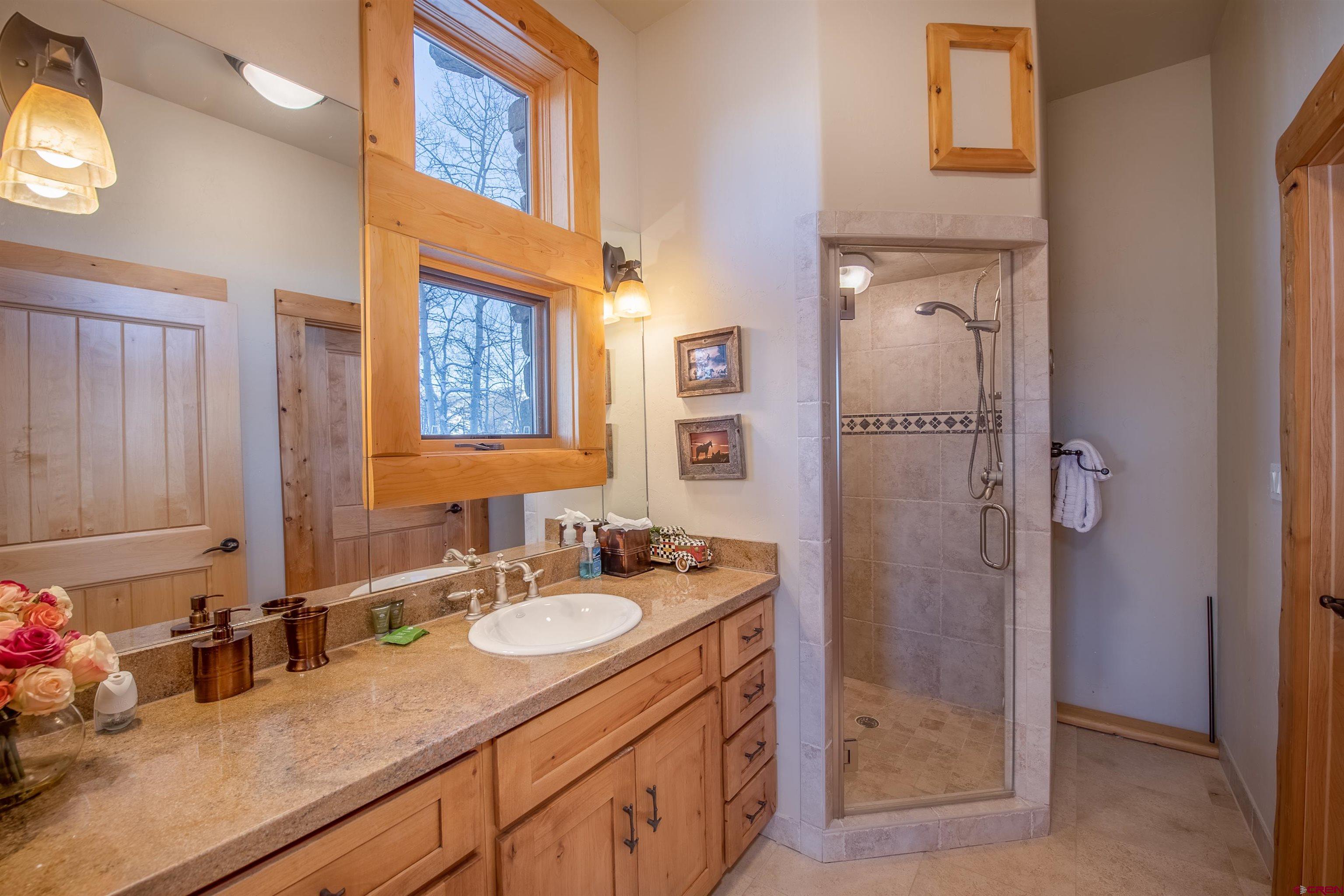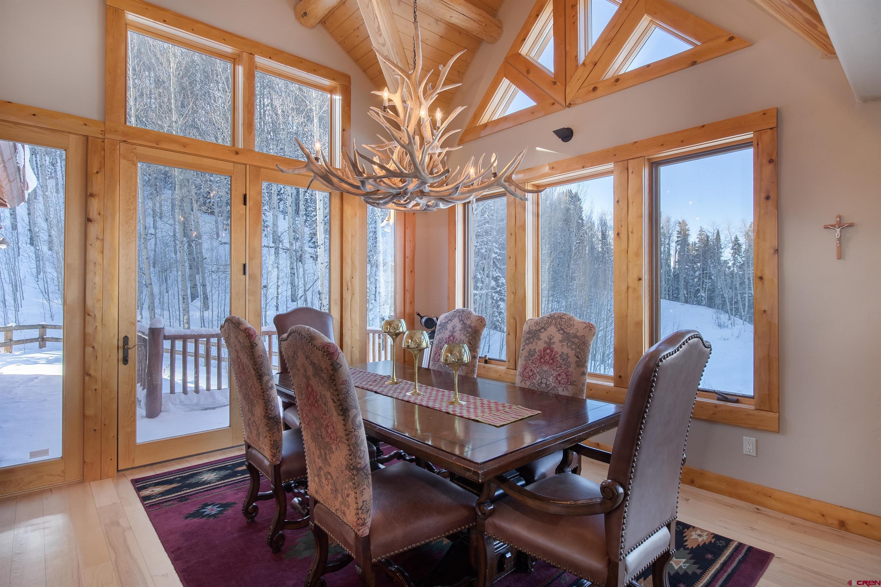 Welcome to 1894 Red Mountain Ranch, an exquisite log home nestled amongst the aspens. This home boasts rustic charm, stunning mountain views and located on 35 acres, giving you privacy and tranquility, yet just a short drive to the historic town of Crested Butte. The main level features a gourmet chef's kitchen with granite countertops and an exquisite AGA range oven. The open-concept living and dining area has an impressive stone fireplace, beautifully crafted beam details, and the mountain views we all covet. The first primary bedroom located on the main level is spacious and inviting with a custom designed bathroom. The second owner's suite, recently updated, is located above the garage. This private, extra-large bedroom has an additional room that can be used as an office, extra sleeping area, or workout room. The renovated spa-like bathroom is a true oasis, with an oversized soaking tub and beautiful wood and tile details. The lower level hosts two additional bedrooms, each with its own bath and a recreation room with a delightful, entertaining area with a bar and butler's pantry. Not to be missed is the four-season porch, where you can relax by the fire-pit or grill your favorite meals all year round while enjoying the stunning mountain views. If you have been looking for a true mountain log home with views, privacy, and custom design and details, then look no further - your new home awaits you!