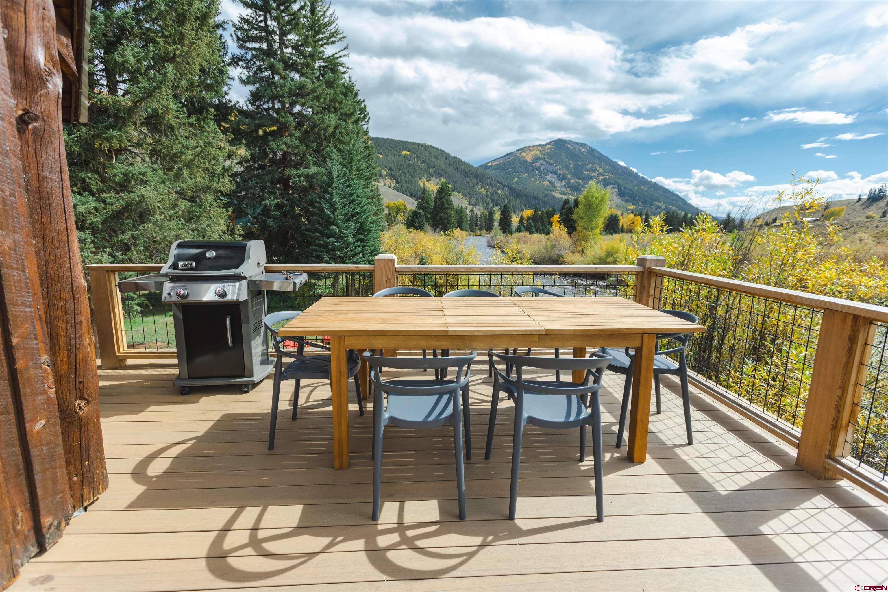 Located in the coveted Allen Home-site subdivision and on the East River, this setting is truly magical. One of a very few neighborhoods where you feel you are tucked away in the woods with a peaceful river running by. This recently updated 3 bedroom/3 bath home with loft is situated closer to the river's edge than would be allowed by today's guidelines. As you enter the main level you are greeted with a spacious mud room/entry way and you can see through to the outdoors. Also on the first level are two en suite bedrooms, one with access to the back deck and on out to the hot tub at the river's edge. Up the stairs on the second level you'll find an open kitchen/living/dining area that is bright & sunny with vaulted ceilings and lots of windows to enjoy the view. Walk out onto your riverfront deck, where you'll enjoy hours listening to the river and soaking up the mountain air. A detached, heated guest room offers space for overflow, a shed provides storage for all of your tools, toys and mountain gear. The wooded lot provides the perfect mountain get-away with spacious yard, riverside fire-pit and did I mention the hot tub where you can soak under the stars? Currently being rented on the short term rental market through VRBO and Airbnb, the rental income is excellent. Truly a gem!