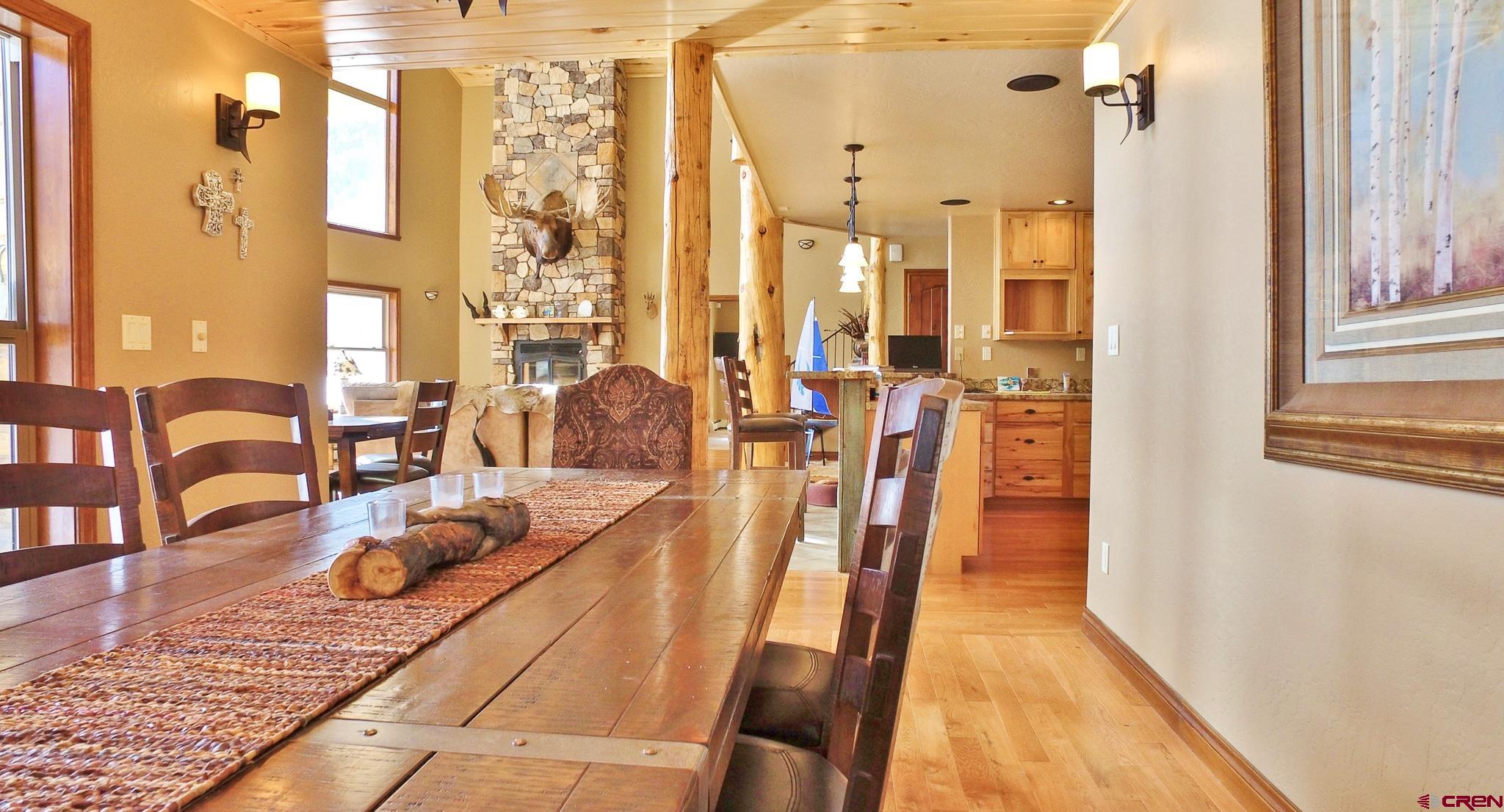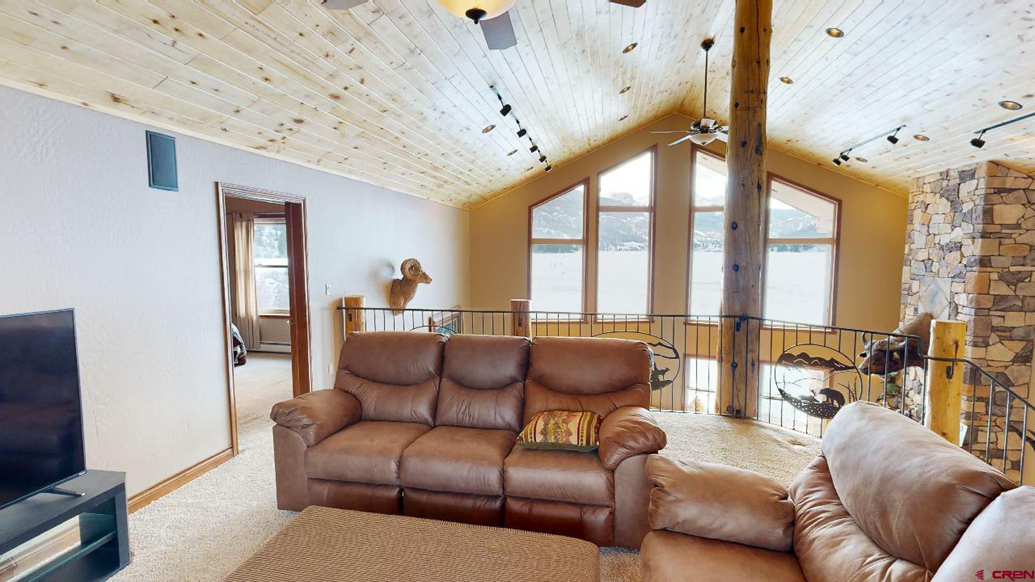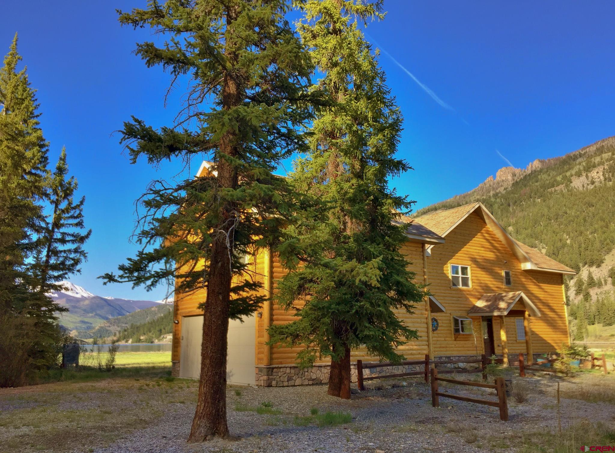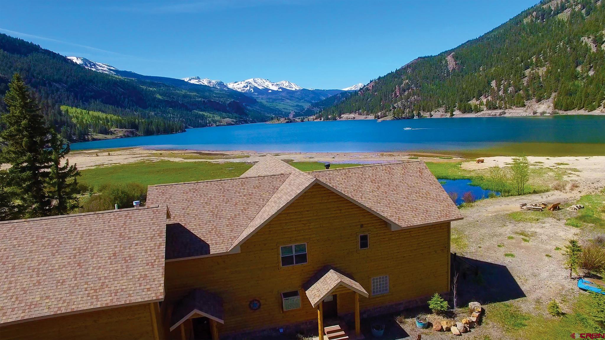 Lake San Cristobal is a paradise for anglers looking to cast their lines, hikers determined to explore the majestic mountains, and outdoor enthusiasts seeking adventure. Situated in Lake City, Colorado its shimmering waters are encircled by captivating peak views that seem to go on forever. When you venture up the road from Lake San Cristobal, the start of Cinnamon Pass on the Alpine Loop is just around the corner - here your recreational opportunities become endless! There's no better way get closer with nature than visiting this stunning location; come experience all of its natural majesty for yourself! Nestled upon the shore of Colorado's second-largest natural lake, this 3,723± square foot custom log-style home offers breathtaking views that many can only dream of. The home features beautiful additions such as a full-size rock fireplace, custom wrought iron railing on the stairs, and a luxurious kitchen. With 5 bedrooms, and 3.5 baths, the home allows for comfortable accommodations for several guests, with even more possible in the attached garage apartment. The extended covered deck facing the lake is an ideal spot for entertaining or simply relaxing while taking in the remarkable sights. Ideal for your family retreat and/or as a short-term rental, come see what this stunning location can provide you and your guests.