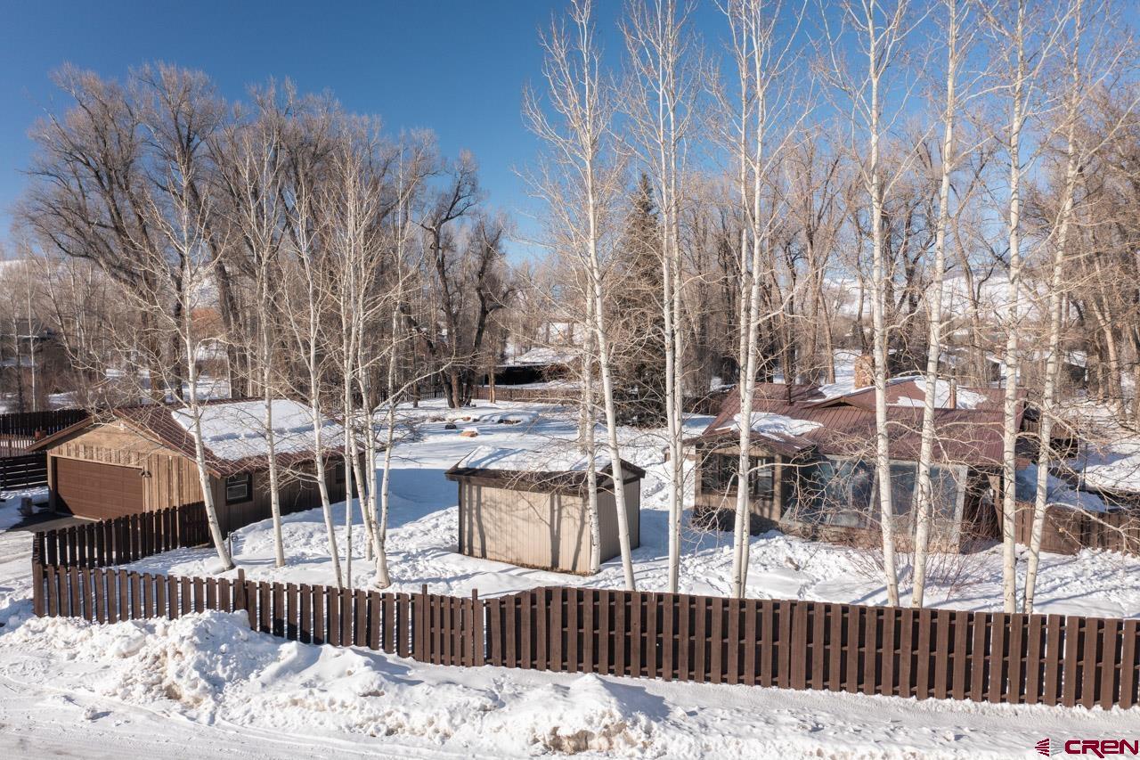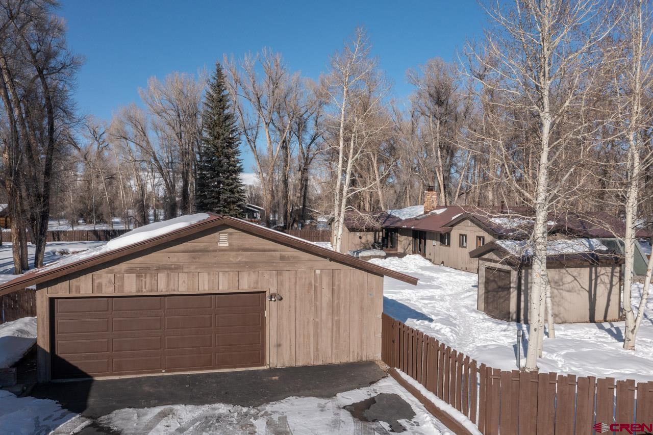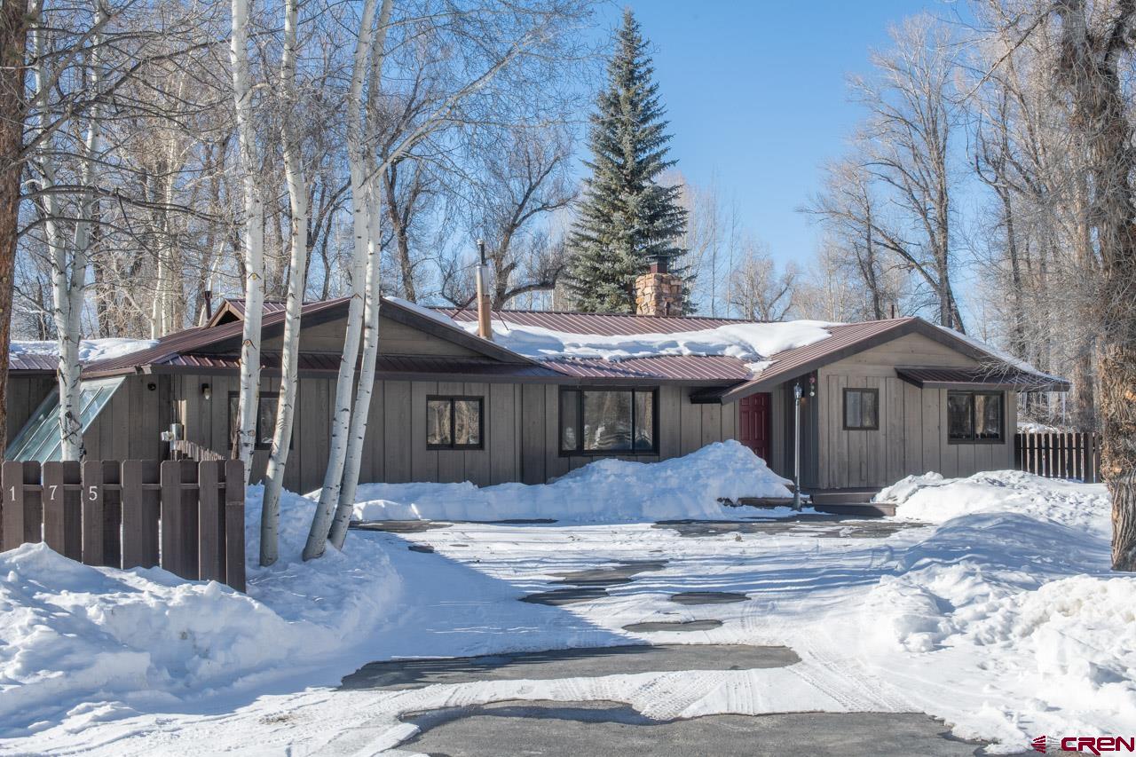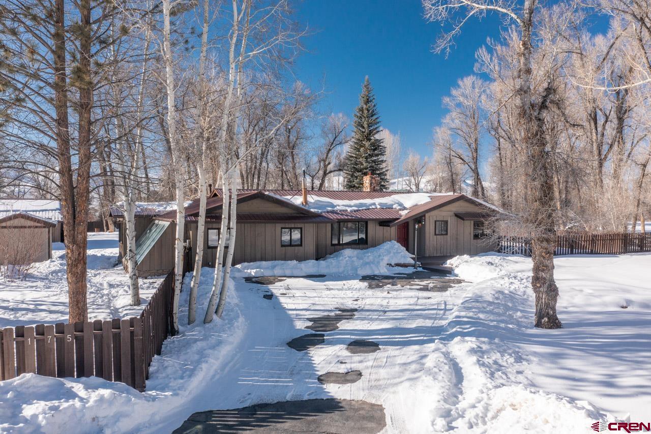 An excellent location next to Clark Stream and near to the Gunnison River boat launch and the rec path to town, 175 Apache Road is a three bedroom, three bath, 2,405 SF ranch style home sitting on a flat 1.7 acre parcel. The property features tall Cottonwood trees, a perimeter wood fence, a detached 2 car garage with a shop space and a detached shed that is big enough for an ATV and more. The south facing, attached atrium off the spacious living room is set up to grow food and it also brings solar heat into the home during the winter months. The updated kitchen features granite tops, stainless steel appliances and plenty of storage. There is a dedicated pantry room and the breakfast nook gets great southern light too. The primary suite bath enjoys two vanities, good storage and a steam shower. New flooring, tile, carpet and paint have been added along with brand new decks in the front and in back where the hot tub sits. The private back yard is massive and features an awesome fire pit ring for those summer gatherings. The driveways to the front door and the detached garage are paved too!