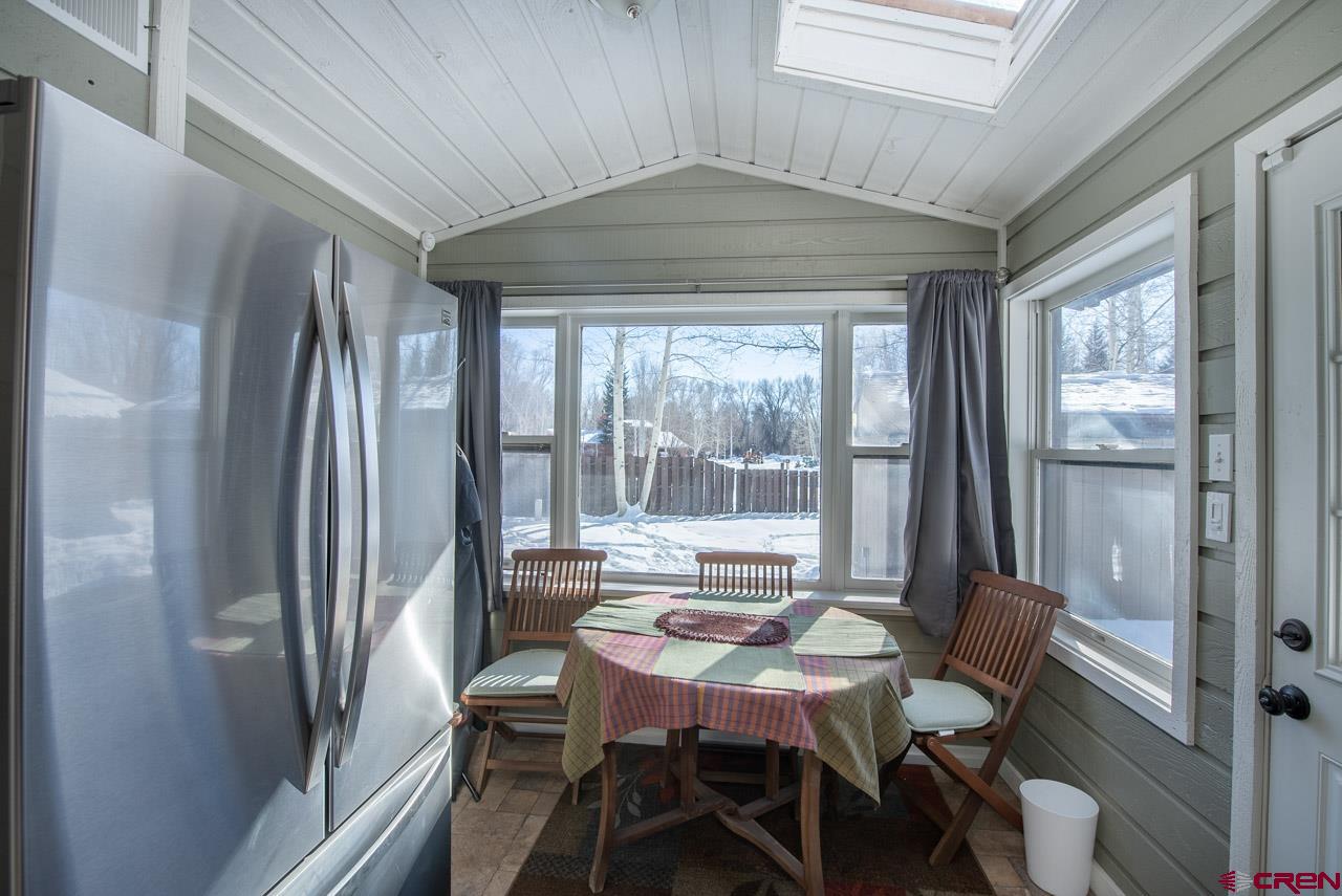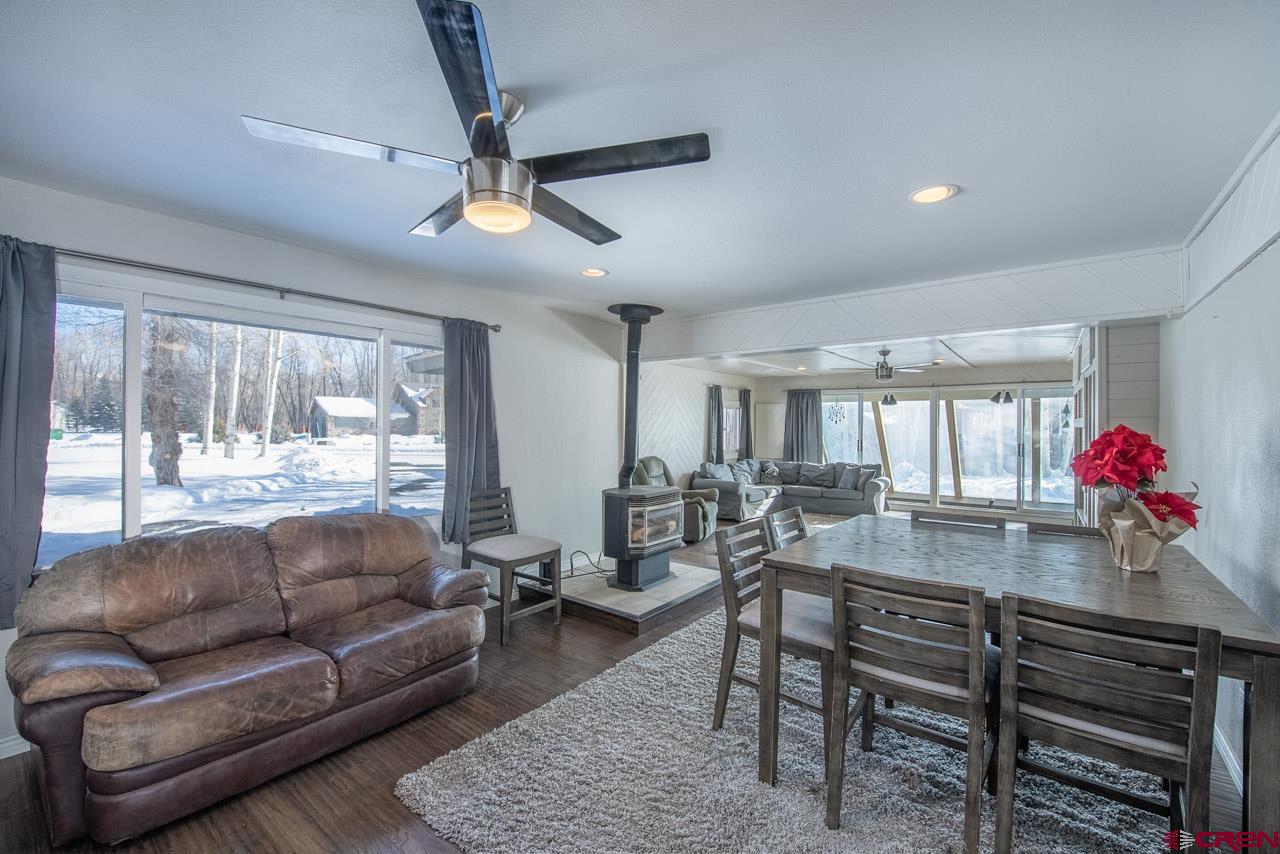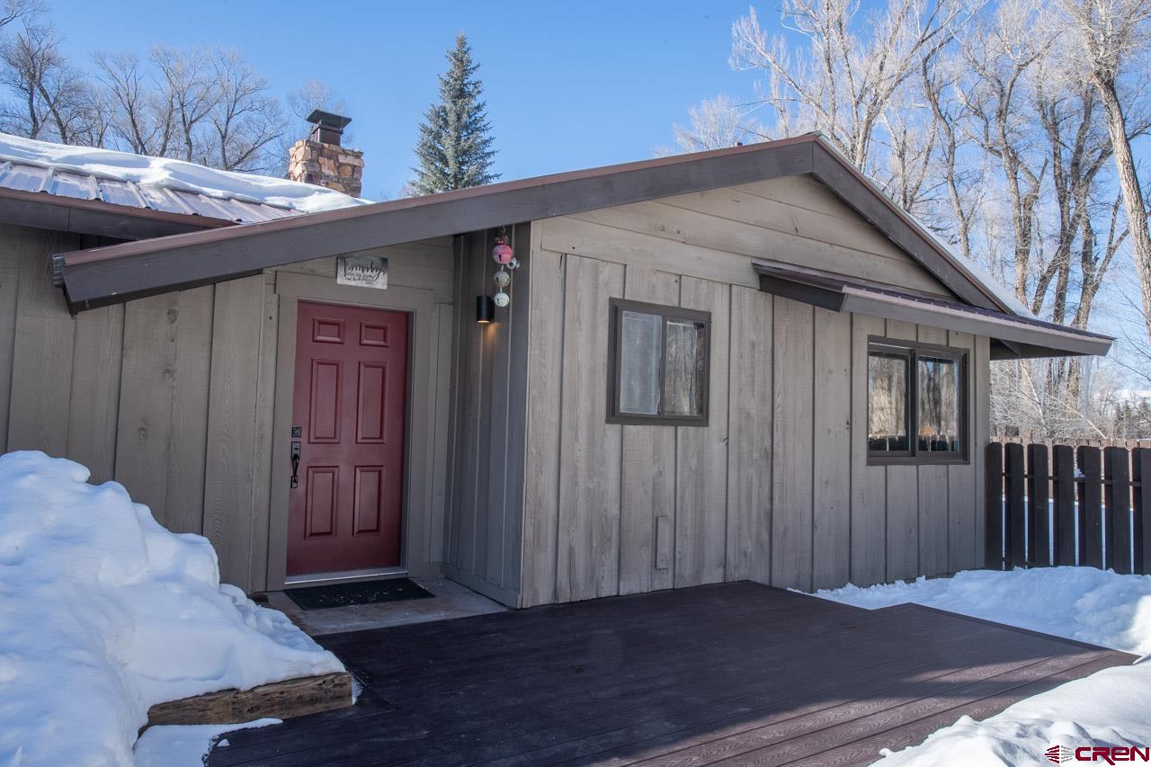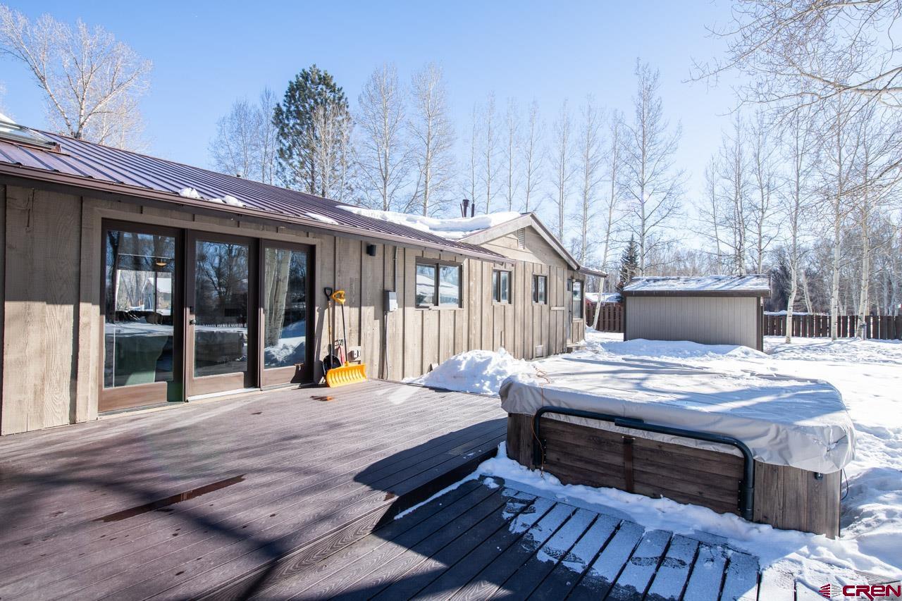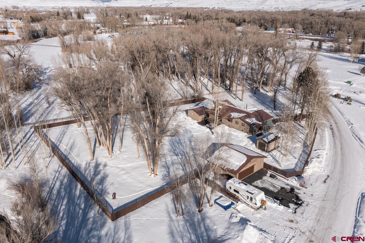An excellent location next to Clark Stream and near to the Gunnison River boat launch and the rec path to town, 175 Apache Road is a three bedroom, three bath, 2,405 SF ranch style home sitting on a flat 1.7 acre parcel. The property features tall Cottonwood trees, a perimeter wood fence, a detached 2 car garage with a shop space and a detached shed that is big enough for an ATV and more. The south facing, attached atrium off the spacious living room is set up to grow food and it also brings solar heat into the home during the winter months. The updated kitchen features granite tops, stainless steel appliances and plenty of storage. There is a dedicated pantry room and the breakfast nook gets great southern light too. The primary suite bath enjoys two vanities, good storage and a steam shower. New flooring, tile, carpet and paint have been added along with brand new decks in the front and in back where the hot tub sits. The private back yard is massive and features an awesome fire pit ring for those summer gatherings. The driveways to the front door and the detached garage are paved too!