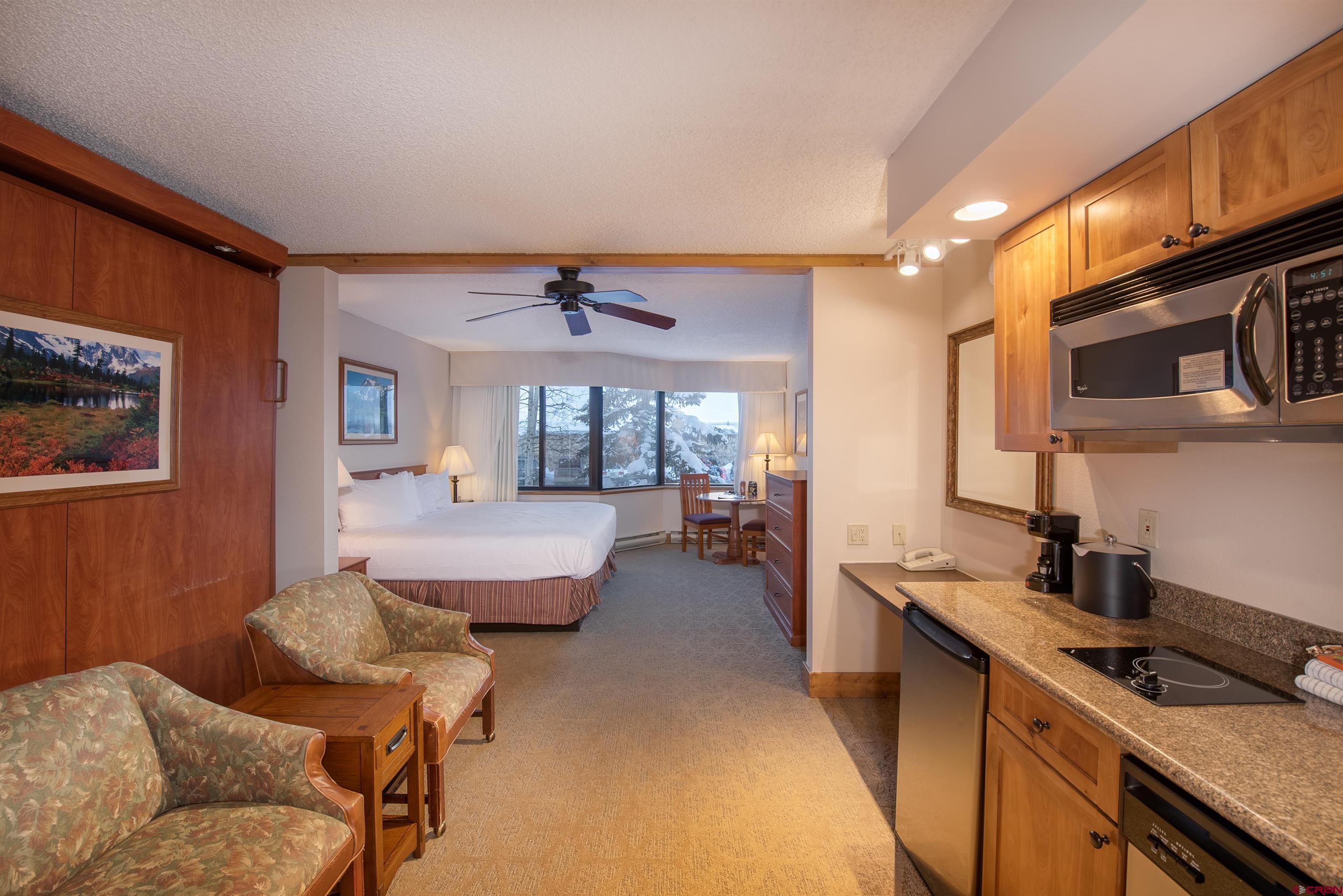 This is a great opportunity to own a property conveniently located at the base of Mt. Crested Butte. The Grand Lodge offers owners and guests some excellent amenities that include the heated indoor/outdoor pool, gym, sauna, gift shop, parking, and much more. Unit 219 is a King Suite that also has a Murphy Bed which makes it easy to comfortably sleep 4 people. The kitchenette gives guests the option of eating meals in the comfort of their home. When you are ready to explore the town of Crested Butte you only have to walk out the building's front doors to catch the free shuttle that runs every 15 minutes. This unit has an excellent rental history and is also available for owners to use when they choose.