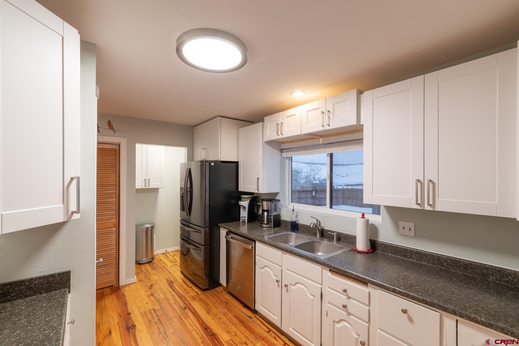 Located in the quiet upper Antelope Hills neighborhood, this 3-bed, 2-bath ranch is just a few minutes to downtown Gunnison with private access to the adjacent BLM land. The interior features an open-concept living & built-in dining area with plenty of natural light and wood burning fireplace to stay warm on colder days. The renovated kitchen features newer appliances & new upper cabinets- kitchen appliances are included! A stackable washer/dryer located in an adjacent closet is also included! The primary bedroom has large closets & en-suite bathroom. One-care attached garage plus a huge 1500 square foot detached shop/garage. The shop features large overhead doors, heat, and an elevated platform for storage or office space. The south-facing backyard, fully-fenced, is a perfect spot to catch a sunset & summer evenings. The gravel driveway is great for easy maintenance.