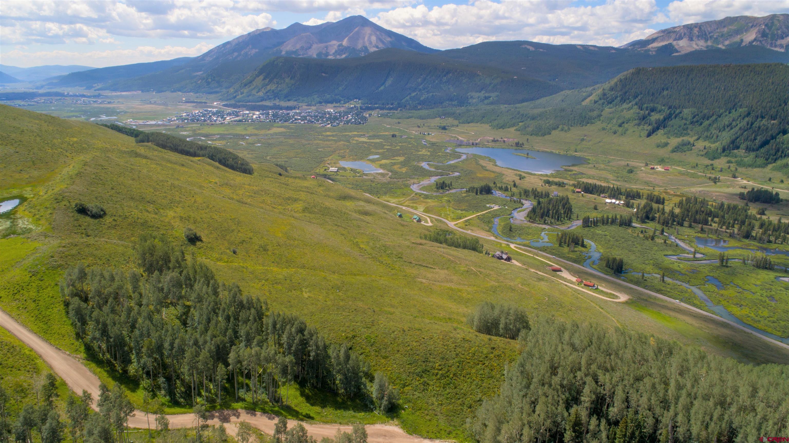 Most incredible building site in the valley, site is prepared and ready to build on this 35-acre parcel in The Smith Hill Ranches. Ranch #7 is a 35-acre parcel located in the Smith Hill Ranches with views overlooking Nicholson Lake and endless views up the Slate River Valley. Ranch #7 is a secluded site that has been leveled and prepared to build on. Site has electricity and phone pedestal on site. Water well is in place and septic is ready to install. Smith Hill Ranches are made up of only eight 35-acre tracts located up Washington Gulch (turn off on Phoenix Way). Five homes are built, only 2 vacant sites remain. HOA maintains the roads, entrance and fences. The ski area and the town of CB are both minutes away from the gated entrance. Views are magnificent, site is surrounded with trees and is accessible year-round. This is a must-see site that is prepped and ready to build on, permits are current. House and Guest House plans are available.