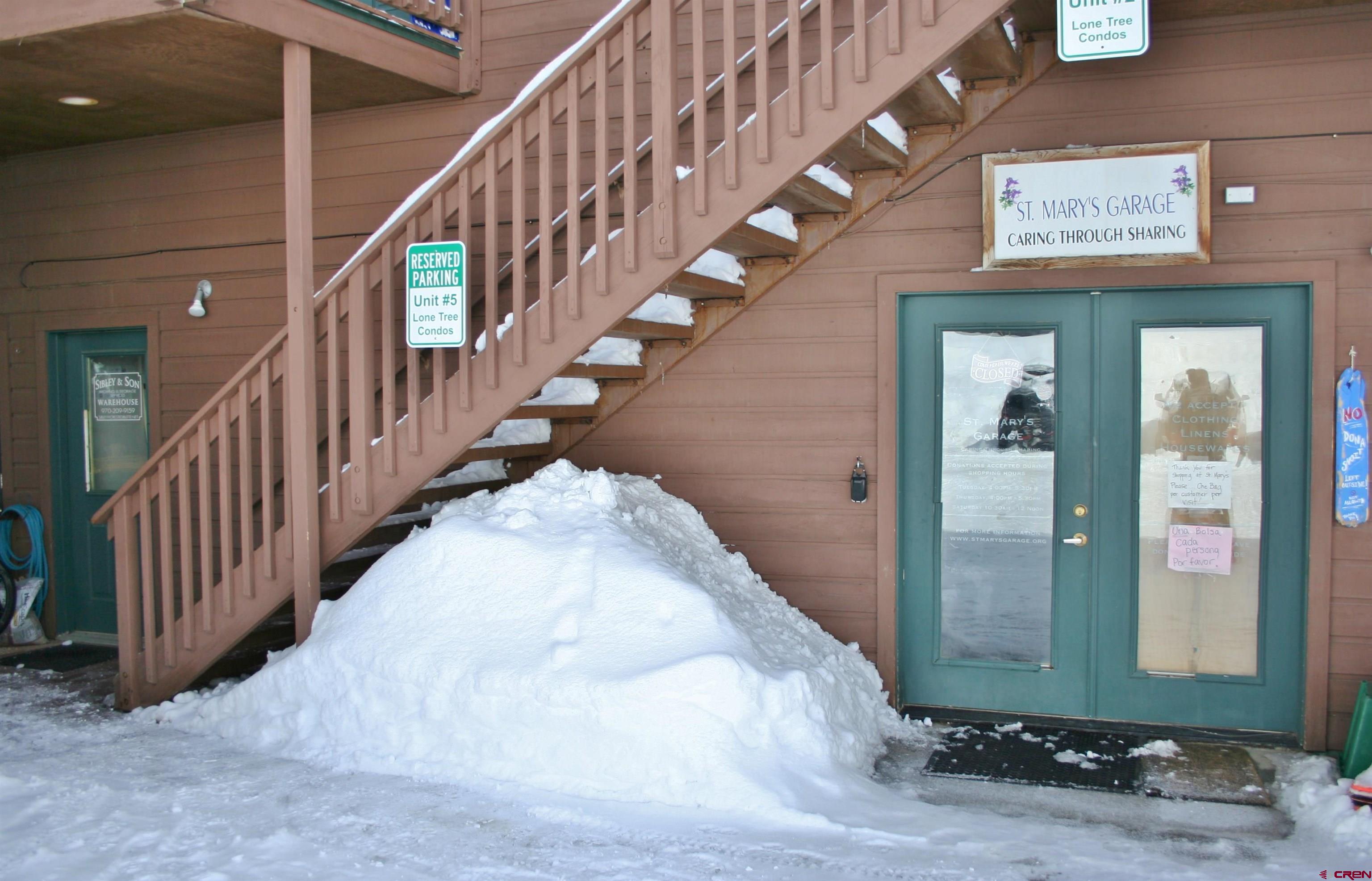 Lone Tree Unit 2 commercial condominium at 300 Belleview Avenue is a good-sized 810 sq. ft. ground level business space conveniently located in downtown Crested Butte. The commercial condo space is suitable for retail, workshop/industrial or office uses. The interior has high ceilings, concrete floor with in-floor radiant heat, 6’x6’ half-bath with two doors and 4 large east facing windows. The unit has 2 front door entrances providing the opportunity for the unit to be 2 separate businesses. Included are a washer/dryer hook-up and rough-in plumbing for a shop sink. The in-floor heat is provided by Lone Tree Condominiums HOA included with the HOA monthly dues. The property is currently rented to St. Mary's Garage store until June, 2023. The neighborhood commercial environment has the Big Mine Park hockey rink, Crested Butte Nordic Ski Center, Adaptive Sports, The Eleven Experience, Mikey’s Pizza, and retail stores and businesses within walking distance. Lone Tree Condos #2 provides a convenient commercial location for one or two ground floor business spaces in a good business location in Crested Butte.