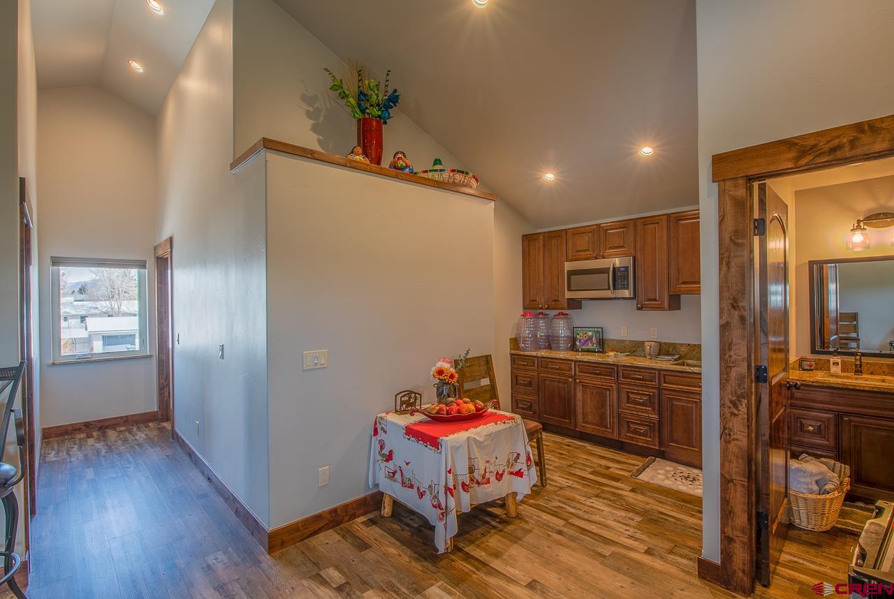 Extremely convenient location on the South end of Gunnison, a few blocks to recreation fields, trail system, downtown, University and fishing on Tomichi Creek. Well-constructed with quality features through-out this home. From the front entry, a stairway to the left leads to small living area (currently used as a bedroom) two bedrooms and a bath. The main floor has a master bedroom/bath, living room with fireplace, dining area and large kitchen. The laundry room and half bath create a transition to the oversized garage and stairs to an additional bonus/living room with kitchenette, two more bedrooms and a bathroom. The outside living space and covered porch is enhanced with a large flagstone patio. Low maintenance yard. This is a beautiful home!