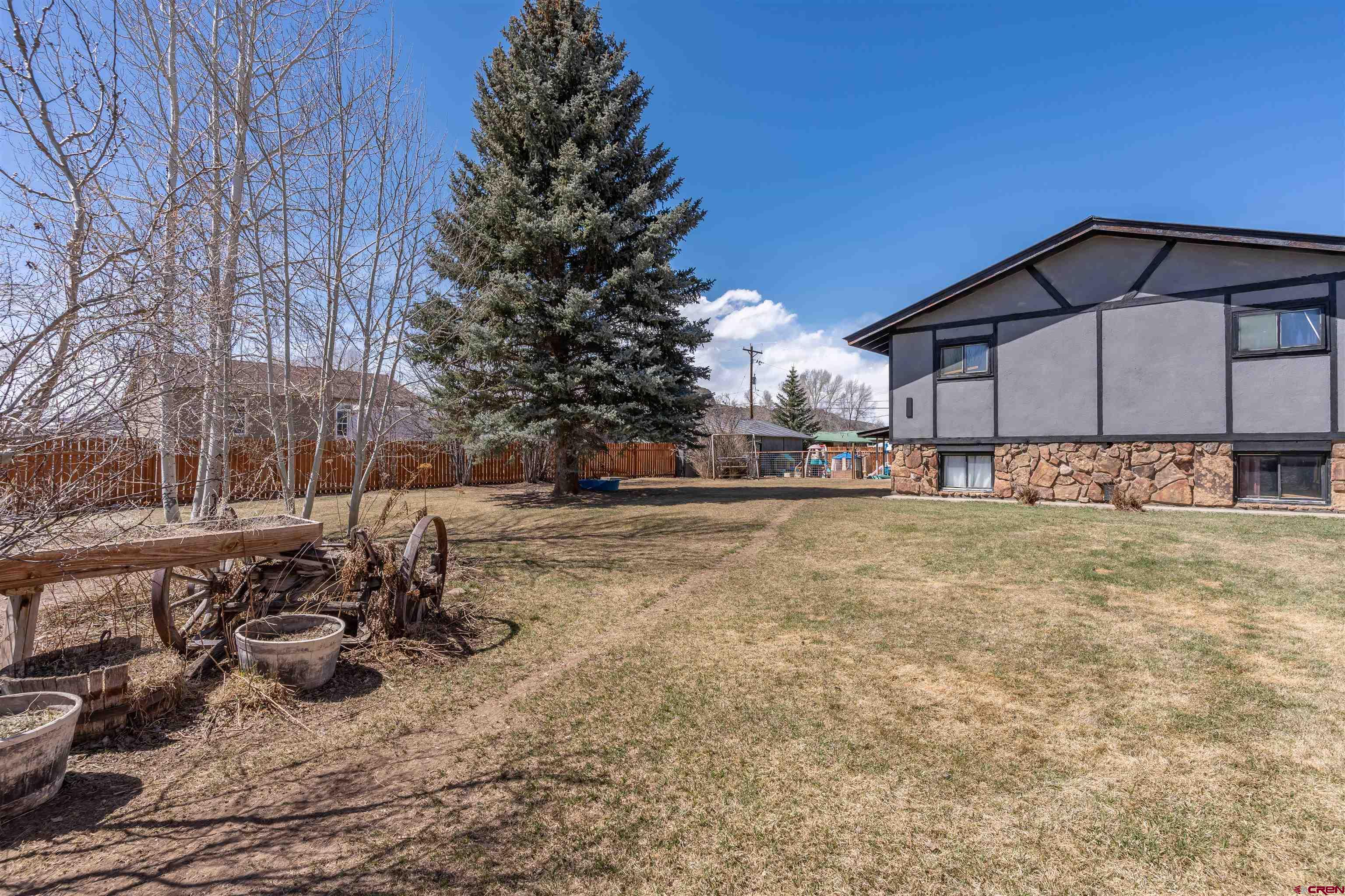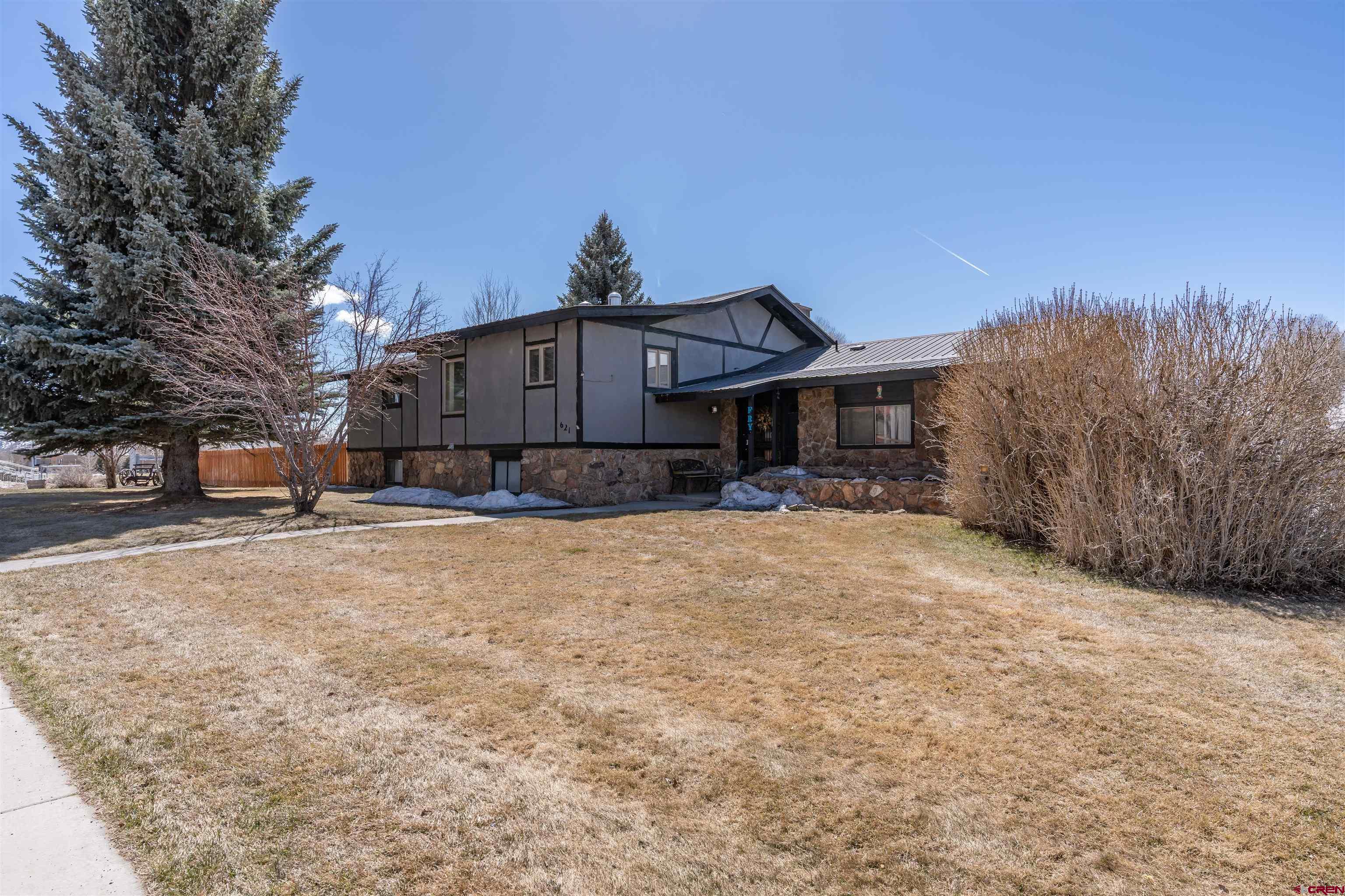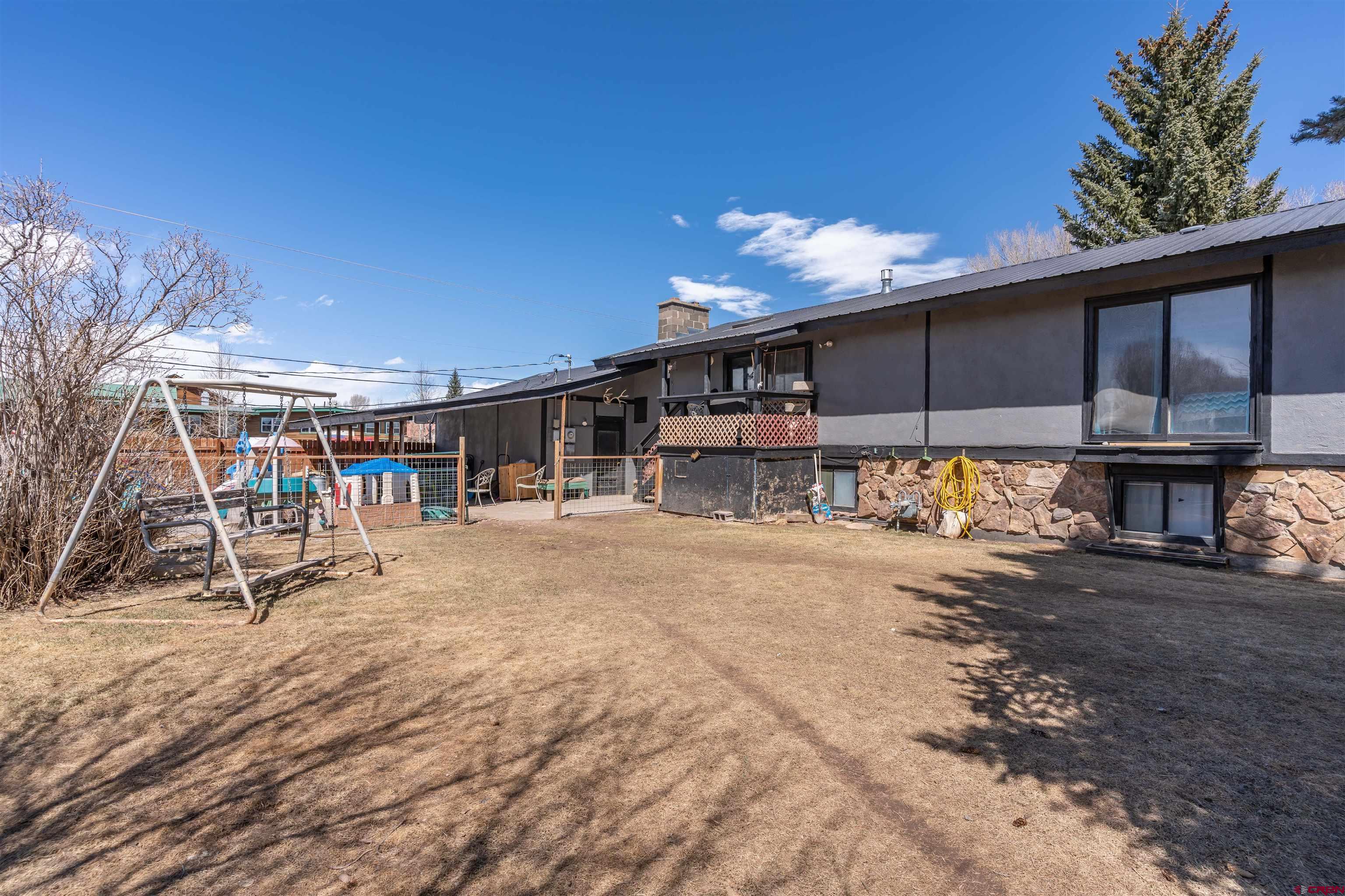Dreaming of a home equipped with a yard in town that's large enough to store all of your ATV's, Camper, bikes, Raft, boat, Vehicles, and more! Imagine having the yard space that includes a play area, as well as, green space already fenced in for pets. Not only is the yard amazing, This spacious home offers 5 Bedrooms (one which is currently being utilized as an office), 3 Bathrooms( one full, one 1/2, and one 3/4) and an attached and detached garage for all your outdoor recreational vehicles. Walking in, you'll be drawn to the wood burning stove in the living room that will provide comfort and warmth all winter long. The kitchen offers a double oven for all your cooking needs and a large pantry allowing for plenty of storage space. While there are two bedrooms and one 3/4 bathroom on the main level and an additional two bedrooms and full bathroom downstairs, there is also a half bathroom and an office to the right of the entryway and it could be utilized as a 5th bedroom, as it does have a closet. The vast storage of this home is incredible consisting of attic space, two garages, and additional closets. The yard possessing large pine trees and lilac bushes is equipped with a water pump to access seasonal water irrigation . Enjoy the conveniences this home offers near amenities, the Gunnison Schools, parks, the Vantuyl Trail, and the RTA bus system that travels up to Crested Butte Mountain Resort where you can enjoy skiing, snowboarding, hiking, and mountain biking.