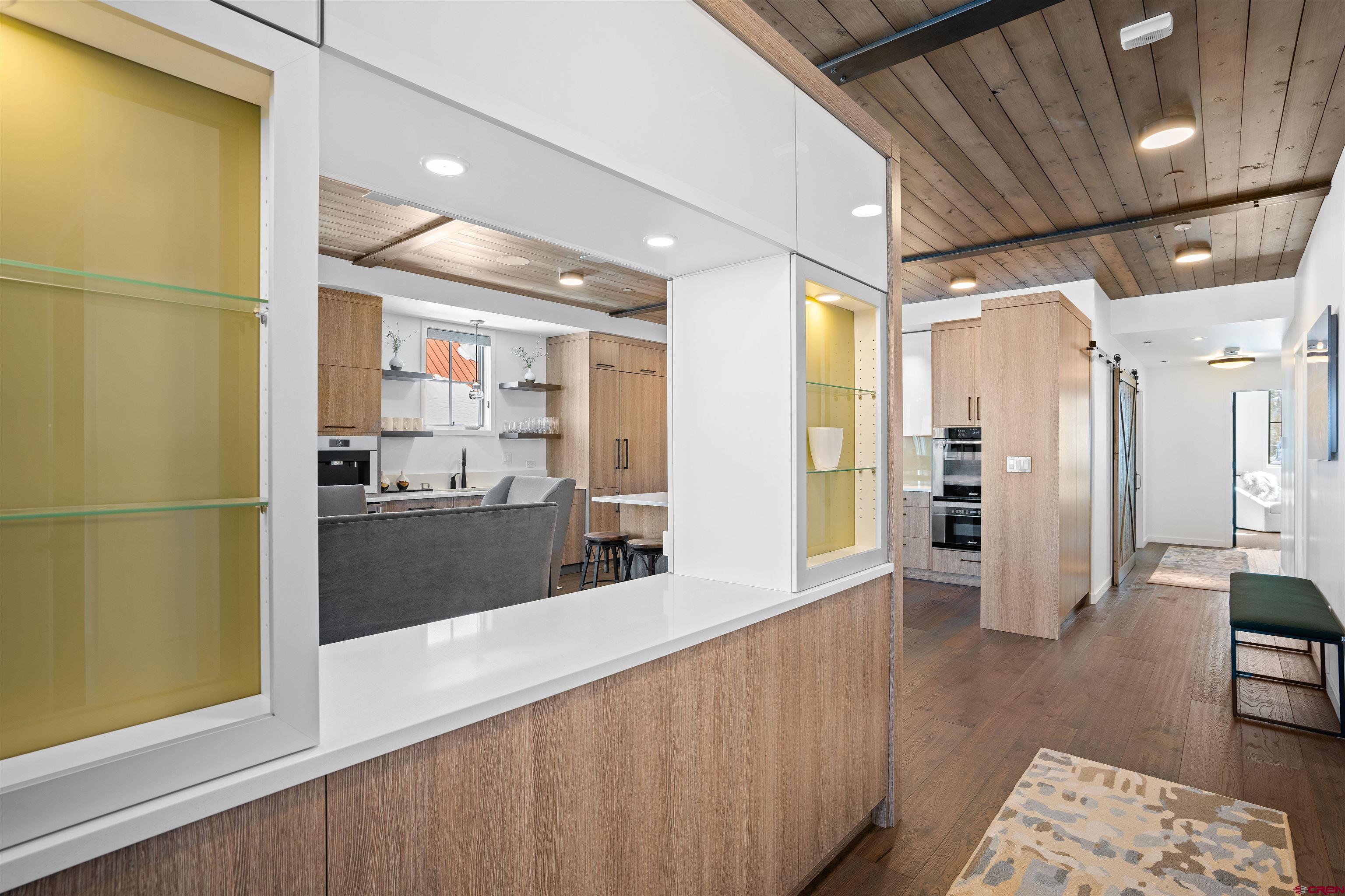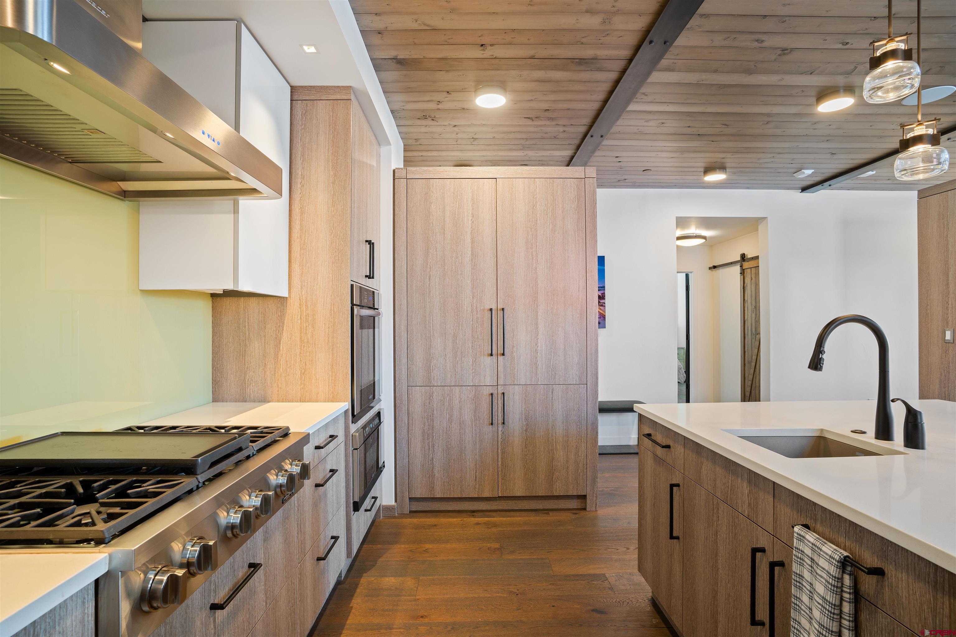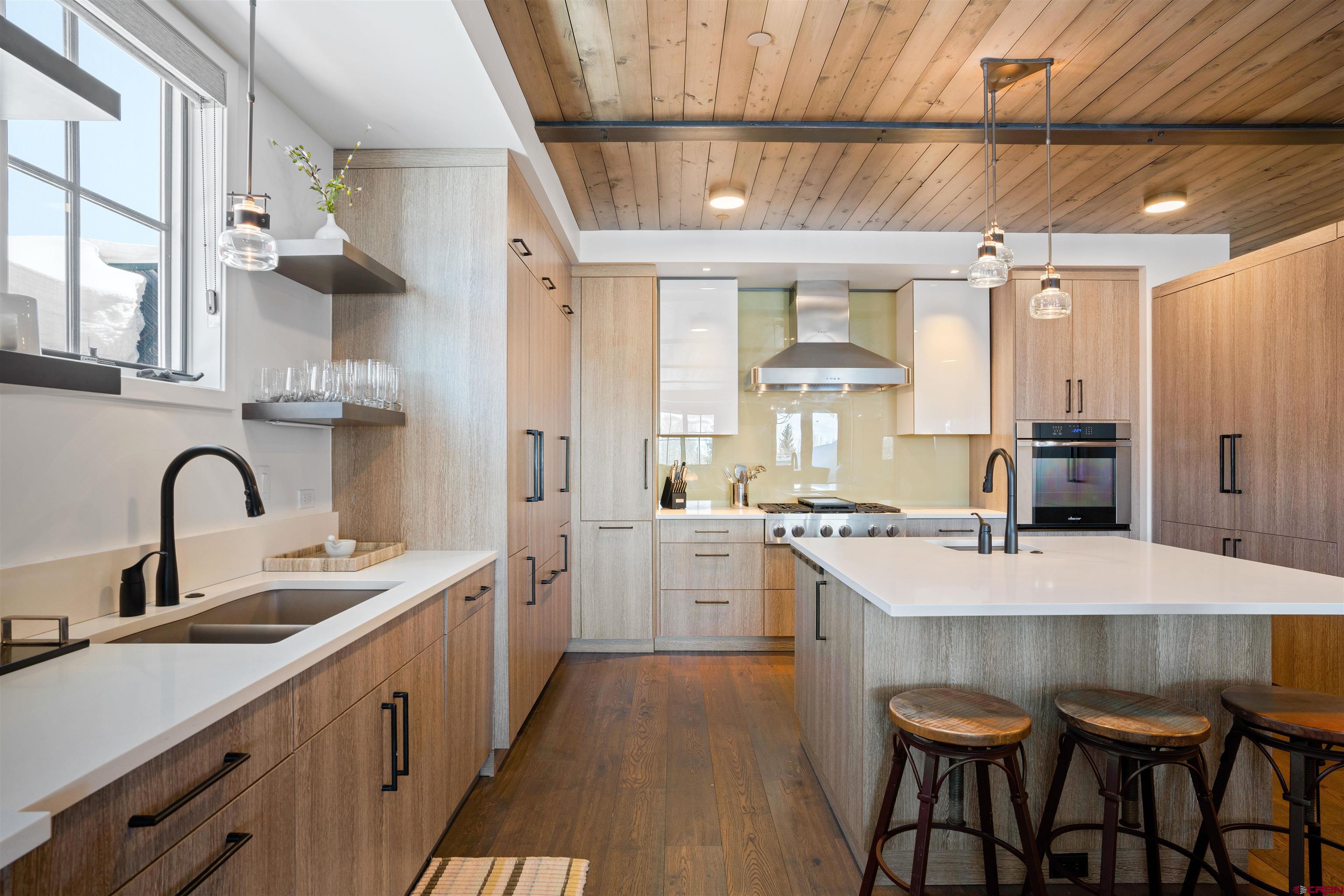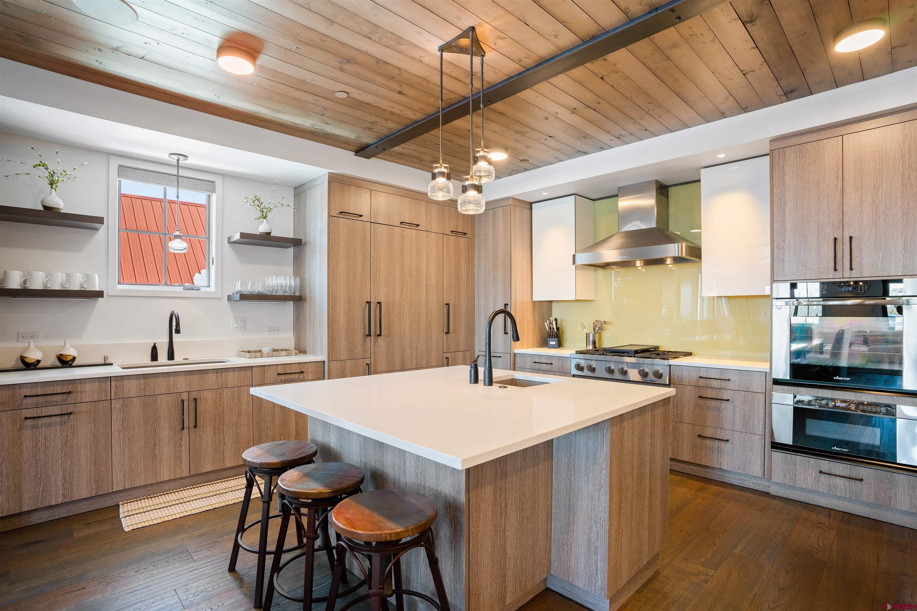 Experience the pinnacle of luxury living in this breathtaking modern mountain penthouse located in the highly sought-after Green Drake building. With over 3,400 total square feet, this magnificent residence boasts 4 spacious bedrooms, 4 lavish bathrooms, and a large private office - all impeccably designed to the highest standards. Crafted by some of the best in the business, Hargrove and Kidd Construction, the stunning interior finish work by Thurston Kitchen and Bath, and the architectural design by Andrew Hadley are a true testament to the exceptional quality of this property. The open floor plan on the top floor is perfect for entertaining and features gorgeous wood floors and ceilings, a gourmet kitchen with Dacor appliances and quartz countertops, built-in coffee bar, large center island, and a dining room with a custom-built buffet. The living room is adorned with a modern fireplace, floor-to-ceiling stacked stone accents, and ample natural light. There are also four bedrooms, two master suites with gas fireplaces and two bedrooms with a shared bath and a lovely balcony with views in every direction. Downstairs, you will find a large fully wired private office with room for a conference table and work stations and a separate bathroom-which all could be rented separately for income. There is also a second office space/storage room that could be a rental option as well. The highlight of the second floor is the 588 sf deck with incredible mountain views. Both floors of the penthouse are ADA accessible with an elevator and level floor plan with wide doors and easy to maneuver flooring. Live in the lap of luxury in the heart of downtown Crested Butte - this property is truly one of a kind and must be seen to be believed. Don't miss your chance to experience the ultimate in sophisticated mountain living.