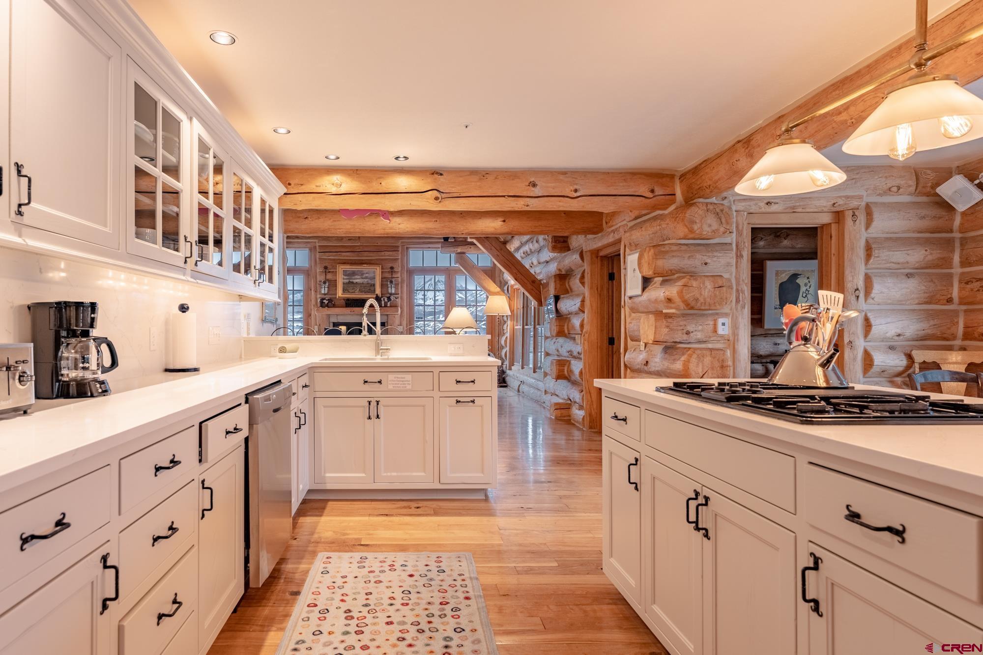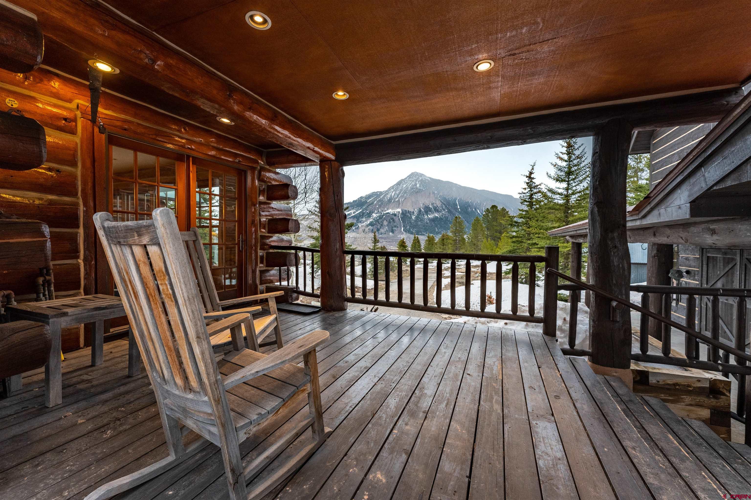 A one-of-a-kind opportunity to own a home on over 35 acres located on the Bench just above the historic town of Crested Butte. This property borders the Southern boundary of town leaving you a short walk (.3mile) from downtown Crested Butte. The original Log home was hand crafted and set with a pulley system by expert log builders in 1993. The main home is three bedrooms all en suite. Gourmet kitchen provides plenty of counter space with a center island w/cook top, a side counter area with bar stools, walk in pantry, and dining area with drop dead views of the Butte. Main living area has vaulted ceilings lots of windows, large fireplace, and two glass doors that open out to front deck and hot tub area that has panoramic views of Paradise divide, Mt. CB, and the entire valley. Master Bedroom and Bath are on the main level with large walk out deck to enjoy the sunrise and your morning coffee. The upper floor has two well sized bedrooms with en suite baths and an office area. Walk out basement area has a game room, laundry facilities, ground level entry and mud room, half bath and an oversized garage for a car and toys. Guest house was built in 2008 and the upstairs features a bunk room with a full bathroom, closet, and huge South facing deck. The downstairs is currently used as a gym and features a half bath and storage room with tons of space and could be converted into many options. This is a one of a kind property only a few minutes walk from all that CB has to offer situated on 35+acres which provides you seclusion and privacy from all the hustle and bustle of town. In the winter months the CB Nordic center one of the country’s premier Nordic programs is located just down the hill and the over 50 Km of groom trails are easily accessed from the home. The home is on a septic system but is one of the rare properties not in the town limits that is connected to the town of CB's water supply, and as such is not subject to the growing issues of having a well.
