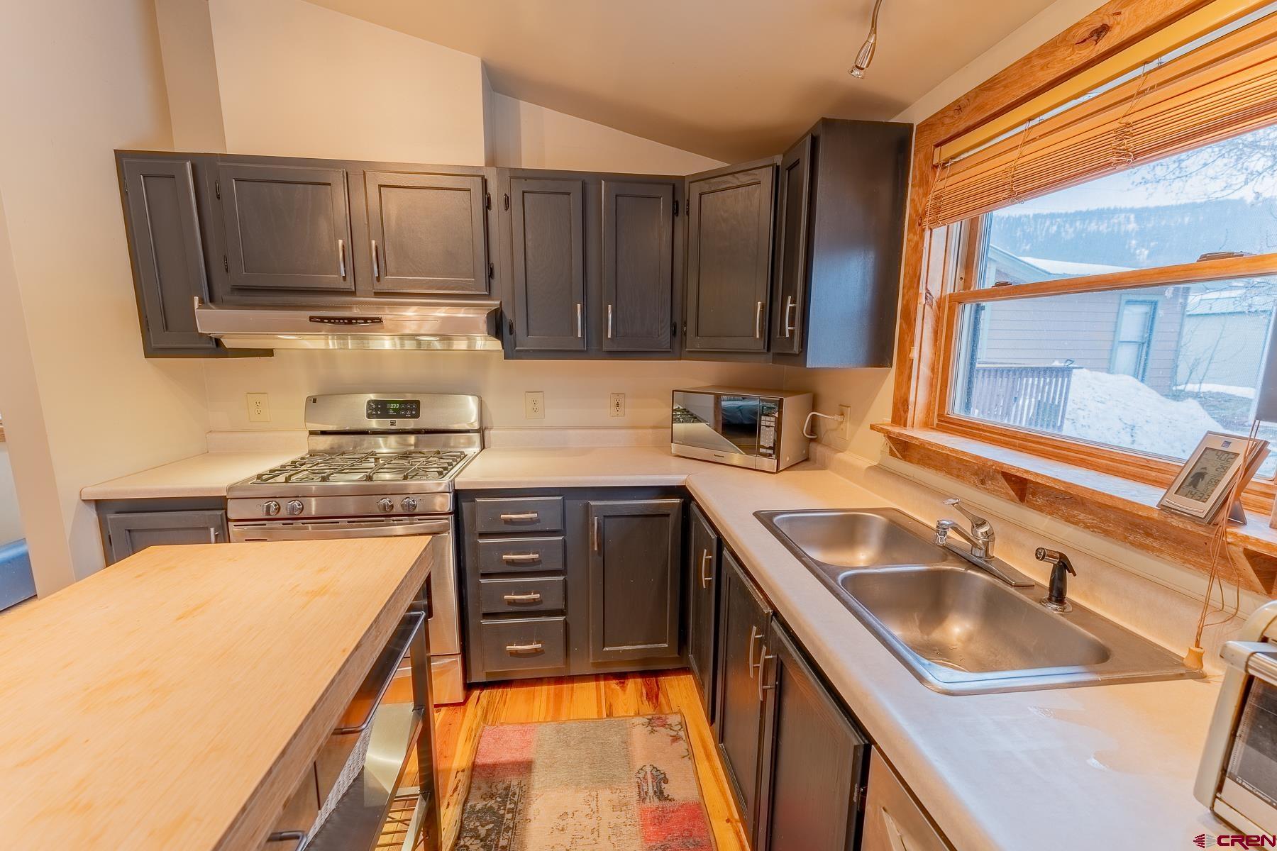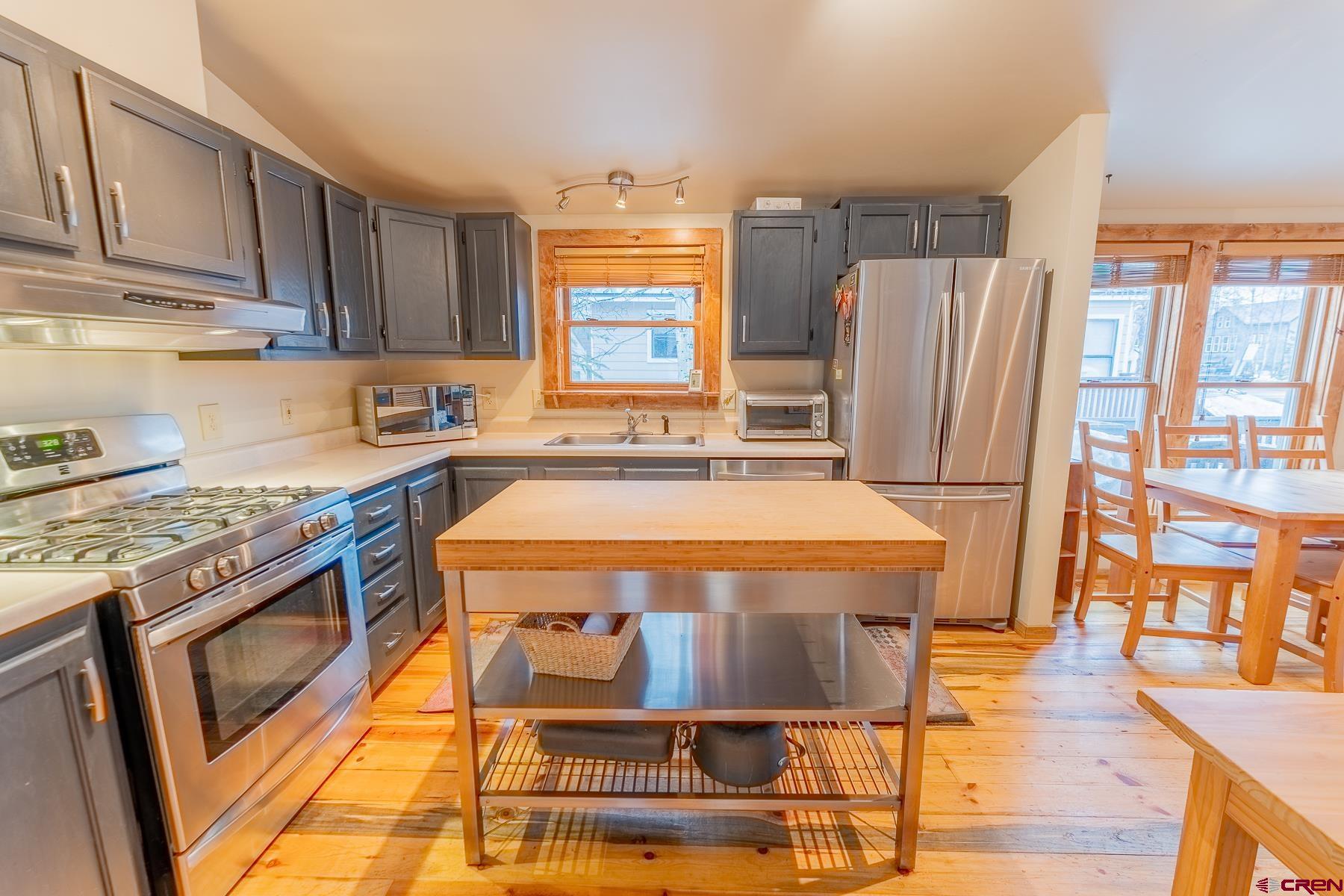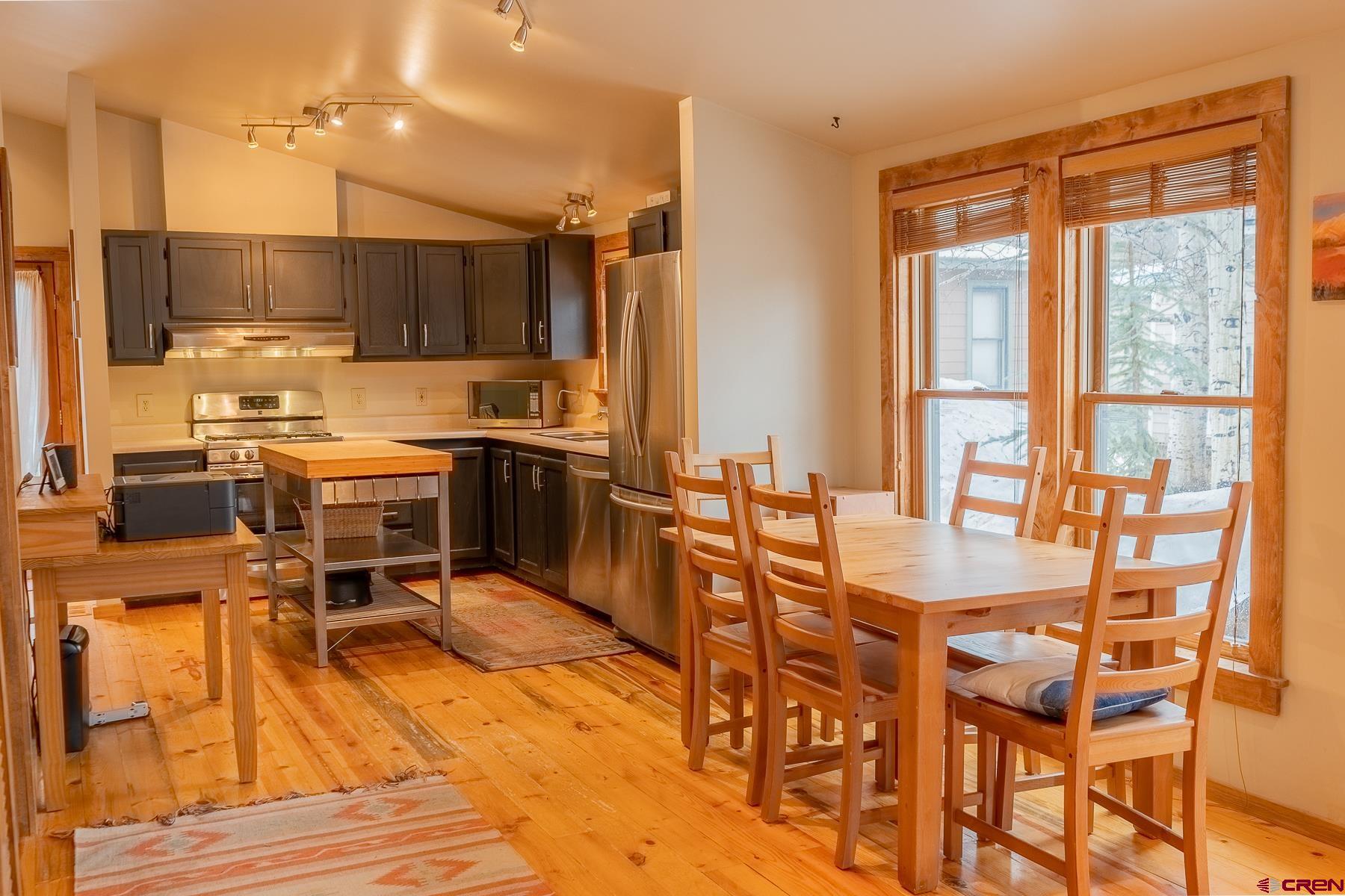 Experience the epitome of mountain living at 124 Butte Ave! This remodeled double-wide home offers a stylish and comfortable retreat with breathtaking views of Mt. Crested Butte. Nestled on an expansive lot, this property eliminates concerns about space, rent, and HOA dues, providing a stress-free lifestyle. Embrace the harmony of nature combined with modern convenience in this cozy Crested Butte home. Recent upgrades and expansions ensure every need is met. The house is equipped with top-notch insulation and windows, maximizing energy efficiency. A new roof was installed in 2019, and the deck was refinished in Fall '22. Unlike other properties, this one includes the actual lot ownership. Your recreational vehicles will find a perfect spot with three ample parking spaces, making off-street parking a breeze. The interior boasts a range of modern amenities, such as in-floor heating in the addition, chic pine wood floors, vaulted ceilings, and state-of-the-art stainless steel appliances. The creative loft storage space, steam shower, and more add to the luxurious feel. The outdoor area is equally inviting, with a spacious lawn surrounded by mature aspens, evergreens, and a sprinkler system to ensure your enjoyment. Plus, the bonus oversized heated, insulated storage building with French doors and additional creative storage options will accommodate all your belongings. Situated close to Elk Avenue's historic district with its charming restaurants and shops, this location combines the convenience of an in-town lifestyle with the beauty of nature right outside your door. Embrace an active Crested Butte lifestyle with easy access to hiking trails, a children's playground, and the picturesque Peanut Lake, all at an affordable price point. Now is the time to turn your Crested Butte dreams into reality! Come home to 124 Butte Ave and immerse yourself in the best of both worlds.