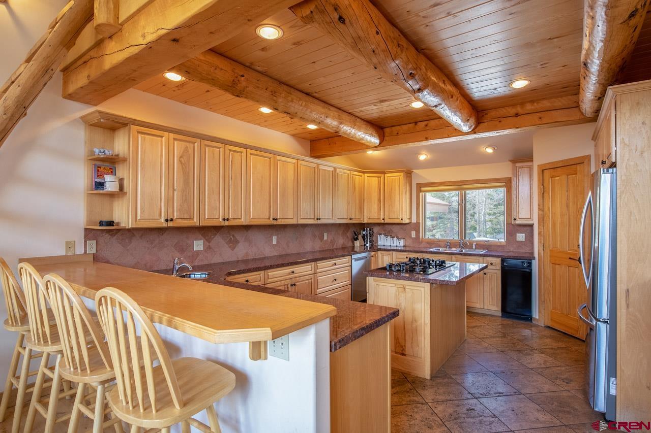 A primo location on Whetstone Road just above the ski resort base area, this three bedroom, three bathroom home enjoys proximity to the skiing but peace and privacy away from the busy base area hotels and condo complexes. Rec path access is just down the street and if you don't want to spin or walk to the base area you could catch the free shuttle bus on Gothic. The open floor plan features maple hardwood flooring, vaulted ceilings with log beams and tongue-and-groove treatments, big picture windows, a rock fireplace and a loft space above. The big kitchen includes new appliances, attractive hickory cabinets, granite tops, a pantry and travertine tile floors. All three bedrooms and two baths are located downstairs. The primary bedroom includes a deep soak tub, shower, a double vanity, a walk-in closet and walk-out doors to a patio. There is a side-by-side washer and dryer setup too on the lower level. The third full bath is located on the main living level. The dedicated driveway parking and heated 446 SF garage are a bonus.