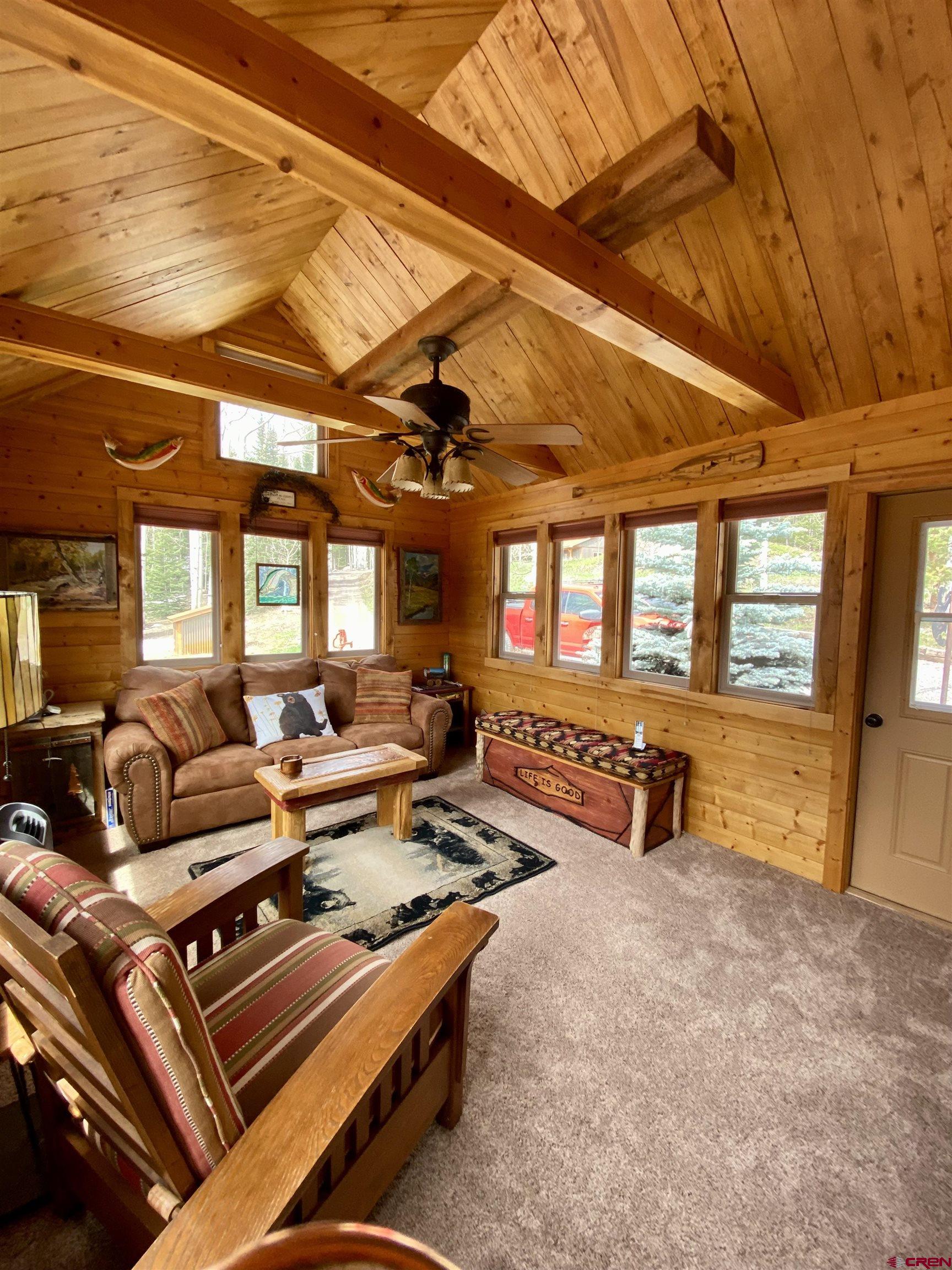 Welcome to Bare Inn Located in the gated community of Bear Claw, with views that will take your breath away. This highly upgraded and beautifully maintained cabin offers reclaimed hand-hewn wood floors, vaulted wood ceilings and custom finishes throughout. The granite kitchen has custom cabinets with copper inlay, a large butler pantry, and a dining area with views. Putter the day away in the barn-style workshop, complete with a storage loft and covered parking for a snowmobile or side-by-side. No expense has been spared in insulating the entire home with blue board R10 insulation and foam below the frost level. In addition, all windows and doors are dual-pane. The open and flexible floor plan makes for easy living with a sunroom, enclosed screened-in porch, beautiful open beam sunroom, and loft that can be used as a second bedroom. The outdoor decks with a built-in firepit make it an ideal place to enjoy the views of the Aspens, pines, and mountains.
