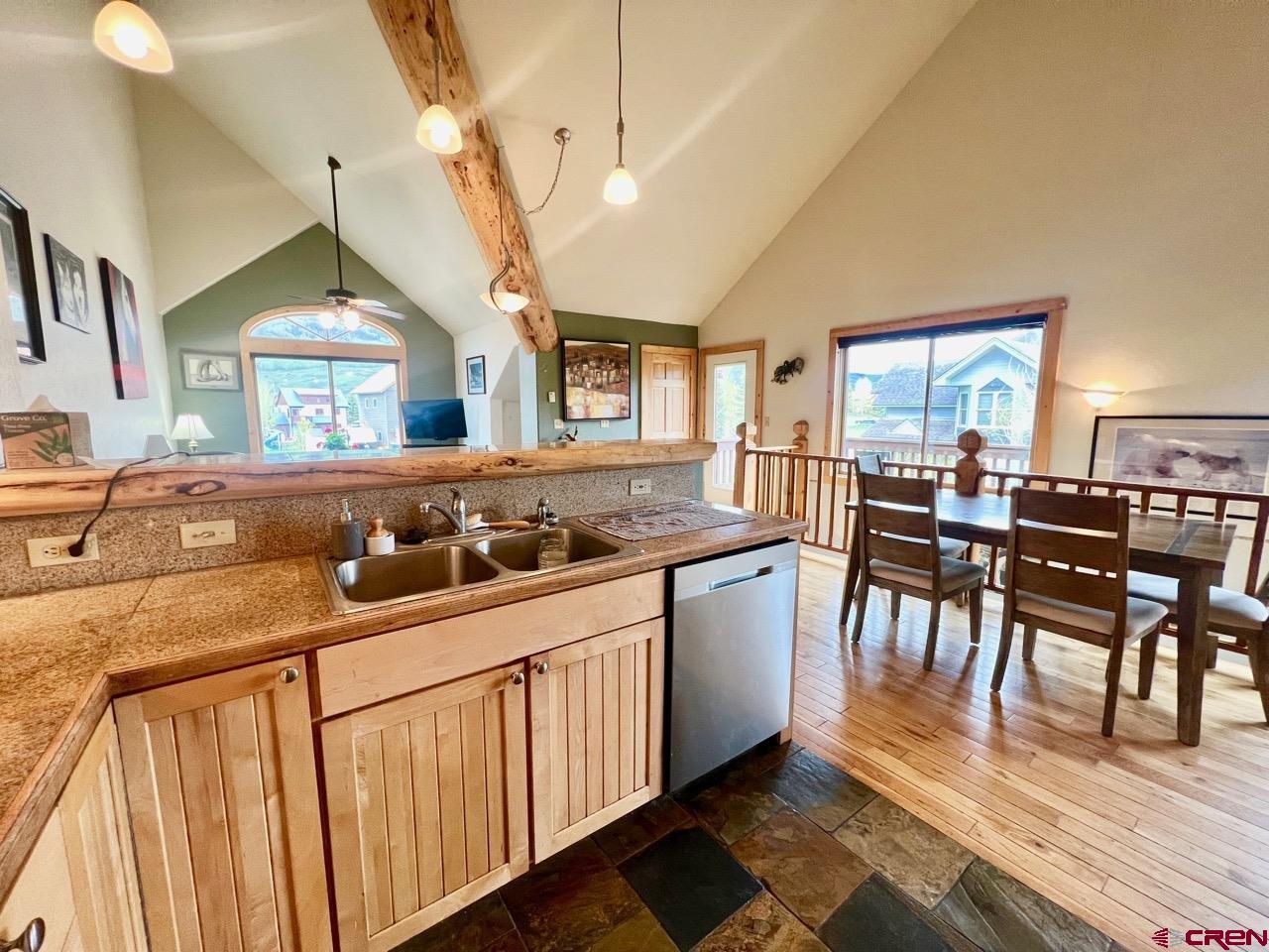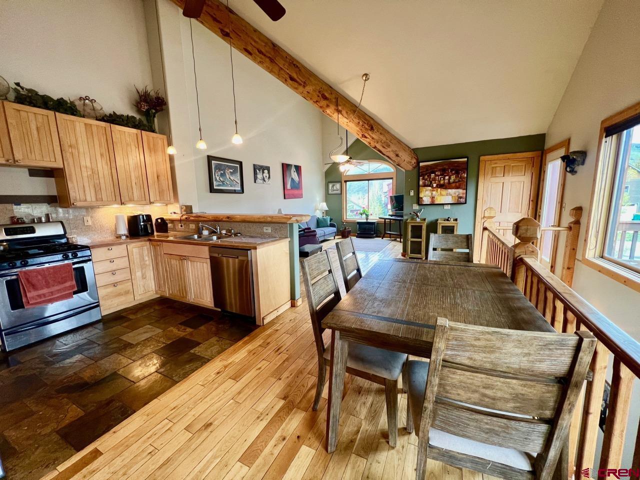 Located on a quiet, cul-de-sac street this 3 bedroom, 2.5 bathroom, 1,522 square foot home in Crested Butte South features a vaulted ceiling in the main living area with log beams, granite kitchen counter tops, natural slate and solid oak flooring, and a large outdoor deck with views facing toward Whetstone Mountain and the setting sun in the west. The deck has a stairwell that leads down to the large, fenced backyard yard that offers privacy and room for your pets. This home has a 1-car garage, plenty of parking in the driveway, and also includes a storage shed. Just a short, easy walk away is the amazing CB South community park. Enjoy HOA amenities such as baseball & soccer fields, hockey rink, skating pond, community garden, skateboard park, basketball court, kids playground, miles of cross-country skiing and access to gold-medal fishing on the East River!! And the Cement Creek valley is right out your back door- featuring one of Gunnison County's finest outdoor playgrounds with miles of hiking, mountain biking, camping, hunting, snowmobiling, cross-country skiing, etc.