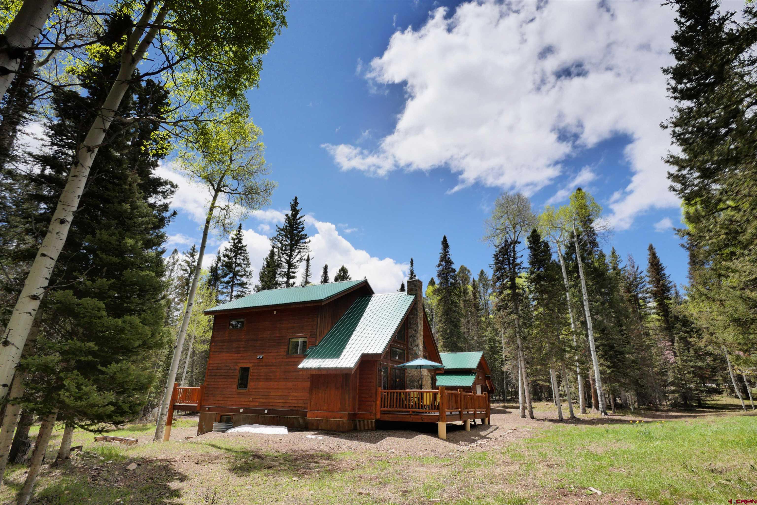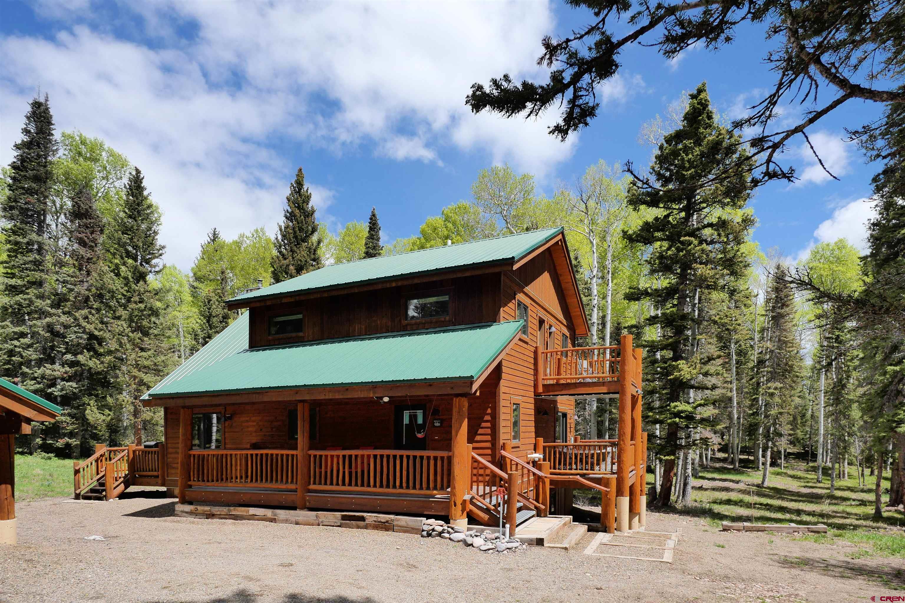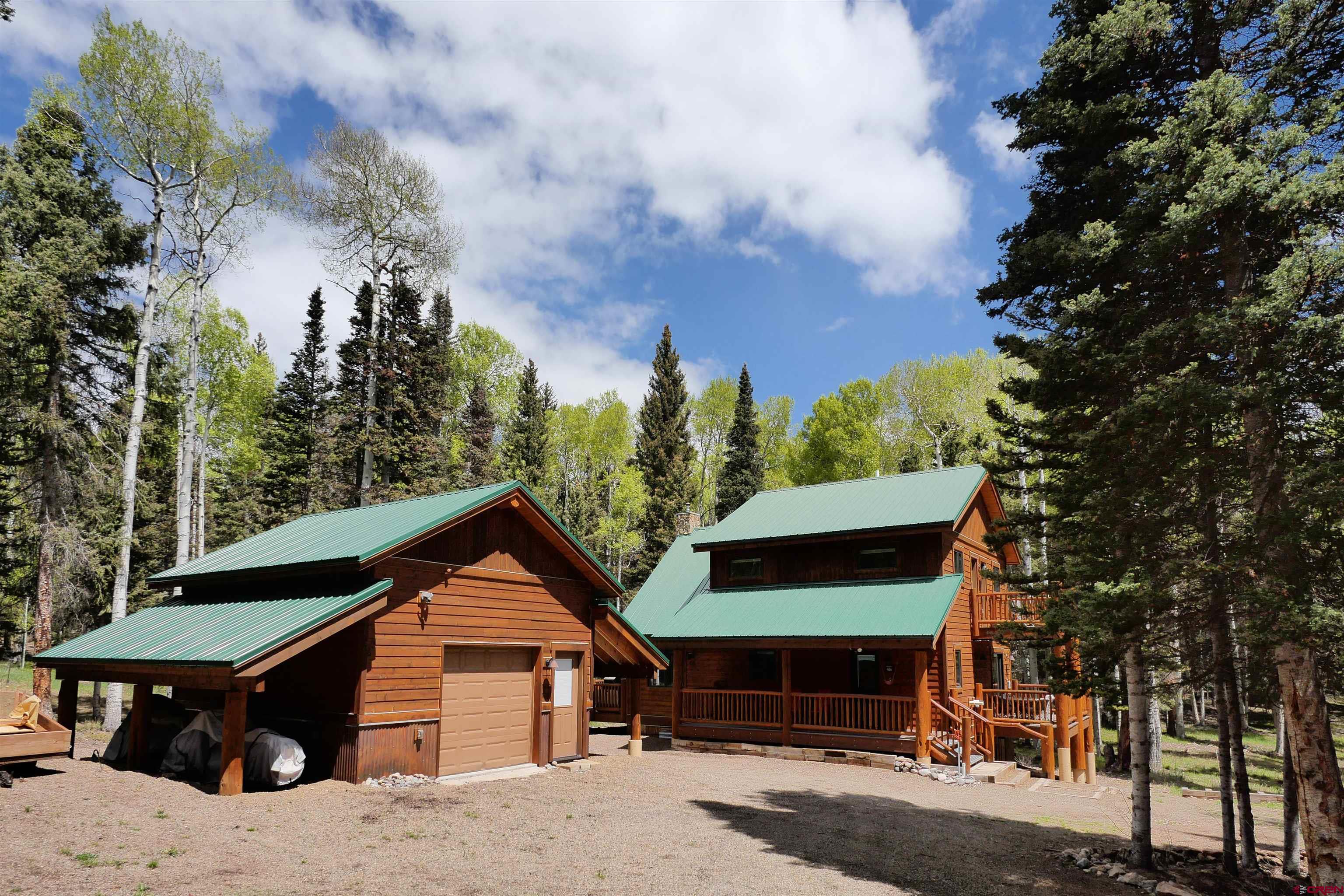 Custom built, fully furnished mountain cabin on a gorgeous one acre parcel located in the Arrowhead Subdivision. Meticulous planning was done by both the owner and builder during the complete rebuild, inside and out, of the original structure in 2012. Main level layout includes an open kitchen, great room with vaulted ceiling and repurposed wooden beams, pellet firebox fireplace with rock surround and large windows looking out to the beautiful wooded landscape. Master bedroom suite with 3/4 bath flows out to a private balcony (doubled joisted and wired for a hot tub). Powder room and mudroom. Upper level features a spacious loft area with custom bookcase and railings, two bedrooms with shared balcony and a full bath. Walk out finished basement includes family room w/built-in bar area, 3/4 bath, laundry room and mechanical room. The large deck, shaded porch and balconies on the exterior offer places to perch among the trees. Quality features include: On-demand hot water heater, in-floor heat, granite countertops, tongue and groove aspen soffits, cold roof, Pella double pane metal chad windows, solid core interior doors, KraftMaid hickory cabinets and custom woodwork throughout. Detached one-car garage with double garage doors for easy in and out access and roofed storage on garage sides are perfect for snowmobile and ATVs. Two neighboring lots are available for separate purchase to ensure privacy. The Arrowhead community offers fishing in 3 private lakes & is close to BLM & Forest Service lands plus Colorado's largest lake, Blue Mesa. Owners and their guest enjoy our local Arrowhead Mountain Lodge for dinning, enjoying a drink at the bar or using their rooms for overflow guests. Although access is year round,winter access is via track vehicles from the community winter parking area to homes in the community. All information is subject to change/error. Buyer is advised to verify all information.