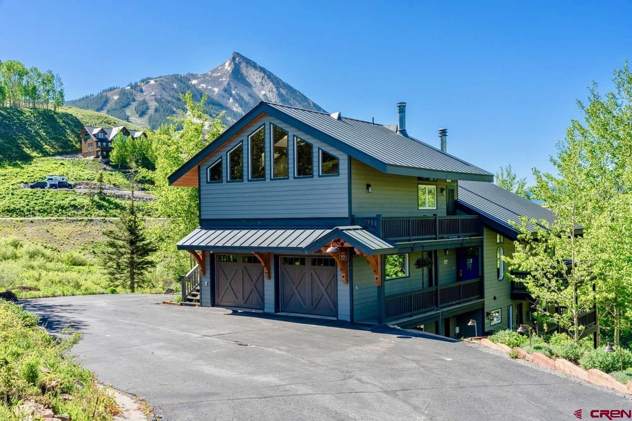 Rare offering on a large 5 bedroom, 4.5 bath, 4,456sft Mt. Crested Butte home with plenty of room for the whole family. Spacious decks off of each of the three floors allows you to take in the breathtaking views of Mt. Crested Butte and Whetstone Mountain. The main living area is perfect for entertaining with an open floor plan, vaulted ceilings, fireplace and large south facing picture windows. You will appreciate the private upstairs master suite with two balconies. Recent upgrades include- kitchen, bathrooms, master bedroom fireplace, all decks completely replaced, large picture windows, carpet, exterior paint, and all new deck doors . Plenty of storage throughout. Large 2-car garage. Great location close to the ski area.
