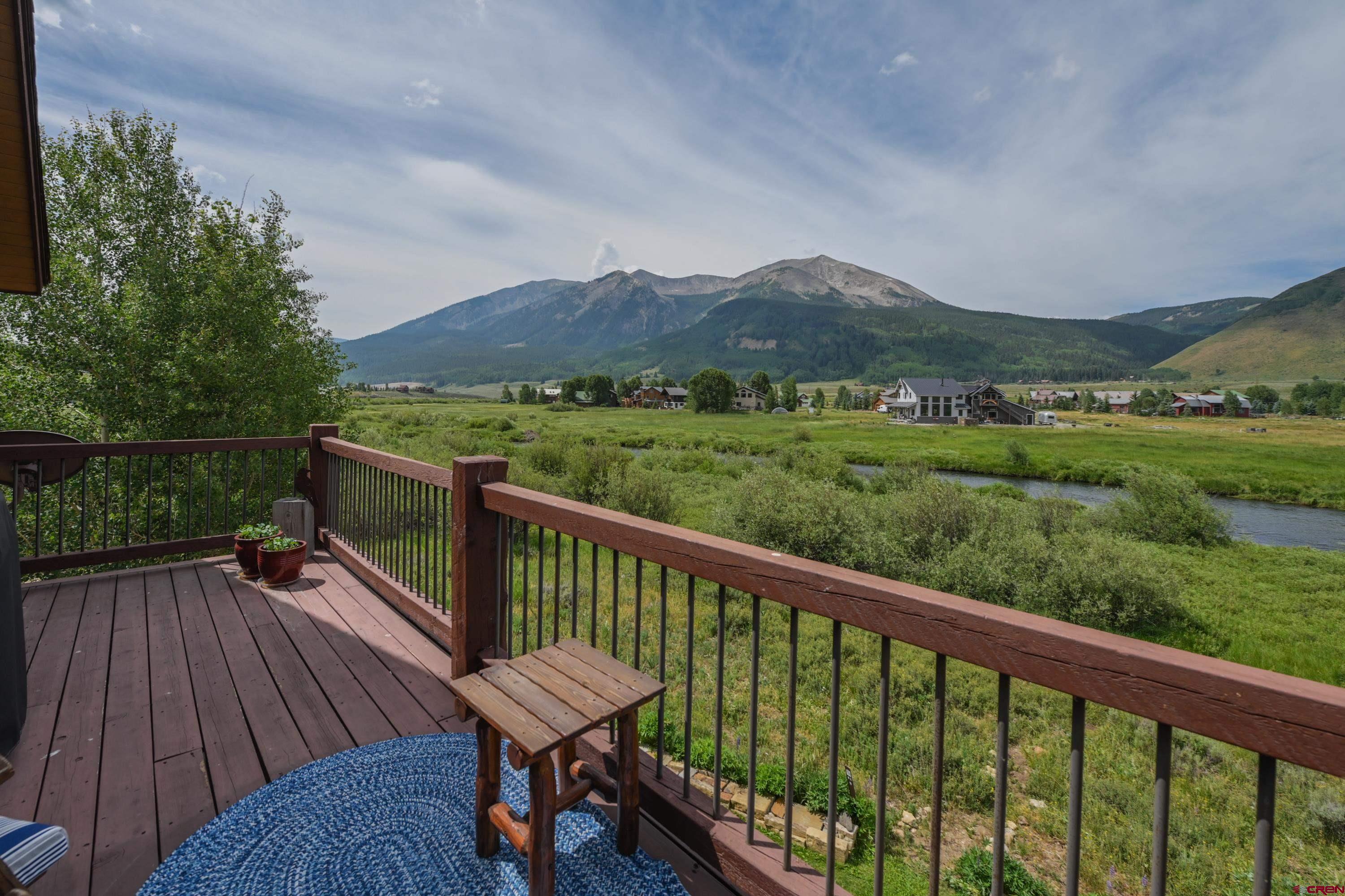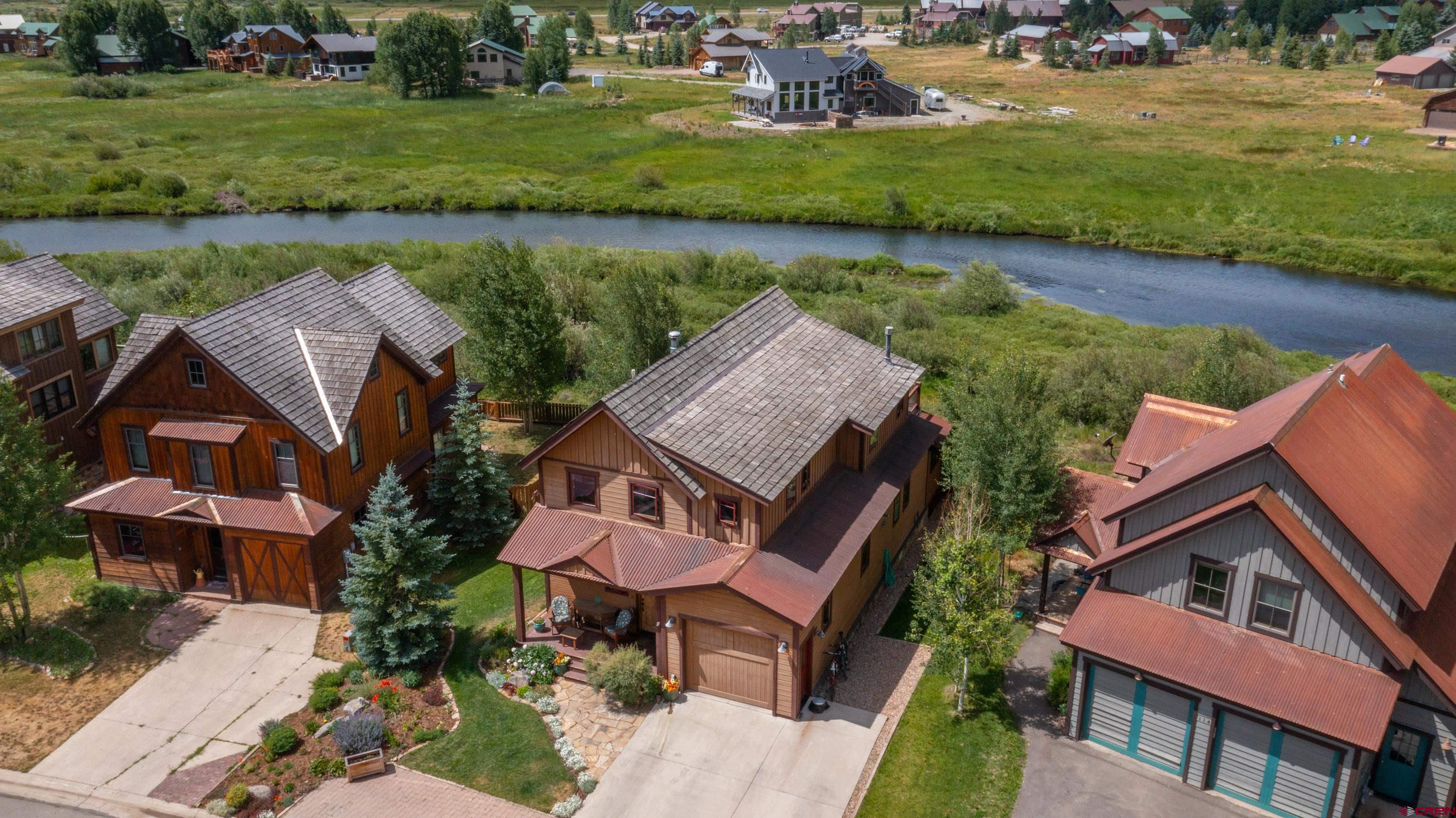 Beautifully crafted home in the desirable Skyland River Neighborhood. Proximity to town, river access and a quiet location make this a very desirable single family home in Crested Butte. The open-air staircase from front entry leads to the elevated second story living room and kitchen with customized office/TV room. Big views from every window on the level with tons of natural light! The deck off the living space overlooks the Slate River and HOA open space. Open kitchen concept allows for a great entertaining space & room for large dining room table. The main level entry is perfect for gear which leads to the three bedrooms with bathroom and laundry room. A primary bedroom features added square footage sitting area and access into the back patio. Custom timber accents with newer flooring. Oversized one car garage is built-out with work benches and storage. Ideal location on quiet street providing two access points to the Slate River. Contact us today for a private tour of this amazing Crested Butte home!