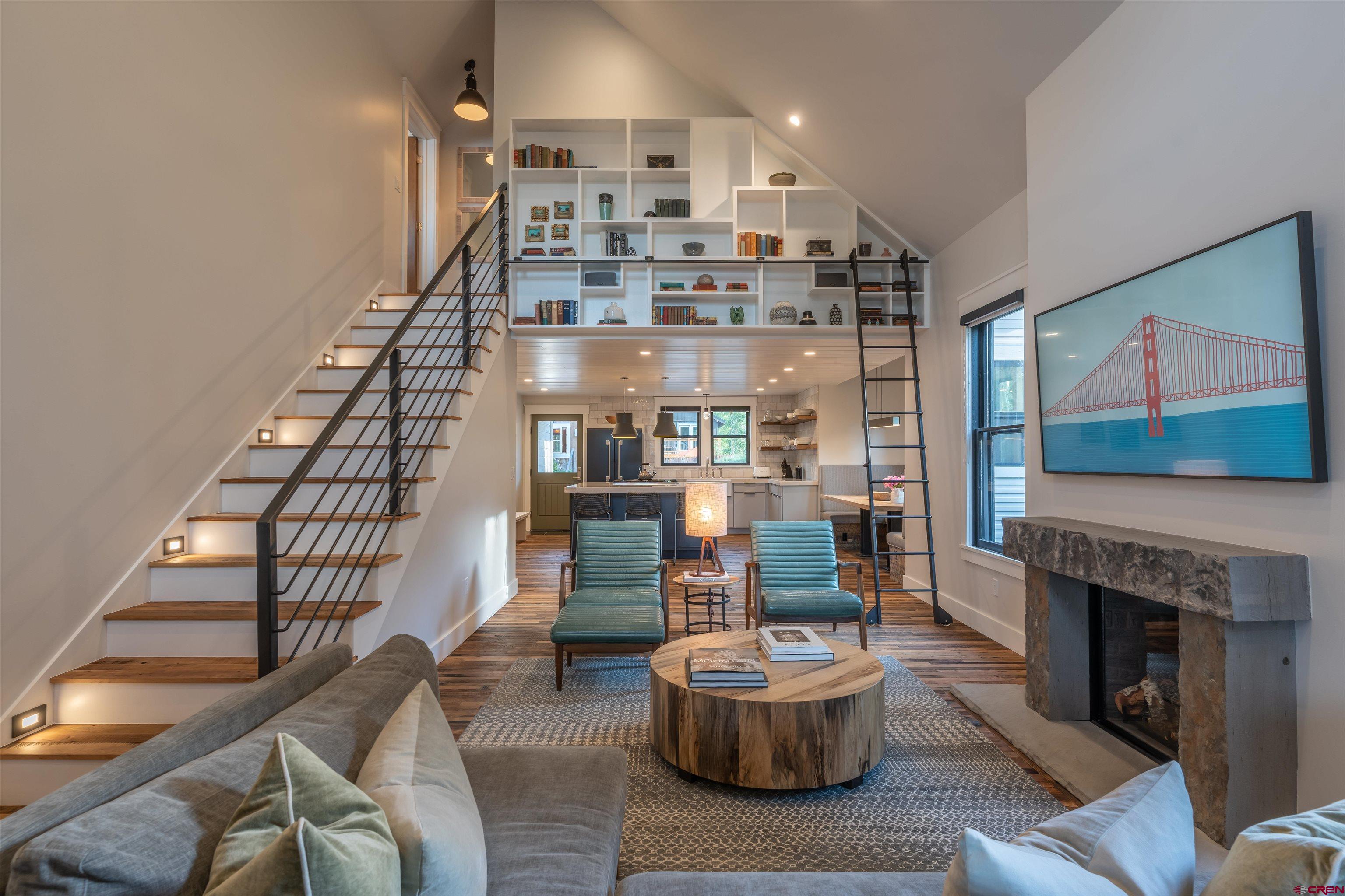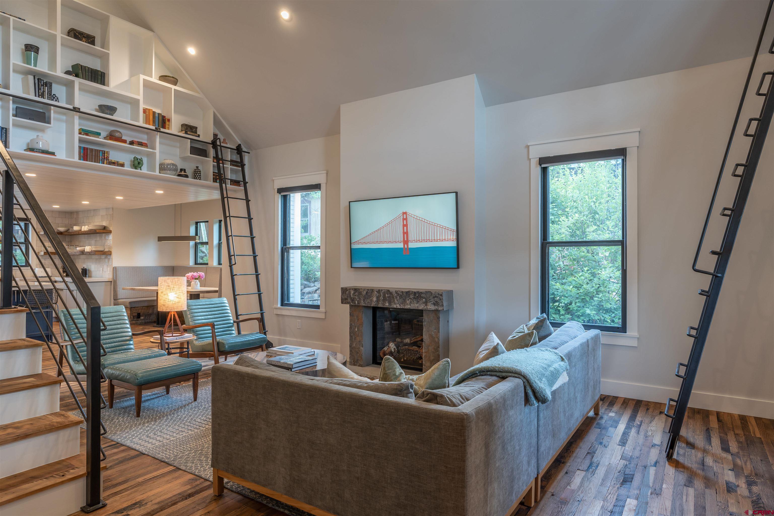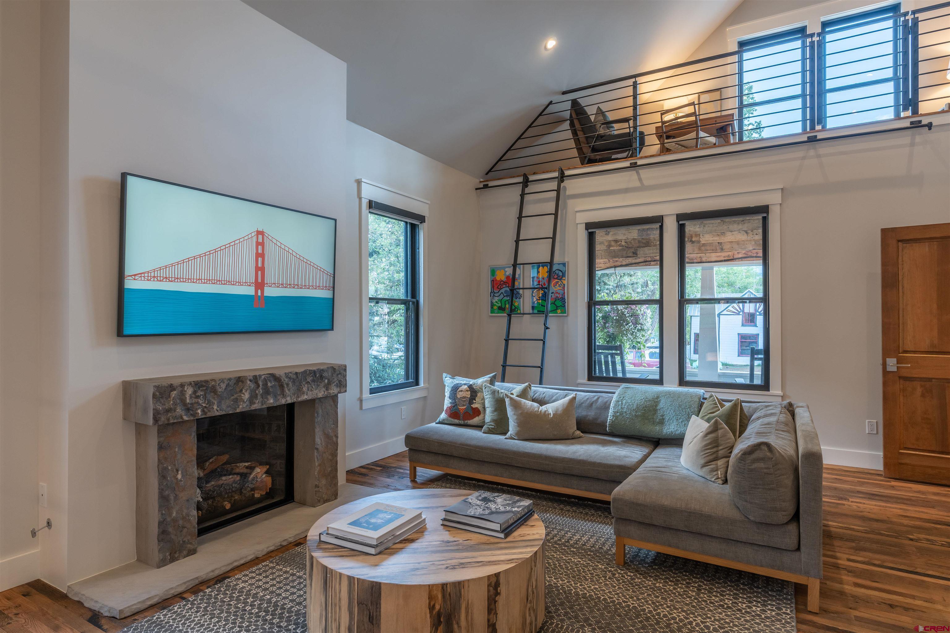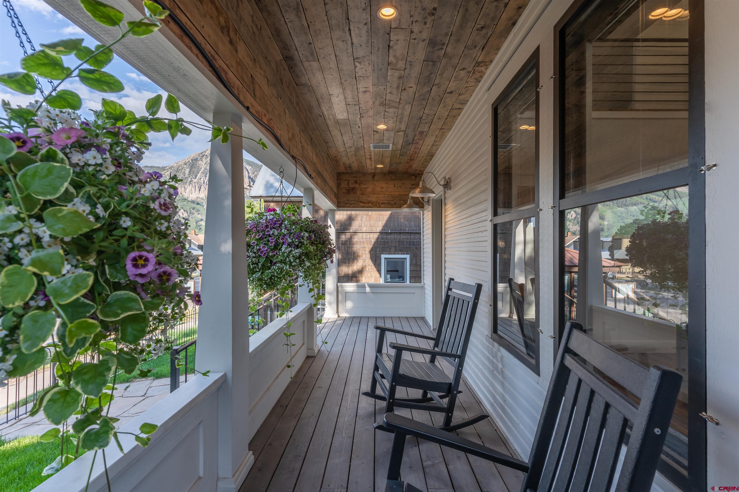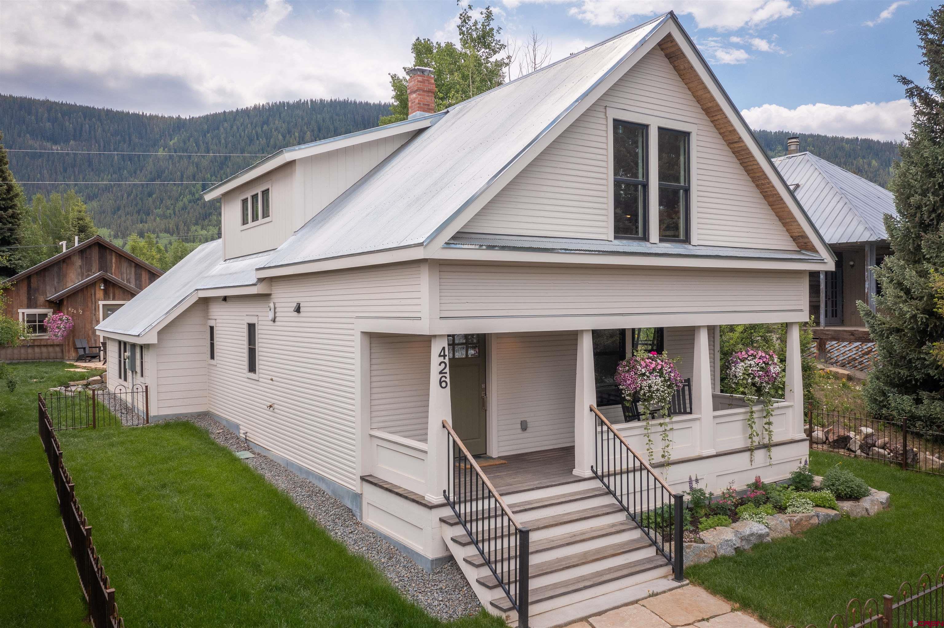426 Elk Avenue is an incredible combination of historical significance, modern brilliance and detailed craftsmanship. Since 1900, this iconic house has witnessed life in the heart of Downtown Crested Butte and has been a centerpiece of the community. The home only recently realized its full potential through a complete and loving renovation; no detail was overlooked in the re-creation. Using Wabi Sabi, a Japanese method that embraces imperfections as the inspiration and method, the builder, owner and interior designer collaborated to create a home that exudes refinement in every detail. It is the perfect combination of mountain luxury and historic charm. The living room showcases the narrow slatted reclaimed Oak flooring, vaulted ceilings welcoming in the beautiful Colorado sunshine and stone surround gas fireplace. The custom bookshelf is a perfect accent to the living room and is complete with a rolling iron ladder. The builder isn't just a builder, he is an artisan and salvaged wood from the renovation to build custom features including the beautiful built-in dining table. The kitchen boasts lunation quartzite slab countertops, custom painted cabinets, stunning black AGA appliances and open shelving made from reclaimed wood. The primary bedroom allows you to relax as soon as you walk in the door thanks to the elegant upholstered accent wall, natural lighting and subtle yet refined furnishings. The first floor bathroom has custom hand painted fired clay tile in the walk-in shower and a floating vanity with hand crafted cement vessel sink. Upstairs, the guest bedroom is equally charming with gorgeous wood beam accents, custom built furniture including floating nightstands and a walk-in closet. The second bathroom includes Belgian Bluestone flooring, a handmade vanity crafted from reclaimed wood, double sinks and hand painted fired clay tile in the shower. Perched above the living room is a spacious loft area that works for extra sleeping space and the perfect work from home location with a great view of Mt. Crested Butte. The owner had the brilliant idea to add a door from the loft into the bathroom for easy access. Enjoy the health and wellness benefits of the hidden infrared sauna and shower with Belgian Bluestone throughout. The exterior features a coveted front porch elevated above Elk Avenue, detailed landscaping, charming iron fence and private flagstone patio in the back. Finally, the newly built accessory dwelling includes one bedroom, one bathroom, cement flooring with in-floor heat and a generous loft. This is your chance to own an iconic piece of Crested Butte history that is brand new and completely turn-key, just bring your clothes, bikes and favorite vintage.