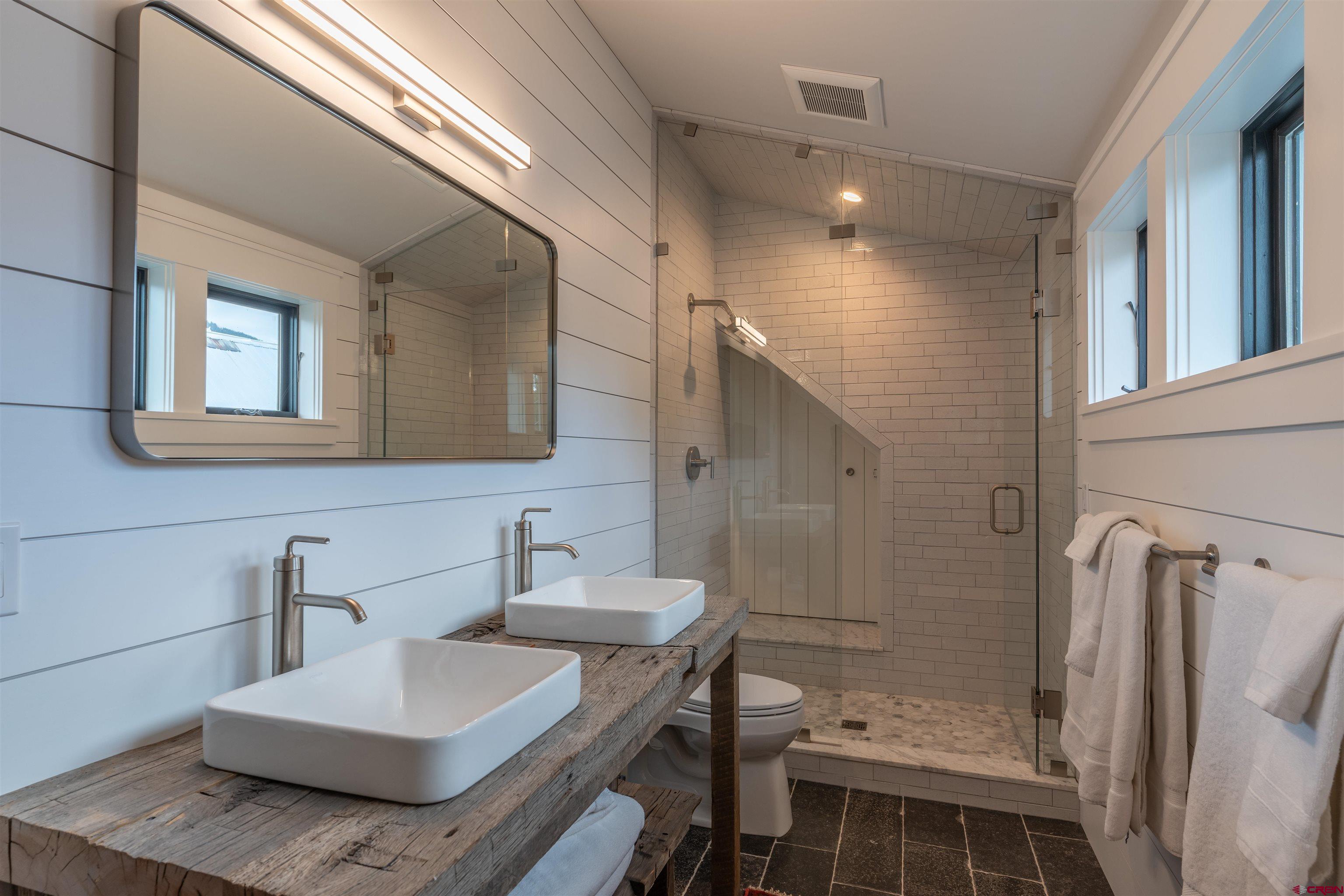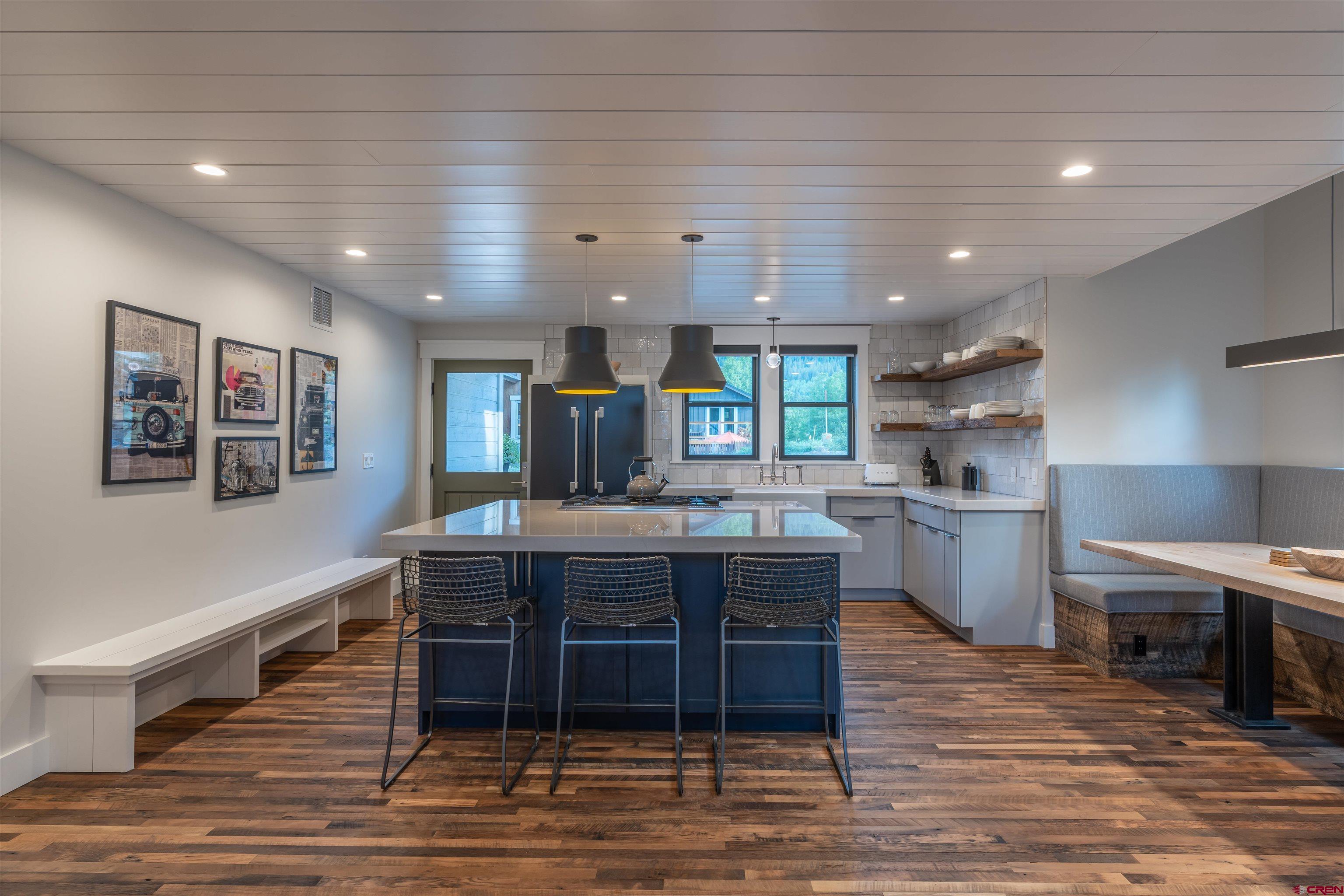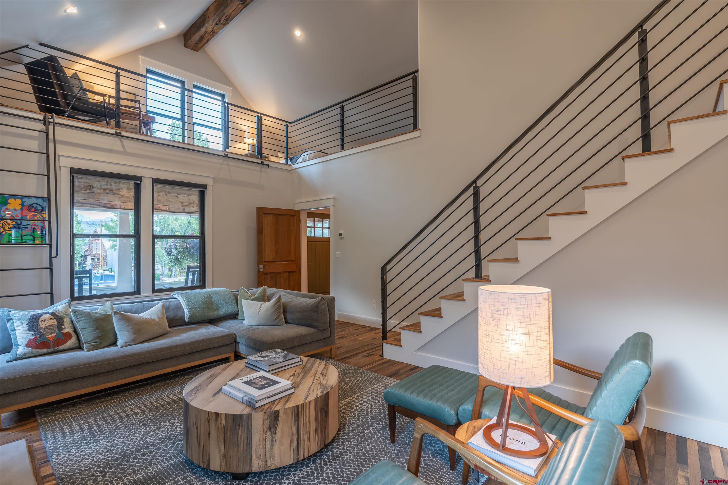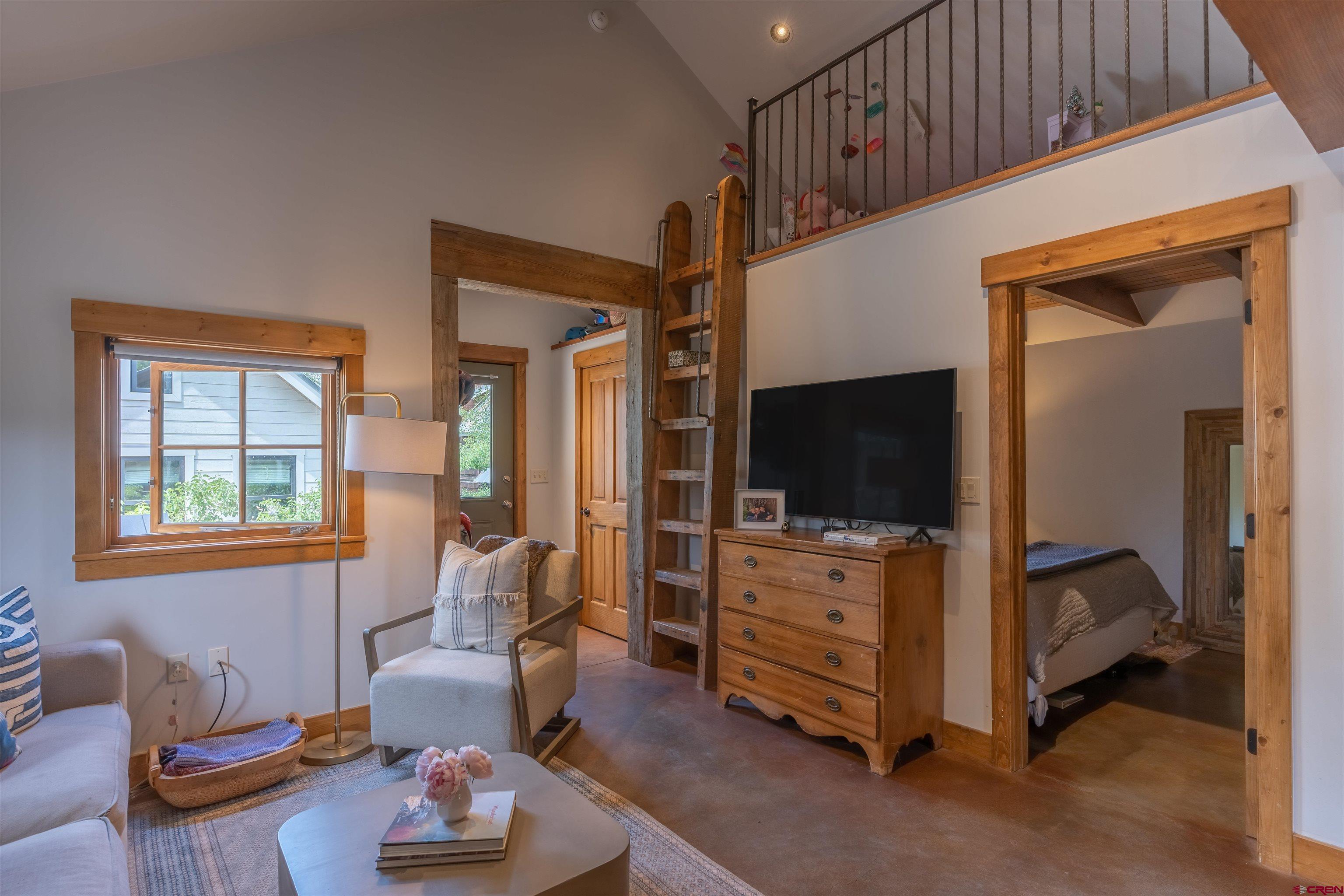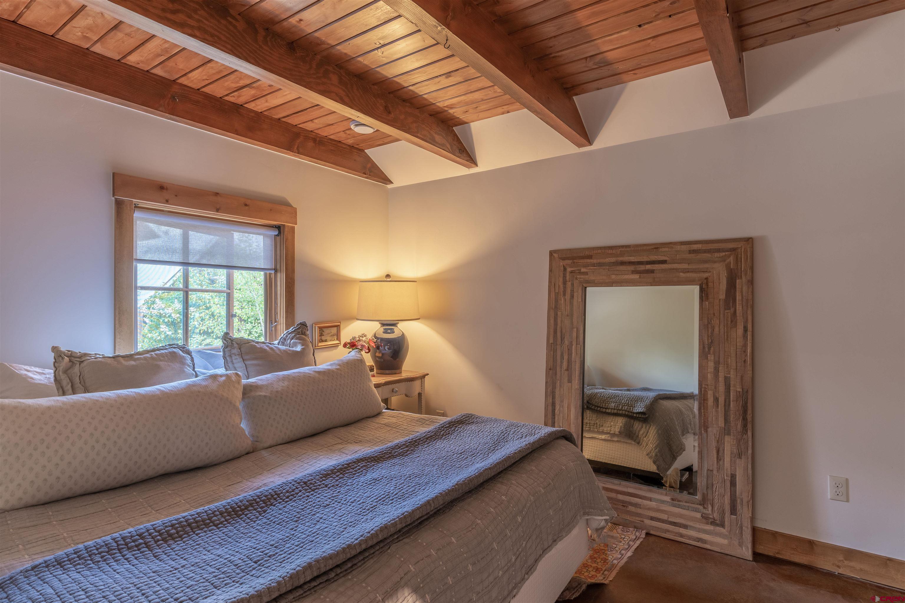 426 Elk Avenue is an incredible combination of historical significance, modern brilliance and detailed craftsmanship. Since 1900, this iconic house has witnessed life in the heart of Downtown Crested Butte and has been a centerpiece of the community. The home only recently realized its full potential through a complete and loving renovation; no detail was overlooked in the re-creation. Using Wabi Sabi, a Japanese method that embraces imperfections as the inspiration and method, the builder, owner and interior designer collaborated to create a home that exudes refinement in every detail. It is the perfect combination of mountain luxury and historic charm. The living room showcases the narrow slatted reclaimed Oak flooring, vaulted ceilings welcoming in the beautiful Colorado sunshine and stone surround gas fireplace. The custom bookshelf is a perfect accent to the living room and is complete with a rolling iron ladder. The builder isn't just a builder, he is an artisan and salvaged wood from the renovation to build custom features including the beautiful built-in dining table. The kitchen boasts lunation quartzite slab countertops, custom painted cabinets, stunning black AGA appliances and open shelving made from reclaimed wood. The primary bedroom allows you to relax as soon as you walk in the door thanks to the elegant upholstered accent wall, natural lighting and subtle yet refined furnishings. The first floor bathroom has custom hand painted fired clay tile in the walk-in shower and a floating vanity with hand crafted cement vessel sink. Upstairs, the guest bedroom is equally charming with gorgeous wood beam accents, custom built furniture including floating nightstands and a walk-in closet. The second bathroom includes Belgian Bluestone flooring, a handmade vanity crafted from reclaimed wood, double sinks and hand painted fired clay tile in the shower. Perched above the living room is a spacious loft area that works for extra sleeping space and the perfect work from home location with a great view of Mt. Crested Butte. The owner had the brilliant idea to add a door from the loft into the bathroom for easy access. Enjoy the health and wellness benefits of the hidden infrared sauna and shower with Belgian Bluestone throughout. The exterior features a coveted front porch elevated above Elk Avenue, detailed landscaping, charming iron fence and private flagstone patio in the back. Finally, the newly built accessory dwelling includes one bedroom, one bathroom, cement flooring with in-floor heat and a generous loft. This is your chance to own an iconic piece of Crested Butte history that is brand new and completely turn-key, just bring your clothes, bikes and favorite vintage.