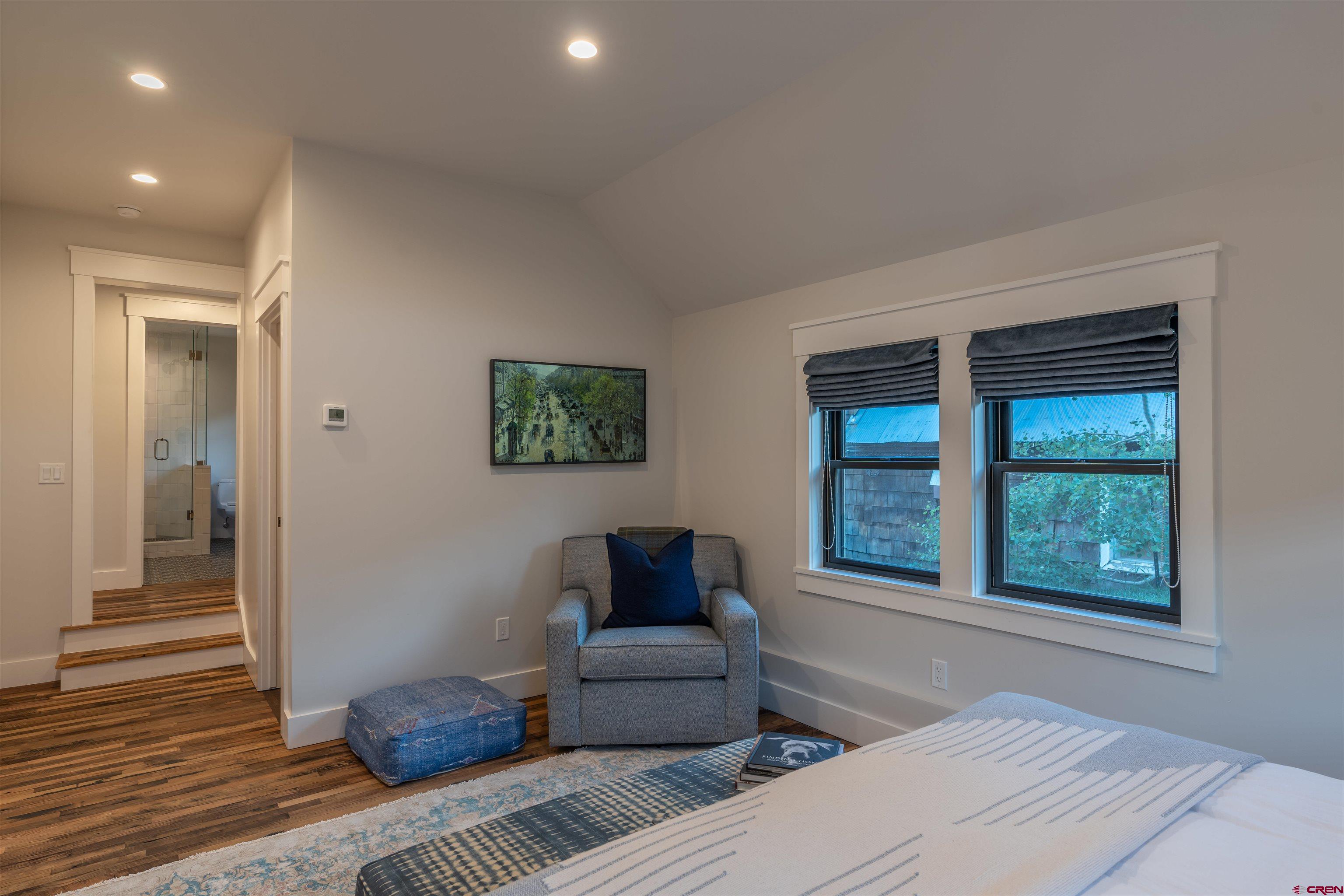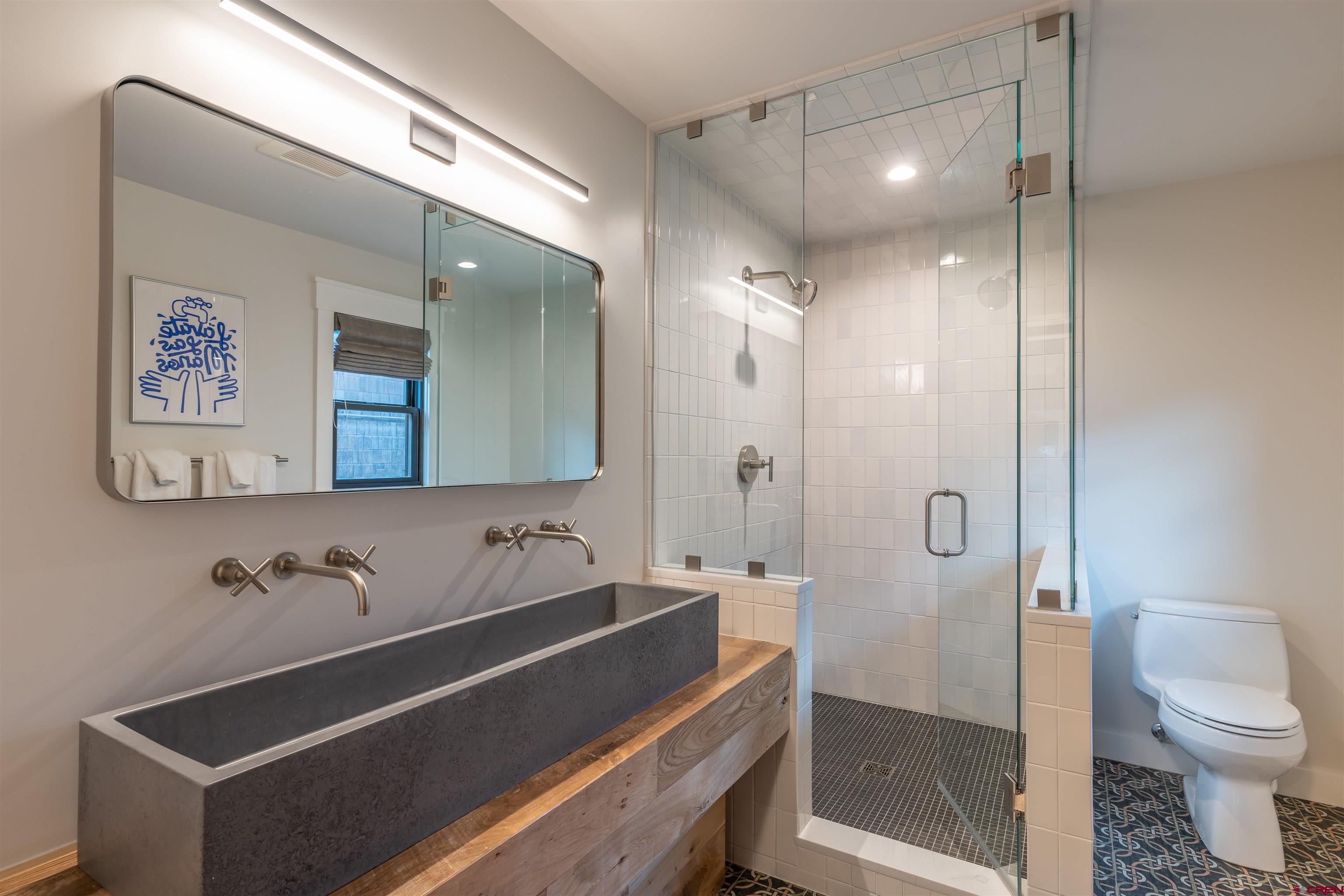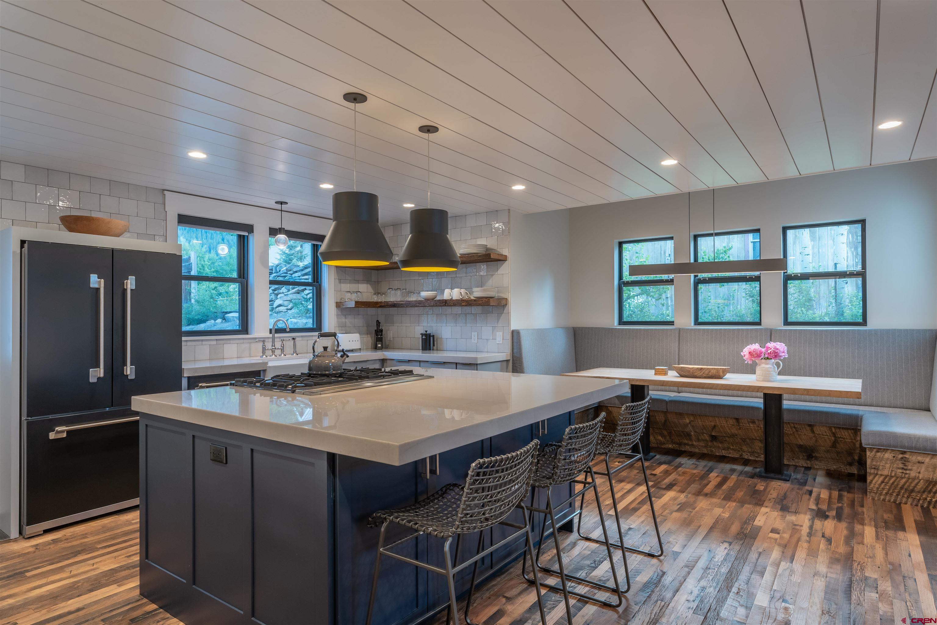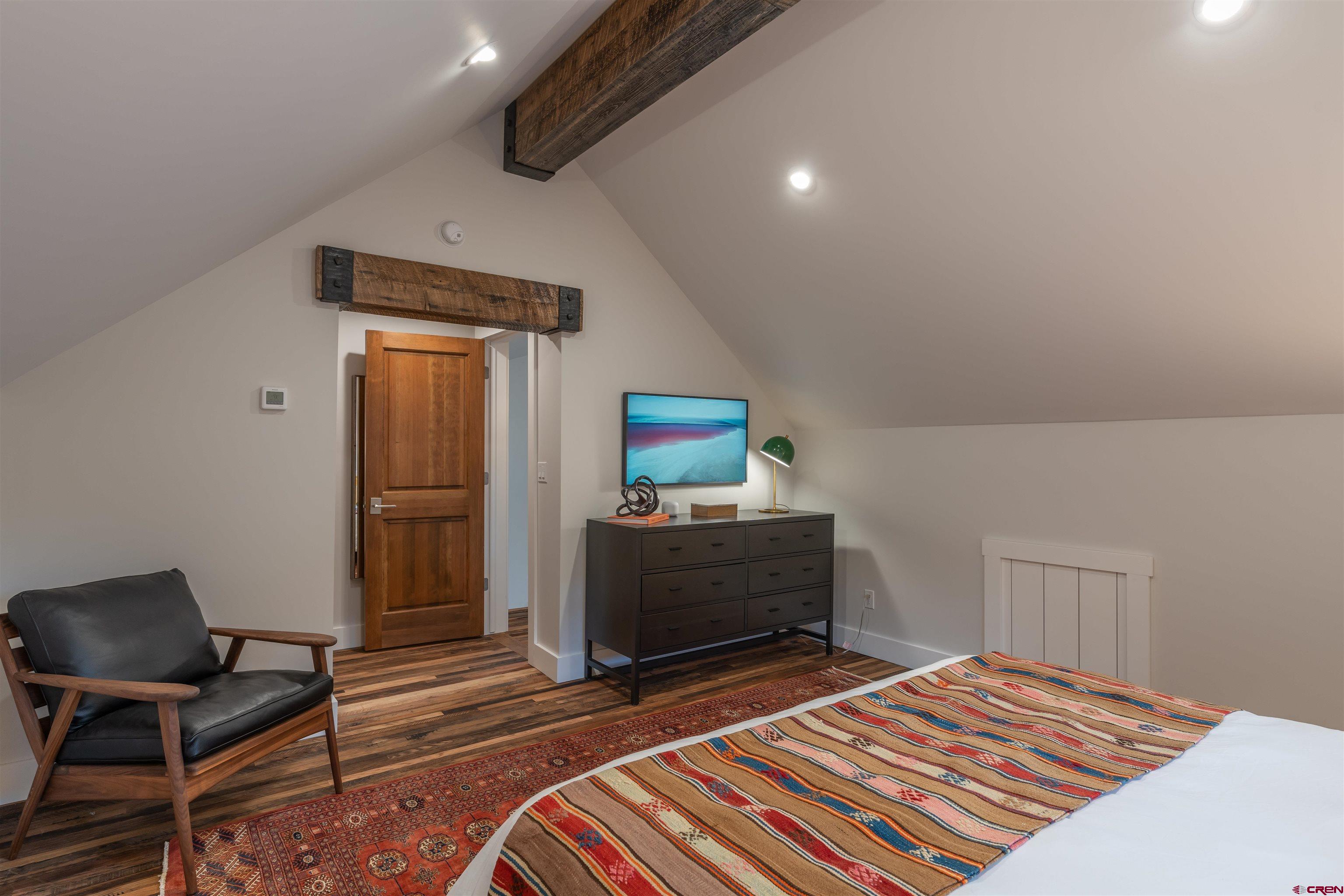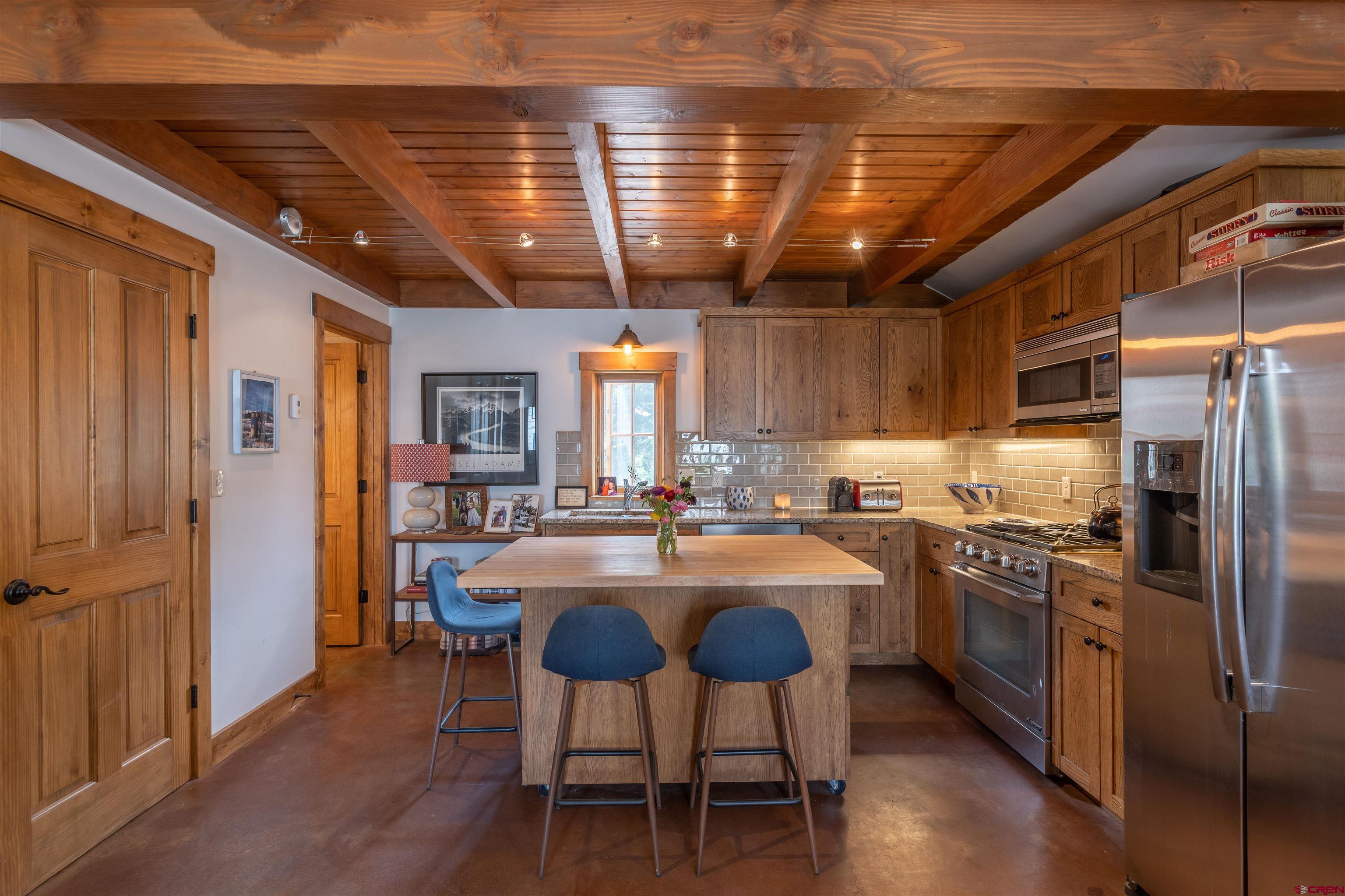 426 Elk Avenue is an incredible combination of historical significance, modern brilliance and detailed craftsmanship. Since 1900, this iconic house has witnessed life in the heart of Downtown Crested Butte and has been a centerpiece of the community. The home only recently realized its full potential through a complete and loving renovation; no detail was overlooked in the re-creation. Using Wabi Sabi, a Japanese method that embraces imperfections as the inspiration and method, the builder, owner and interior designer collaborated to create a home that exudes refinement in every detail. It is the perfect combination of mountain luxury and historic charm. The living room showcases the narrow slatted reclaimed Oak flooring, vaulted ceilings welcoming in the beautiful Colorado sunshine and stone surround gas fireplace. The custom bookshelf is a perfect accent to the living room and is complete with a rolling iron ladder. The builder isn't just a builder, he is an artisan and salvaged wood from the renovation to build custom features including the beautiful built-in dining table. The kitchen boasts lunation quartzite slab countertops, custom painted cabinets, stunning black AGA appliances and open shelving made from reclaimed wood. The primary bedroom allows you to relax as soon as you walk in the door thanks to the elegant upholstered accent wall, natural lighting and subtle yet refined furnishings. The first floor bathroom has custom hand painted fired clay tile in the walk-in shower and a floating vanity with hand crafted cement vessel sink. Upstairs, the guest bedroom is equally charming with gorgeous wood beam accents, custom built furniture including floating nightstands and a walk-in closet. The second bathroom includes Belgian Bluestone flooring, a handmade vanity crafted from reclaimed wood, double sinks and hand painted fired clay tile in the shower. Perched above the living room is a spacious loft area that works for extra sleeping space and the perfect work from home location with a great view of Mt. Crested Butte. The owner had the brilliant idea to add a door from the loft into the bathroom for easy access. Enjoy the health and wellness benefits of the hidden infrared sauna and shower with Belgian Bluestone throughout. The exterior features a coveted front porch elevated above Elk Avenue, detailed landscaping, charming iron fence and private flagstone patio in the back. Finally, the newly built accessory dwelling includes one bedroom, one bathroom, cement flooring with in-floor heat and a generous loft. This is your chance to own an iconic piece of Crested Butte history that is brand new and completely turn-key, just bring your clothes, bikes and favorite vintage.
