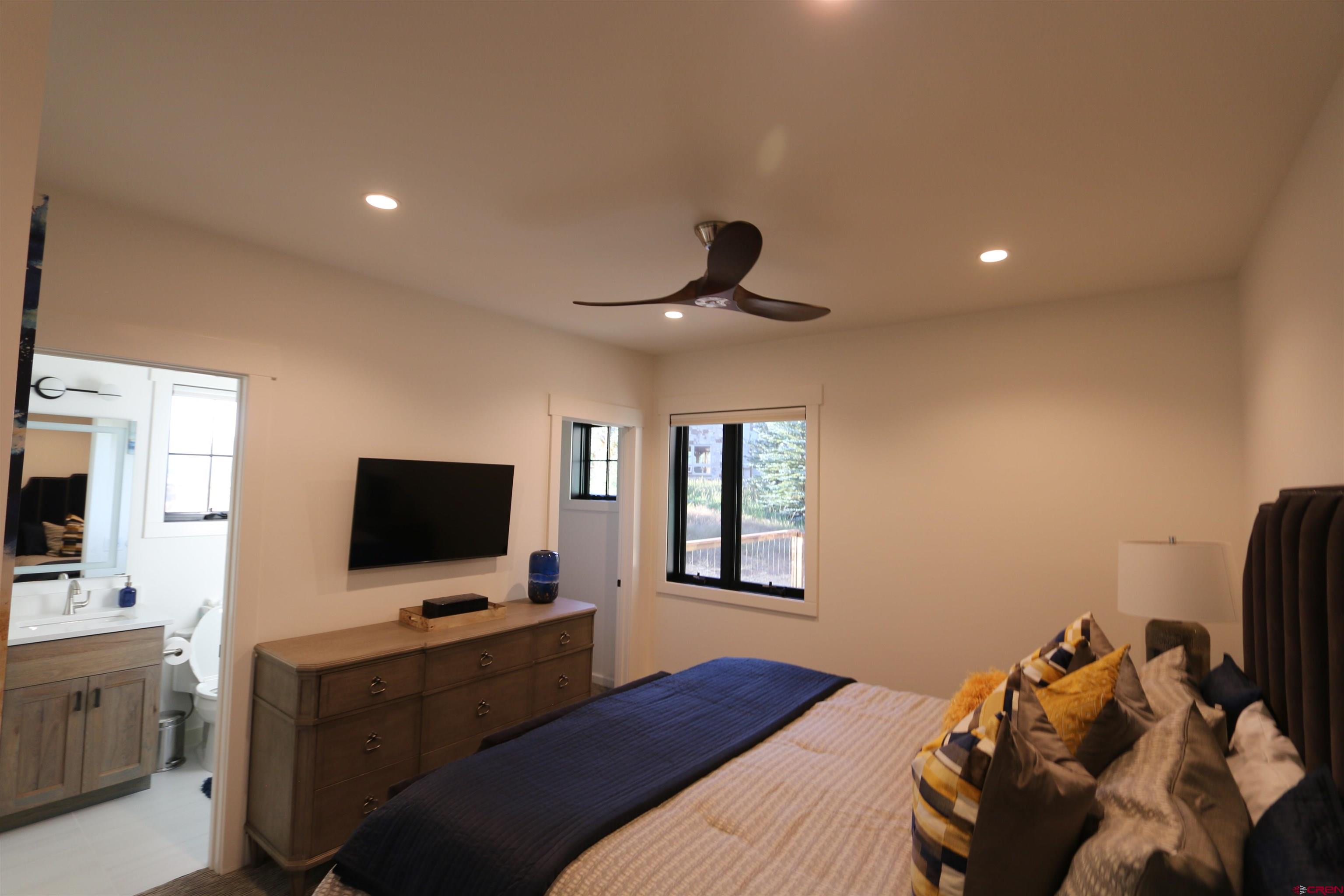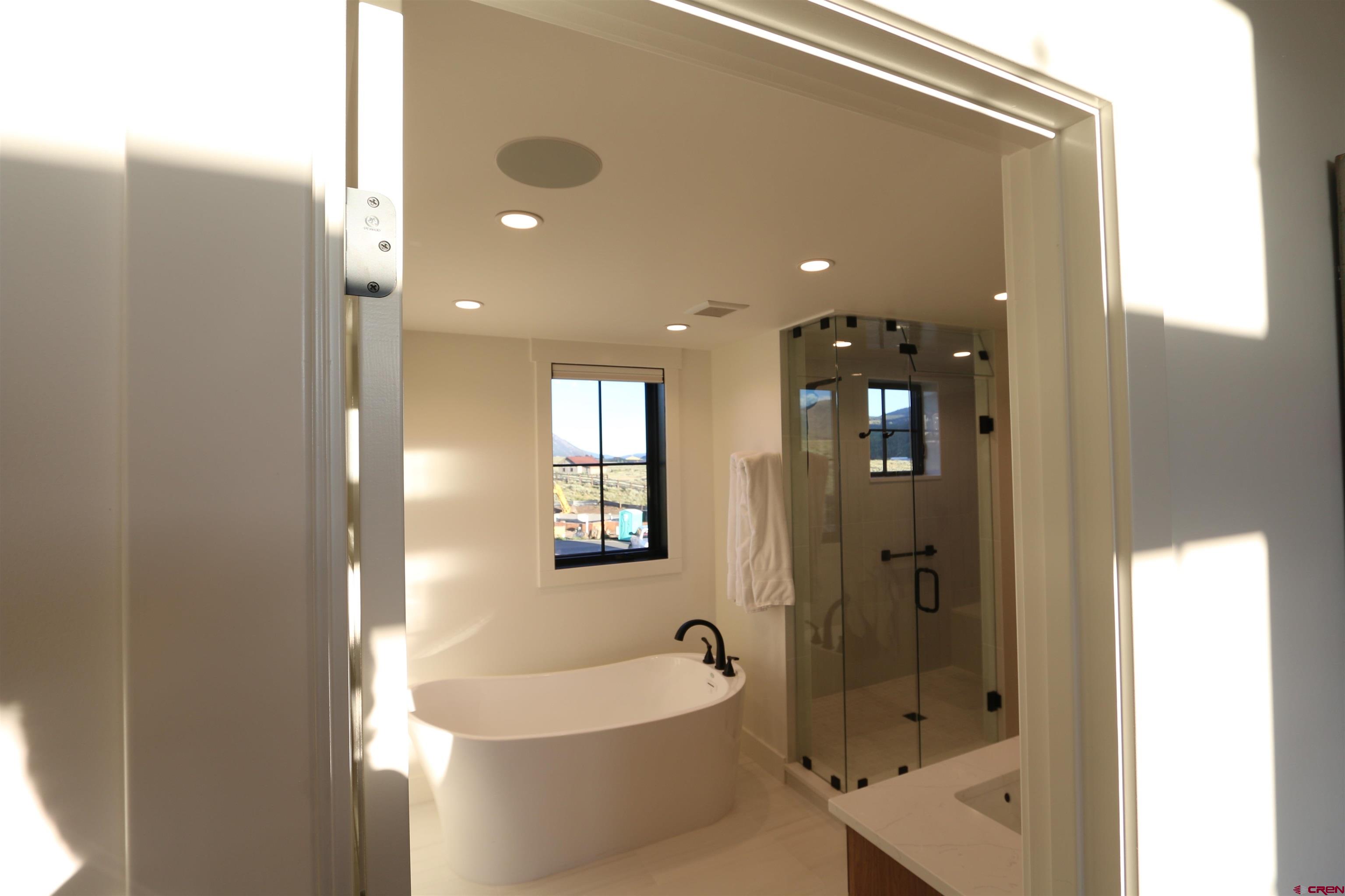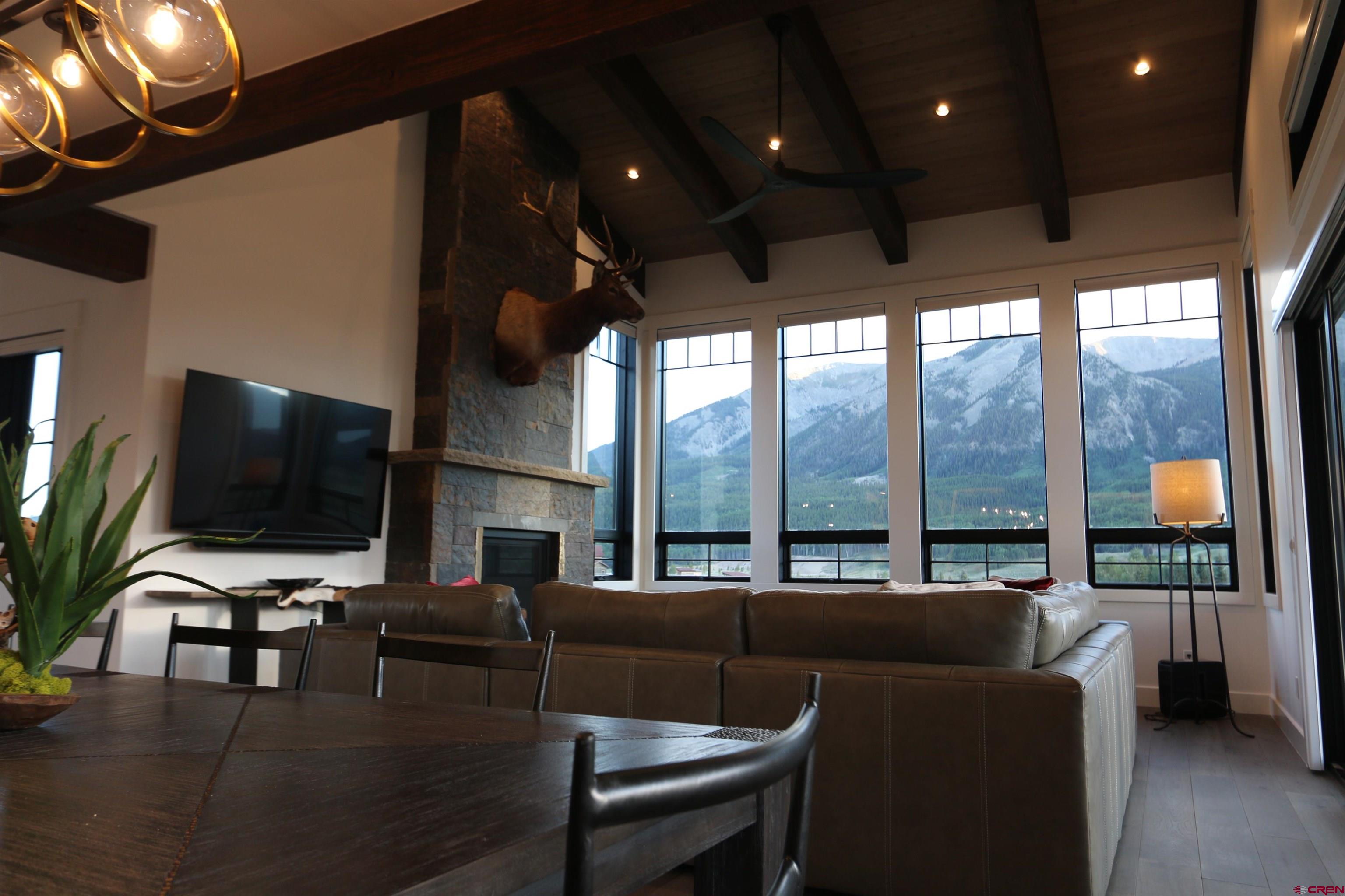 This new, mountain-contemporary home in Skyland is a one-of-a-kind in the Crested Butte market. A 4-bedroom, 3.5-bath that is move-in ready. Designed and built by Crested Butte Construction, “Blue Summit Retreat" offers a very unique design with artistic simplicity and a touch of mountain ski town living. With a 42” custom doorway, the house projects an inviting yet stunning look. Walk into a vaulted entry with warm light fixtures and custom iron railings. Step up the stairs and find yourself gazing at an open floor plan with vaulted ceilings and a brilliantly designed kitchen-dining room concept. With plenty of windows spanning the interior, the house can capture the sun rising over CBMR and give stellar views of each Colorado sunset. Conveniently, all windows are equipped with automatic blinds to provide evening comfort and privacy. The living room receives natural lighting throughout the day and can achieve ambience in the night with a mantled gas fireplace. Blue Summit Retreat offers a large covered porch, giving guests the opportunity to outdoor amenities right outside the glass sliding doors. The Retreat’s kitchen includes an elevated custom wood bar, marble countertops and a Viking cooking range. Step out of the kitchen to find a fitness room, guest bathroom and convenient access to the master suite. The master offers floating his and her vanities, a large tub, double headed shower and walk in closet. Downstairs, guests have three bold bedroom designs to choose from and two bathrooms alike. The downstairs living also offers an entertainment room, giving connection to the downstairs porch and 8-person Diamond hot tub. The first floor also offers access to a heated 3-car garage and a dog run for your loved furry friends. Additional home amenities include 2 independent air-conditioners, professional watering systems for landscaping, and a heated driveway for year round access. Being a simple 25 minutes from Gunnison Regional Airport and a quick 5 to the town of Crested Butte, Blue Summit is perfect for all outdoor activities, such as hiking, biking, skiing, golfing, and plenty more. This property offers fun for all and gives you a chance to have your own vacation paradise.