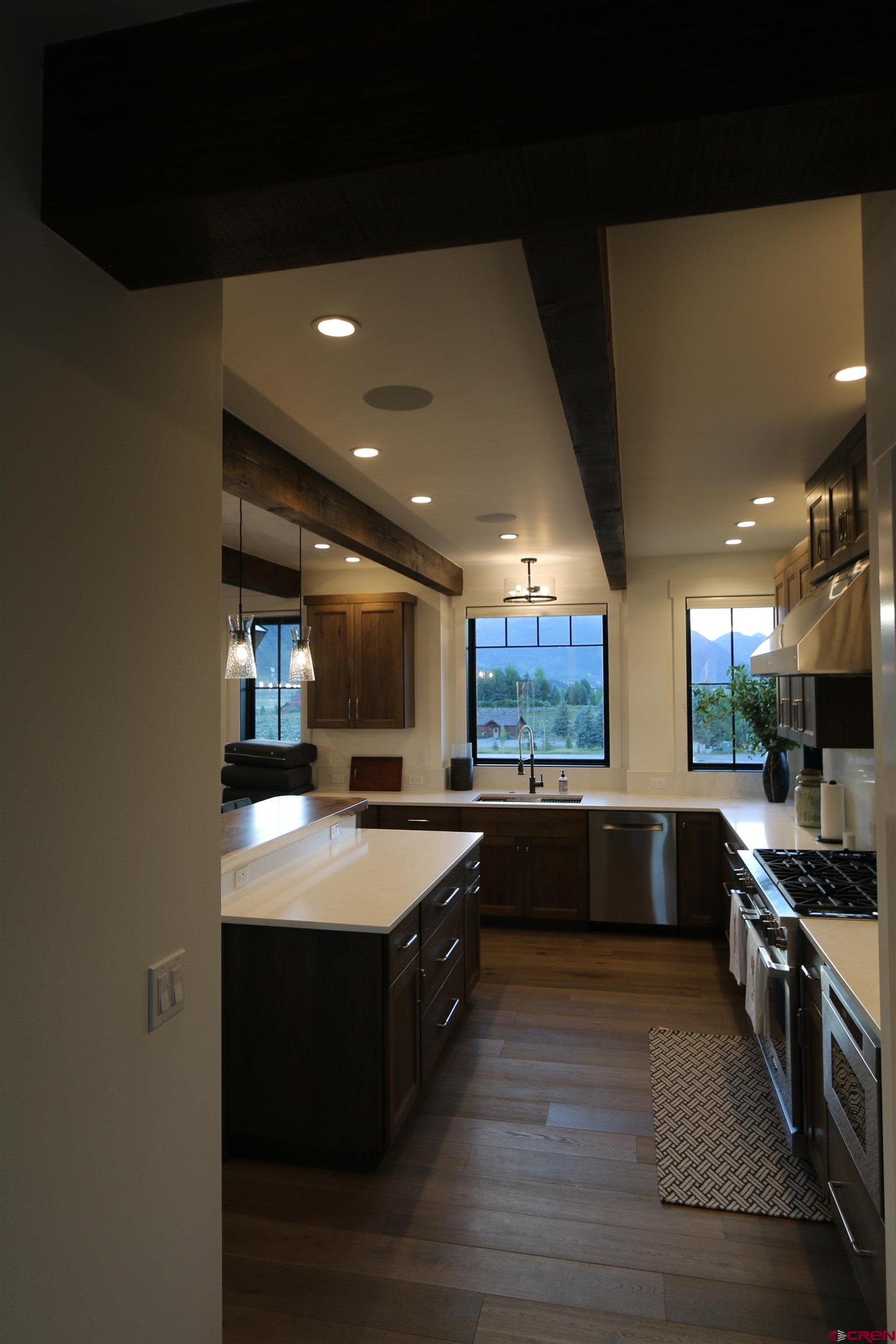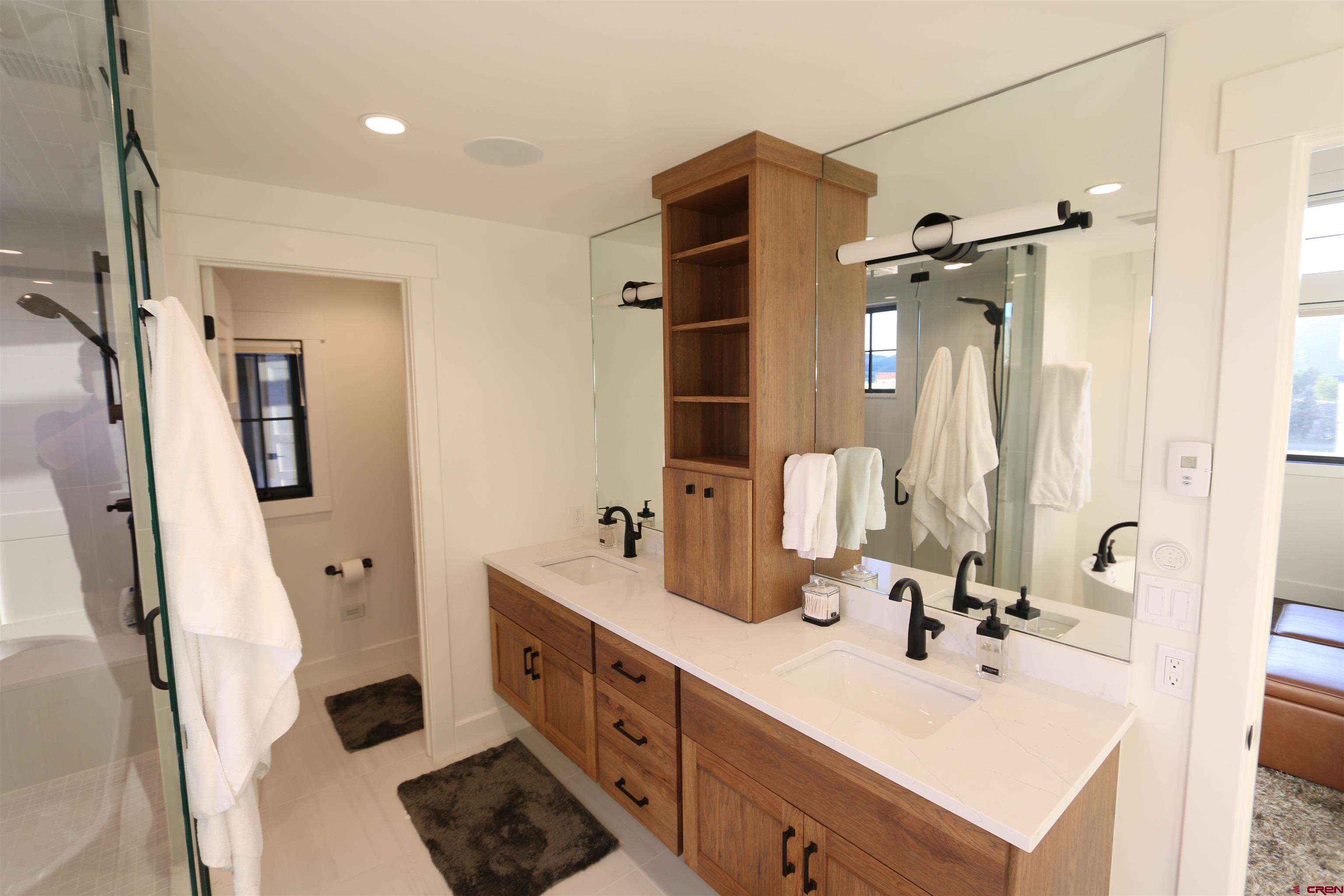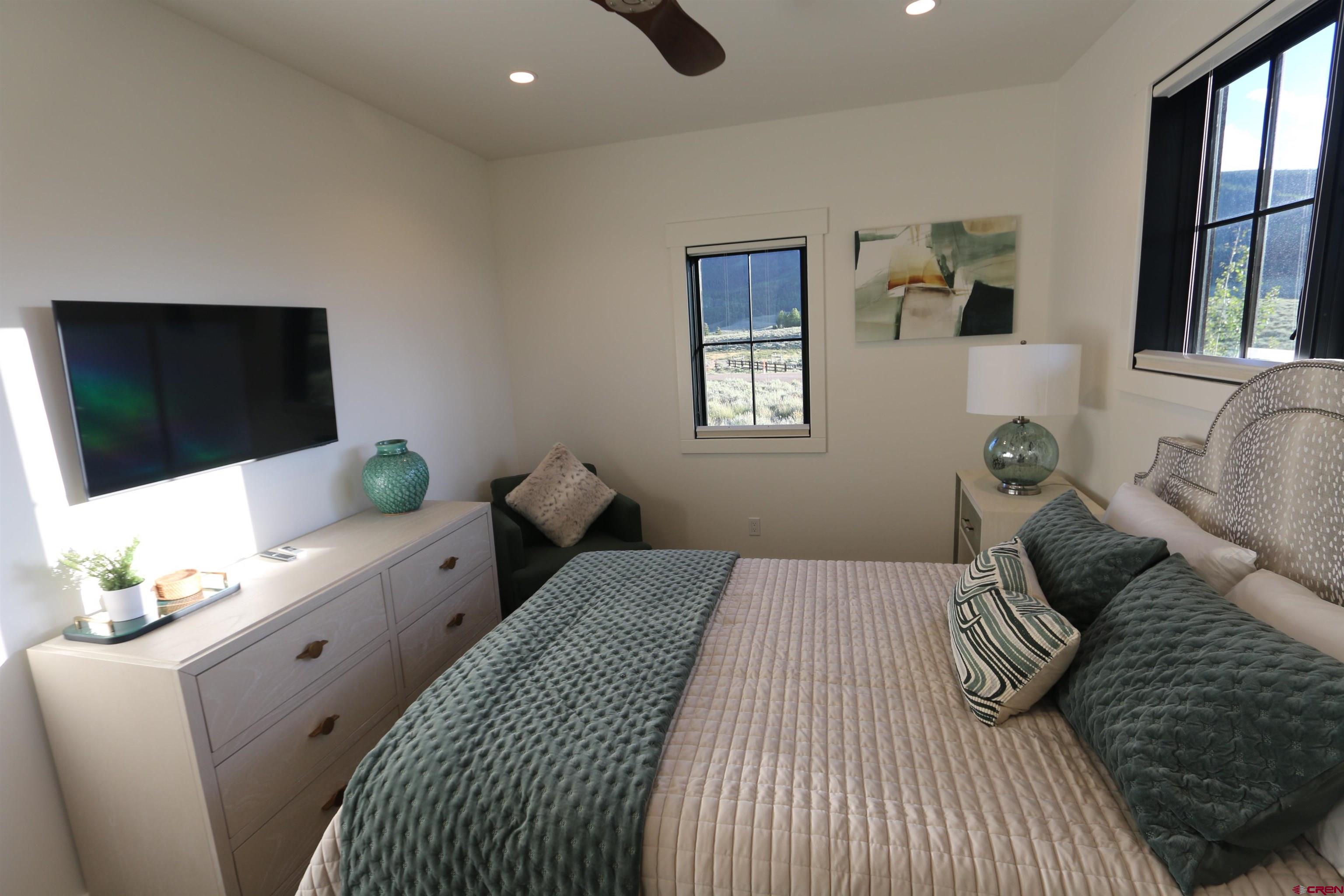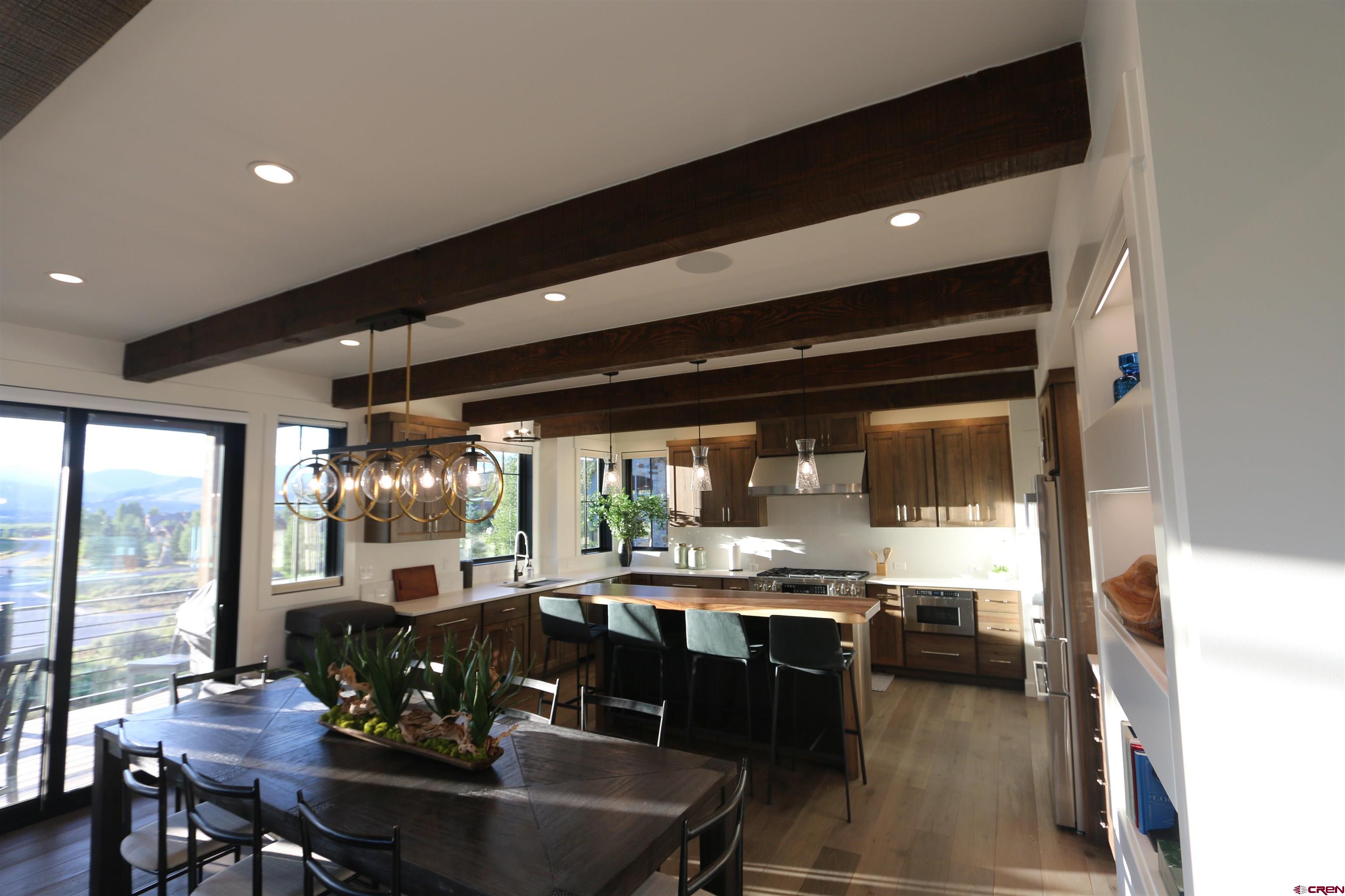 This new, mountain-contemporary home in Skyland is a one-of-a-kind in the Crested Butte market. A 4-bedroom, 3.5-bath that is move-in ready. Designed and built by Crested Butte Construction, “Blue Summit Retreat" offers a very unique design with artistic simplicity and a touch of mountain ski town living. With a 42” custom doorway, the house projects an inviting yet stunning look. Walk into a vaulted entry with warm light fixtures and custom iron railings. Step up the stairs and find yourself gazing at an open floor plan with vaulted ceilings and a brilliantly designed kitchen-dining room concept. With plenty of windows spanning the interior, the house can capture the sun rising over CBMR and give stellar views of each Colorado sunset. Conveniently, all windows are equipped with automatic blinds to provide evening comfort and privacy. The living room receives natural lighting throughout the day and can achieve ambience in the night with a mantled gas fireplace. Blue Summit Retreat offers a large covered porch, giving guests the opportunity to outdoor amenities right outside the glass sliding doors. The Retreat’s kitchen includes an elevated custom wood bar, marble countertops and a Viking cooking range. Step out of the kitchen to find a fitness room, guest bathroom and convenient access to the master suite. The master offers floating his and her vanities, a large tub, double headed shower and walk in closet. Downstairs, guests have three bold bedroom designs to choose from and two bathrooms alike. The downstairs living also offers an entertainment room, giving connection to the downstairs porch and 8-person Diamond hot tub. The first floor also offers access to a heated 3-car garage and a dog run for your loved furry friends. Additional home amenities include 2 independent air-conditioners, professional watering systems for landscaping, and a heated driveway for year round access. Being a simple 25 minutes from Gunnison Regional Airport and a quick 5 to the town of Crested Butte, Blue Summit is perfect for all outdoor activities, such as hiking, biking, skiing, golfing, and plenty more. This property offers fun for all and gives you a chance to have your own vacation paradise.