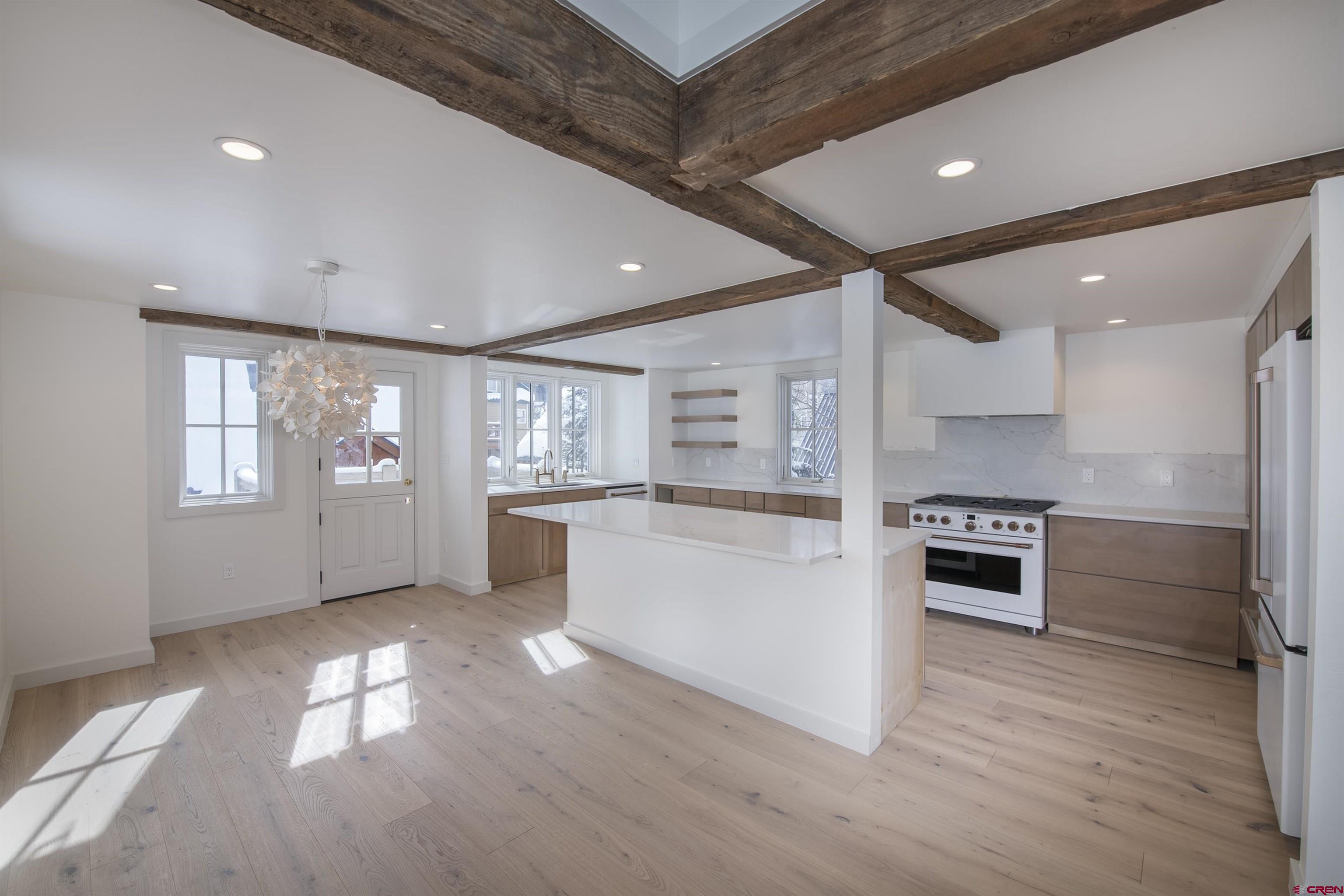 Situated on a spacious corner lot on the serene south-east side of town, this remarkable single-family home offers an unparalleled living experience. Spanning 2,538 square feet, the residence includes 4 bedrooms and 3.5 bathrooms, providing ample space for both comfortable living and entertaining. Recently renovated with meticulous attention to detail, the property exudes contemporary luxury and functionality. The third-floor primary suite offers a spacious and inviting private retreat, complete with a custom closet, steam shower, and oversized soaking tub. Additionally, there are multiple long-term storage nooks on the top floor. Featuring vaulted ceilings, the main living area comprises two separate living spaces that offer expansive and unobstructed views of Mt. Crested Butte. The kitchen will be equipped with a GE Cafe 36” gas 6-burner range oven, exhaust vent hood, and a full suite of other GE Cafe appliances. Outside, the southern-facing back deck provides an ideal space for outdoor gatherings and relaxation through a Dutch door. On the first floor, you'll find the remaining 3 bedrooms and 2 full bathrooms. Each bedroom has built-in drawers and closet space, while the bathrooms feature custom tilework and ample additional storage. Completing the property, a single-car, 504-square-foot detached garage with a finished loft adds both storage and extra usable space. Don't miss out on the opportunity to own this stunning mountain home. Contact us today to arrange a private viewing