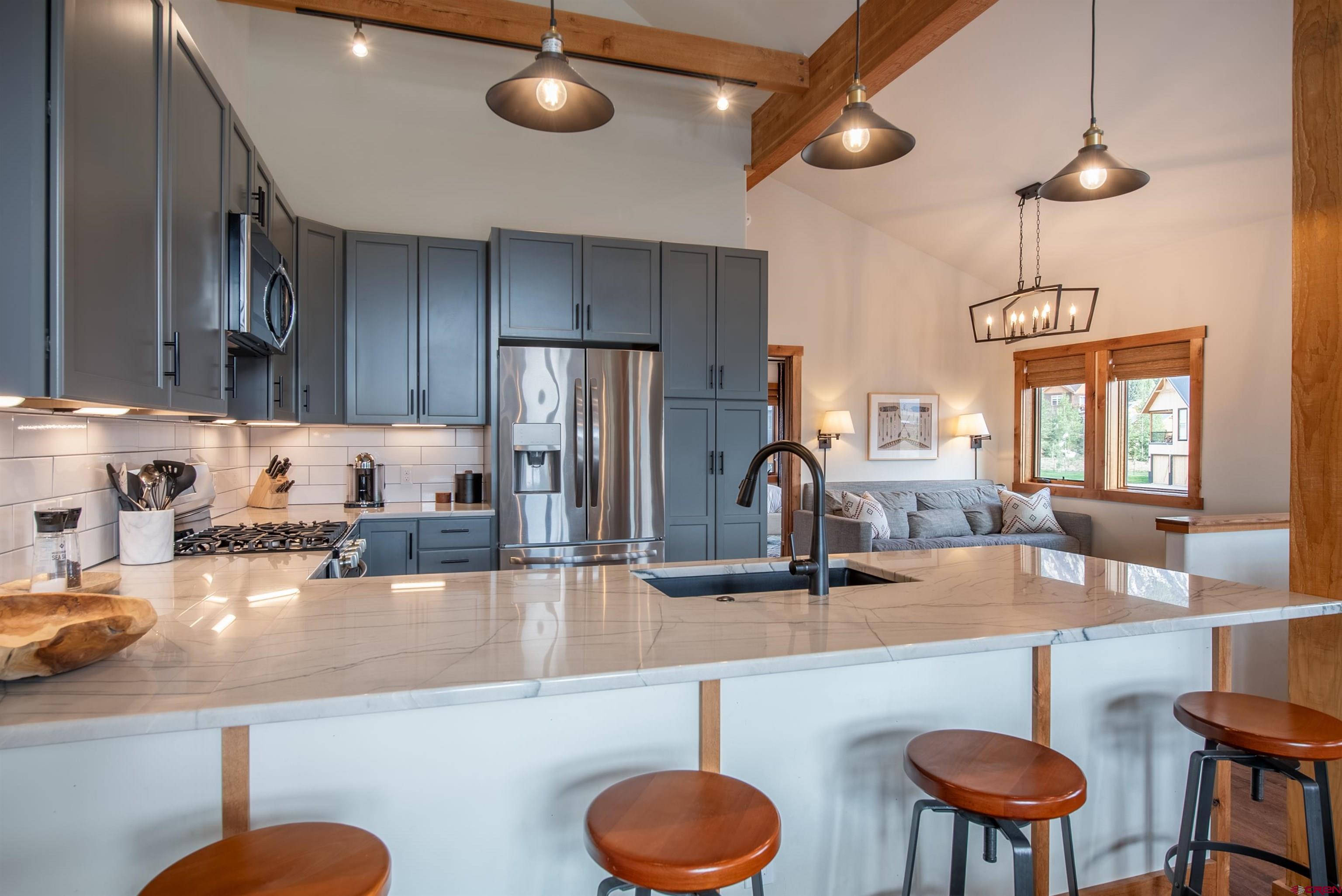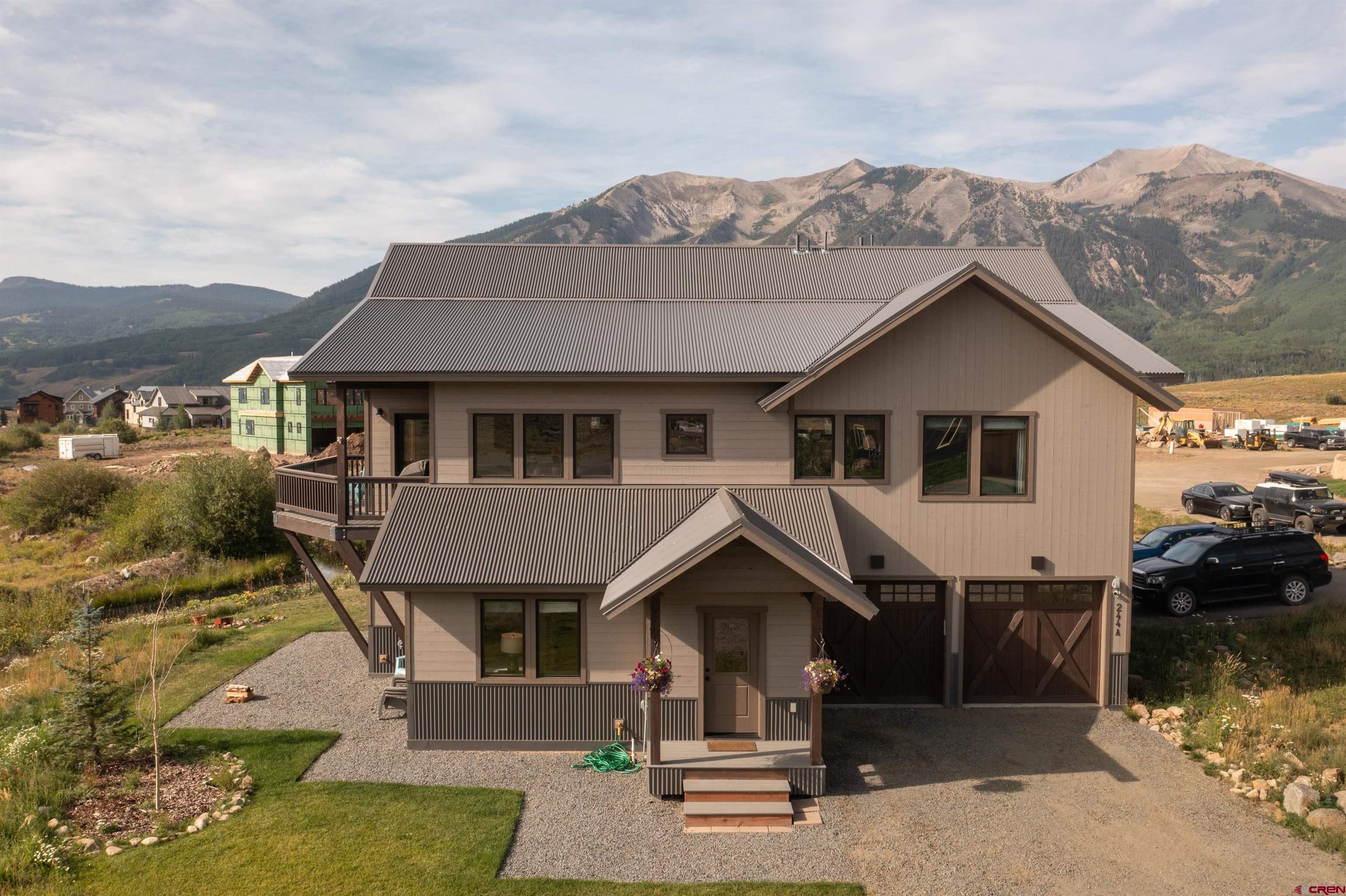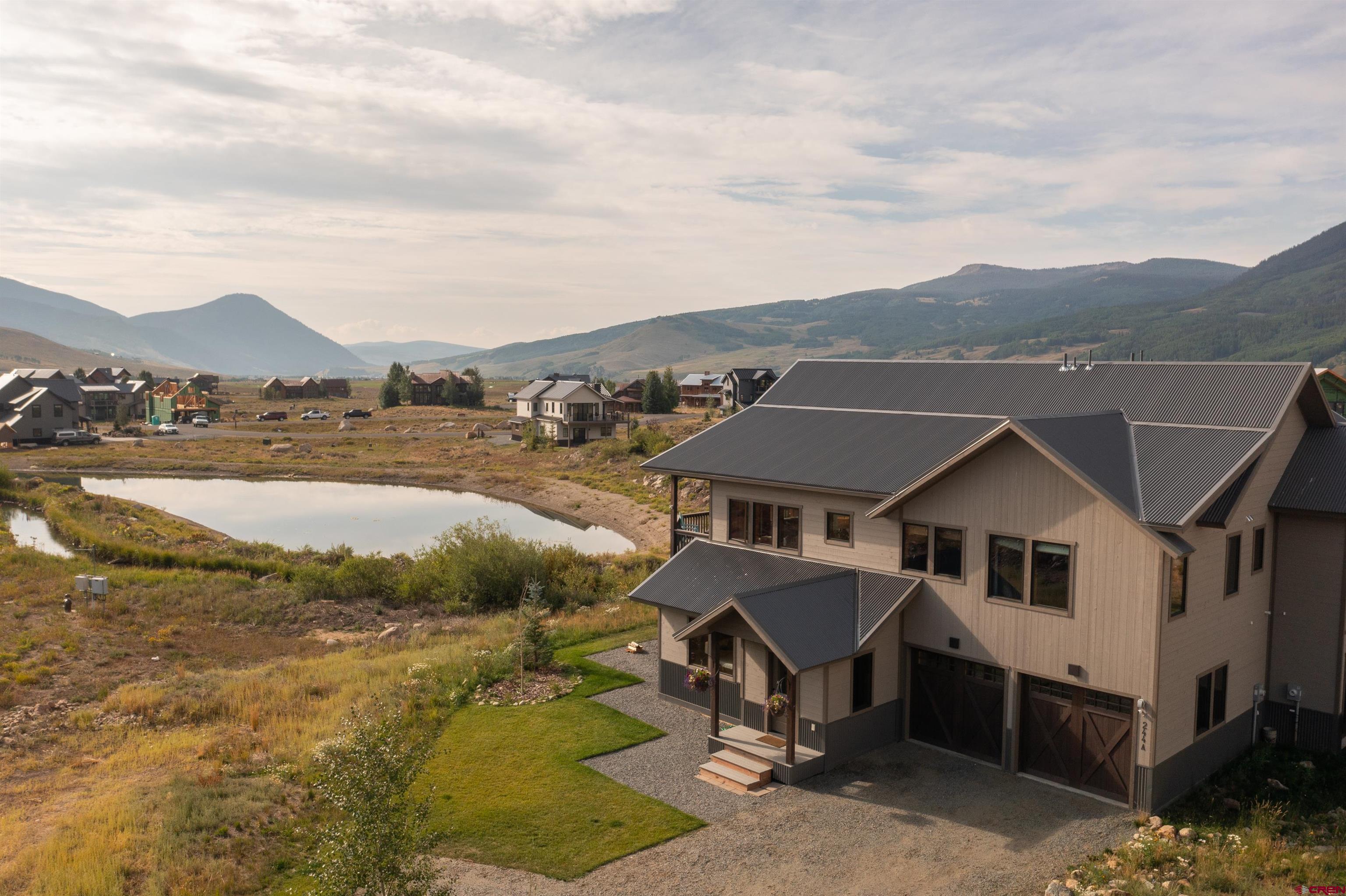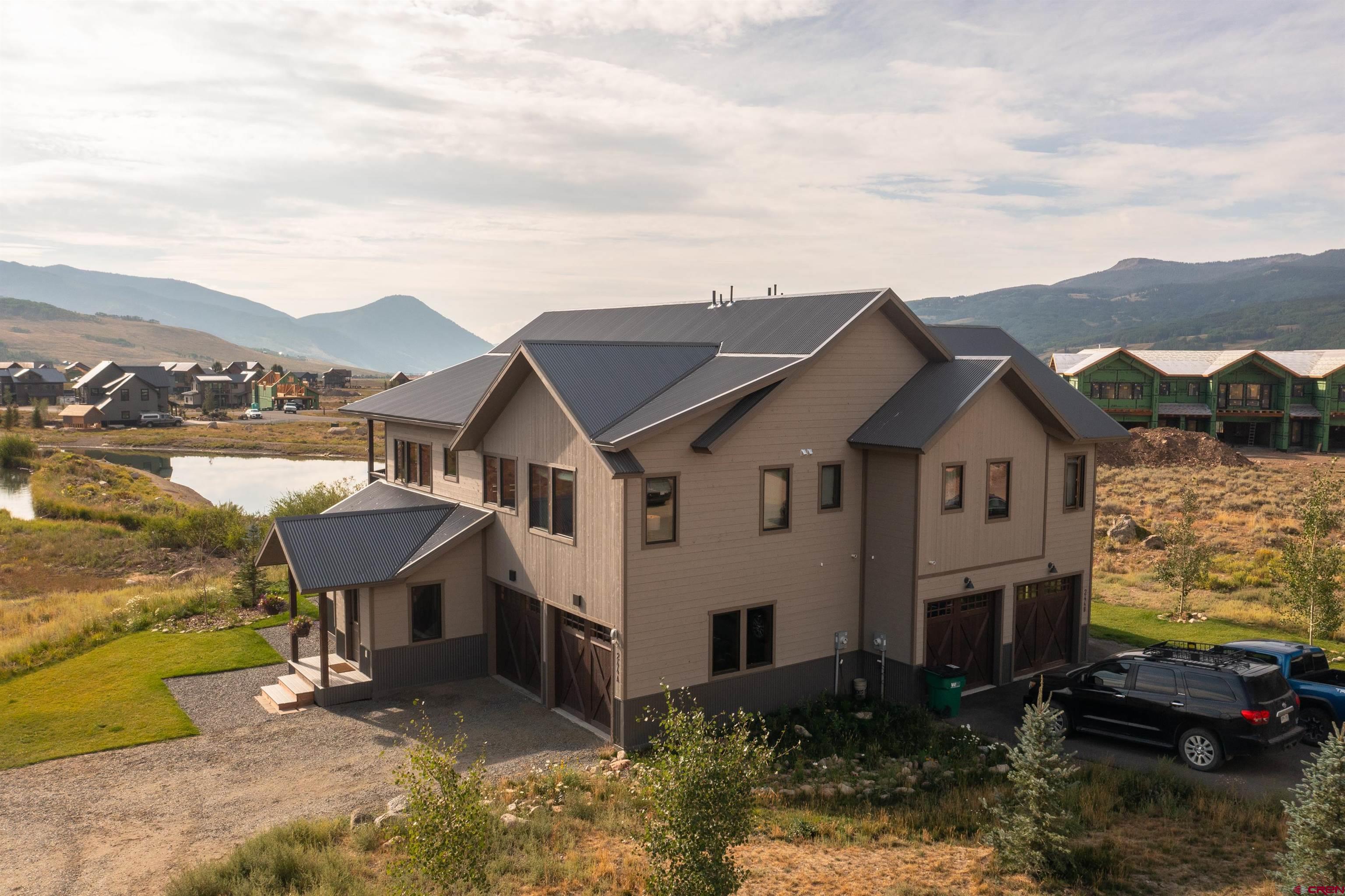 Make yourself at home in this immaculate 1/2 of a duplex with mountain views and backing up to one of Buckhorn Ranch’s two neighborhood ponds. Built in 2021, this home feels brand new and features an open floor plan, vaulted ceilings, and plenty of windows, allowing for lots of natural light. Upstairs are the living room, dining area, and kitchen with granite countertops, stainless steel appliances, and abundant cabinet space. Also on the second floor are a half bathroom and the generously sized primary bedroom, featuring a walk-in closet, an en-suite bathroom with double vanity and oversized shower, and a loft space. On the main level are the other two spacious bedrooms, a full bathroom with double vanity and granite countertops, a laundry room, and the heated 2-car garage. Step onto the private deck and enjoy views of Crested Butte Mountain while you grill, or look over the water and enjoy views of Cement Mountain, Whetstone Mountain and beyond while you sip on your morning coffee. Fully furnished with a high-end furniture package, this home is ready for you to move in! Buckhorn Ranch is a growing community conveniently located only 8 minutes from downtown Crested Butte, 4 minutes away from Crested Butte’s golf course, and it is also home to Crested Butte’s only runway for private planes. Buckhorn Ranch residents also enjoy easy access to all the outdoor recreation the Brush Creek corridor has to offer. Call me to set up your showing today!