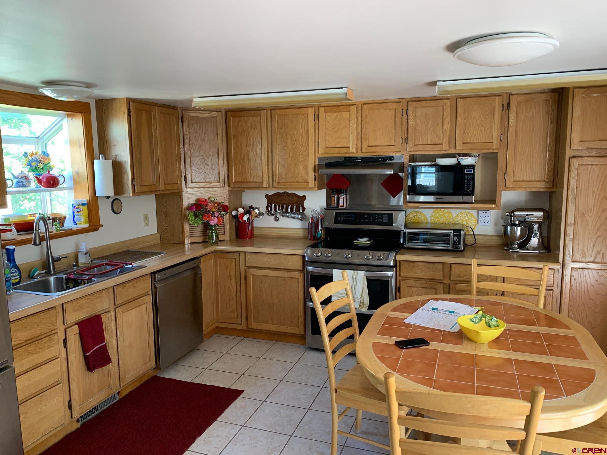 This quaint family home is situated on a prime corner site in Original Gunnison with easy access to everything. The stunningly beautiful yard has matured Aspen and Pine trees and a textured concrete patio to host your outdoor gatherings. The inviting kitchen is tiled and includes all appliances. Large living room with woodburning stove, an upstairs family room, MBR and Den on the ground floor with 2 bedrooms on the second floor, 1 3/4 baths, utility room and a basement mechanical room with extra storage. Wonderfully large detached 3 car garage. The lush lawn and flower gardens are watered by a city ditch and a 7-zone sprinkling system. Very established neighborhood in a great location.