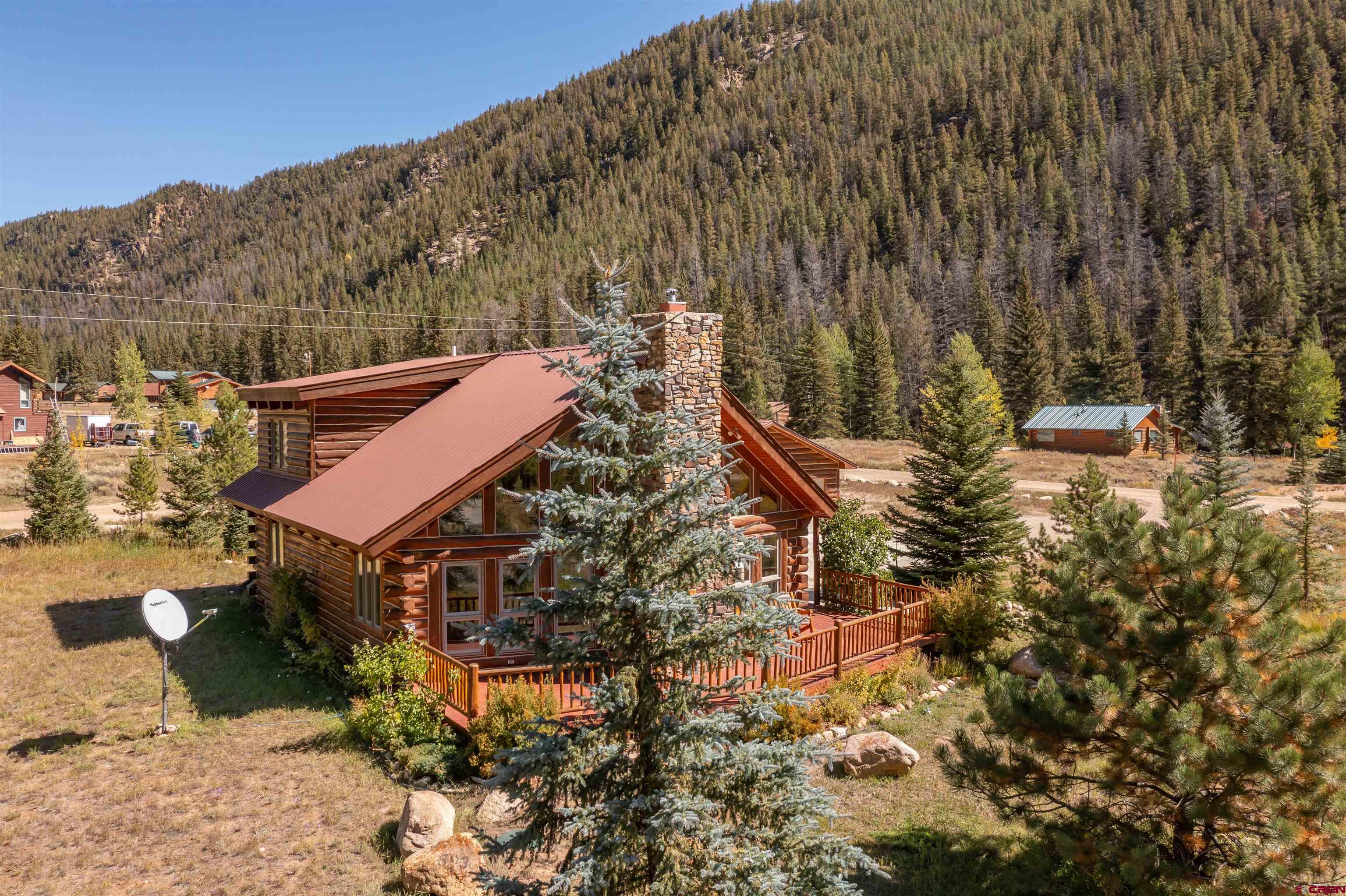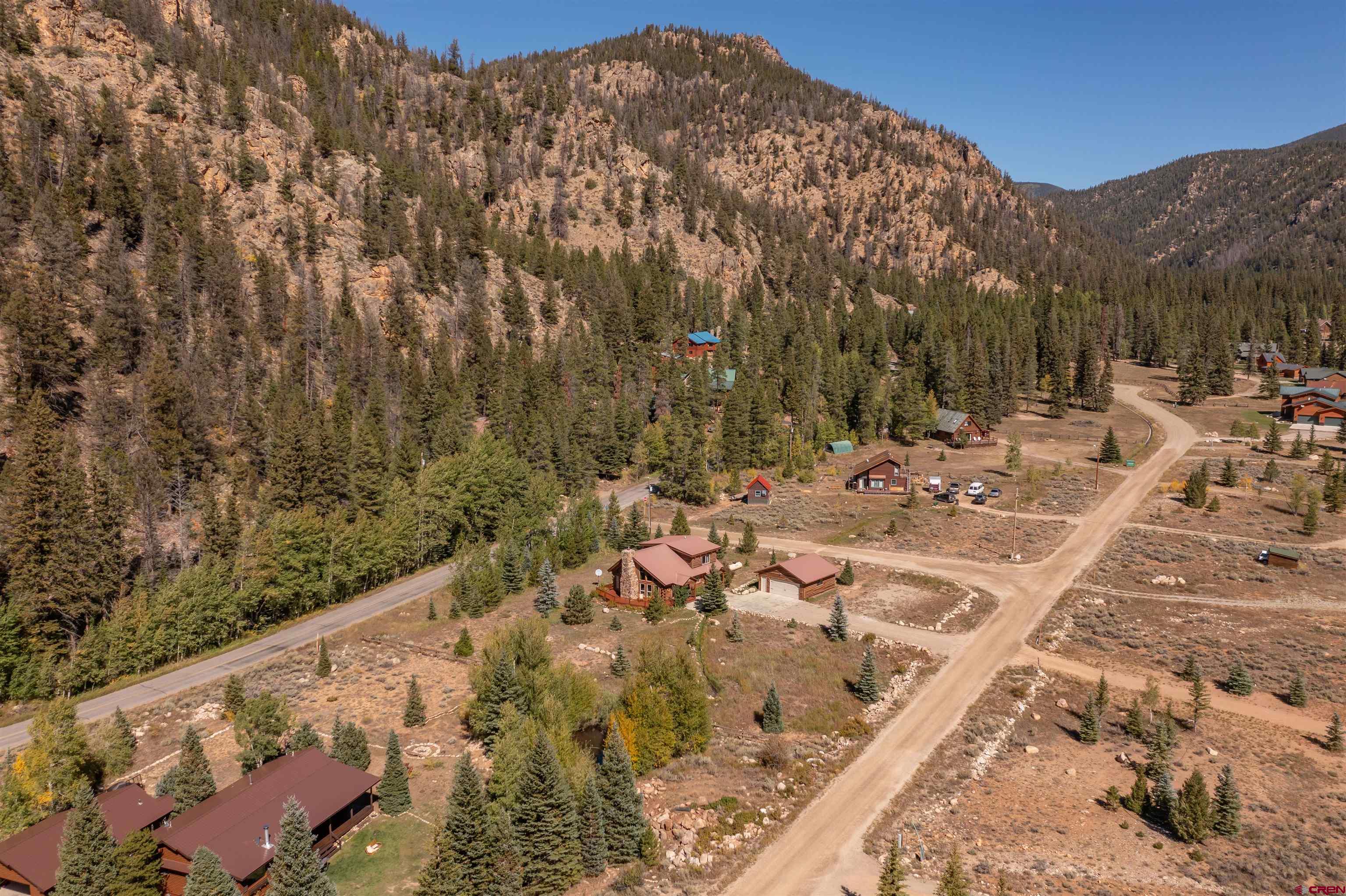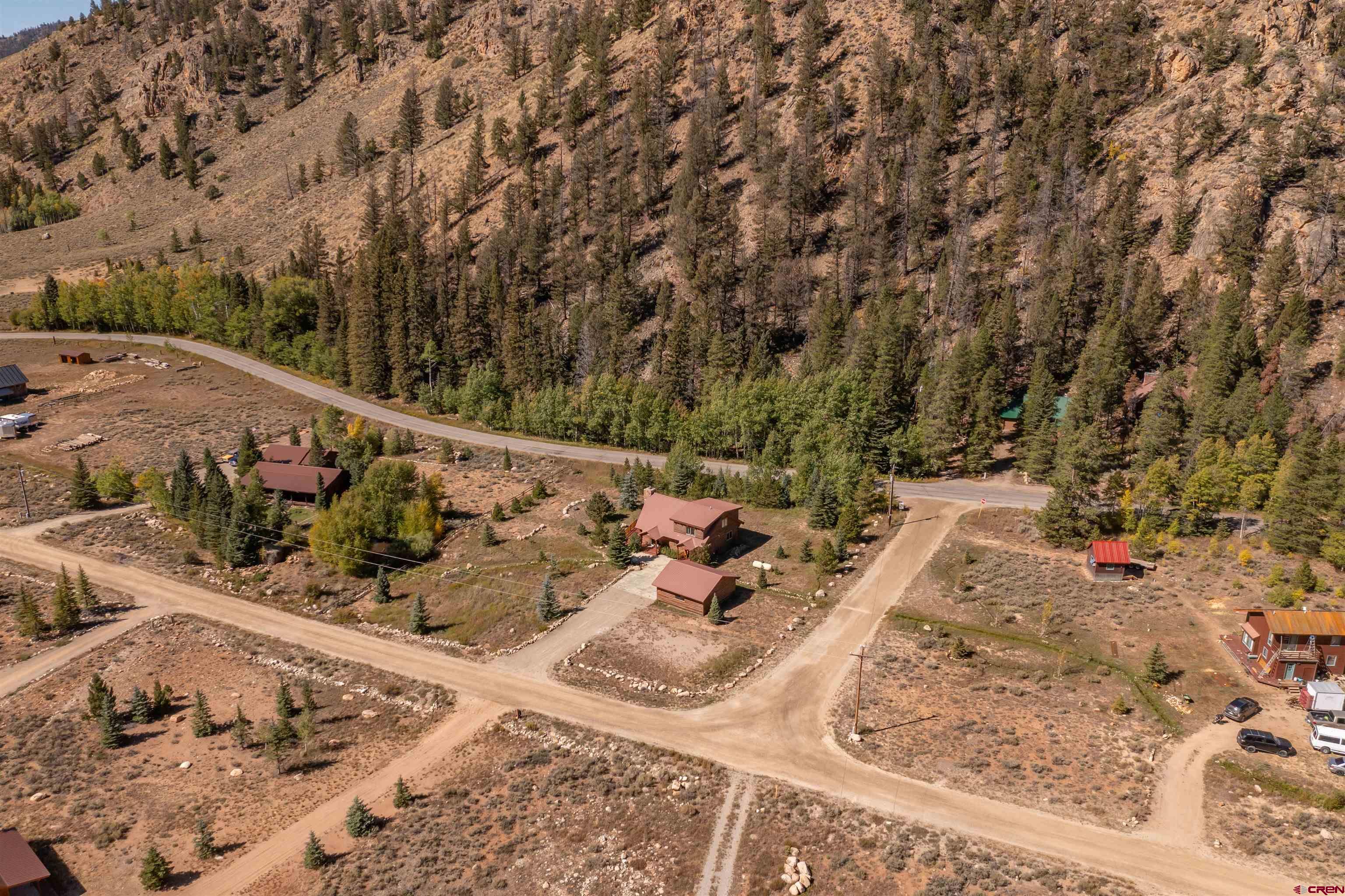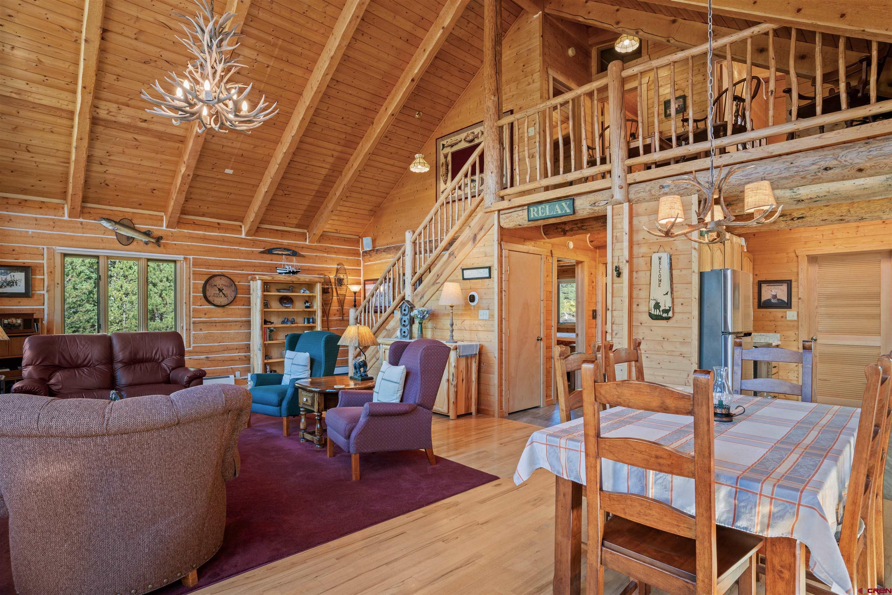 This exquisite log cabin is nestled within the scenic confines of Spring Creek Canyon, perfectly positioned on a sprawling, level lot spanning 0.92 acres adorned with majestic mature Aspen and Pine trees. You'll be captivated by the grandeur of soaring vaulted ceilings, adorned with intricate tongue and groove woodwork, complemented by floor-to-ceiling windows that bathe the interior in natural light. The centerpiece of the living room is a magnificent stone, wood-burning fireplace that adds both warmth and charm. This living space offers breathtaking canyon vistas, making it an ideal spot for relaxation.The kitchen has been beautifully renovated with new appliances, new countertops, new hardware and more plus it seamlessly adjoins the living area, creating a convenient layout for hosting and entertaining. The main floor boasts a generously sized bedroom and a full bathroom, ensuring comfortable living on this level. The bathroom has been updated with new flooring, vanity and countertop, sink, plumbing and a brand new shower surround and toilet. Ascending the stairs, you'll find a lofted landing that not only provides spectacular views but also serves as a versatile space for a home office or play area. Two additional bedrooms and another completely updated full bathroom grace the upper level, with the larger bedroom featuring a spacious closet and two windows framing picturesque canyon panoramas. Outside, a detached two-car garage awaits and has a brand new insulated garage door, complete with ample storage space and a practical workbench. Nature enthusiasts will relish in the abundant wildlife sightings on the property and the opportunity to stargaze from the front deck under the vast night sky. For outdoor adventurers, the location is a dream come true, with direct access to the renowned Doctor's Park trail for mountain biking enthusiasts and hundreds of miles of National Forest just a short distance away. Anglers will appreciate the proximity to the Taylor River, known for its world-class fishing. Spring Creek's strategic locale places it only 30 minutes from both Crested Butte and Gunnison. Notably, the owners have recently installed a brand new boiler, hot water heater, new washer and dryer and fully insulated the crawlspace, ensuring the home's continued comfort and efficiency. They have also stained the exterior and added a large cement pad in the driveway. Included in this offering are rare water rights to the Axtel Ditch for irrigation and it adds incredible ambiance as a babbling brook just off the porch. This residence has been meticulously cared for and is being offered partially furnished, making it an exceptional opportunity to embrace the mountain lifestyle in style and comfort.