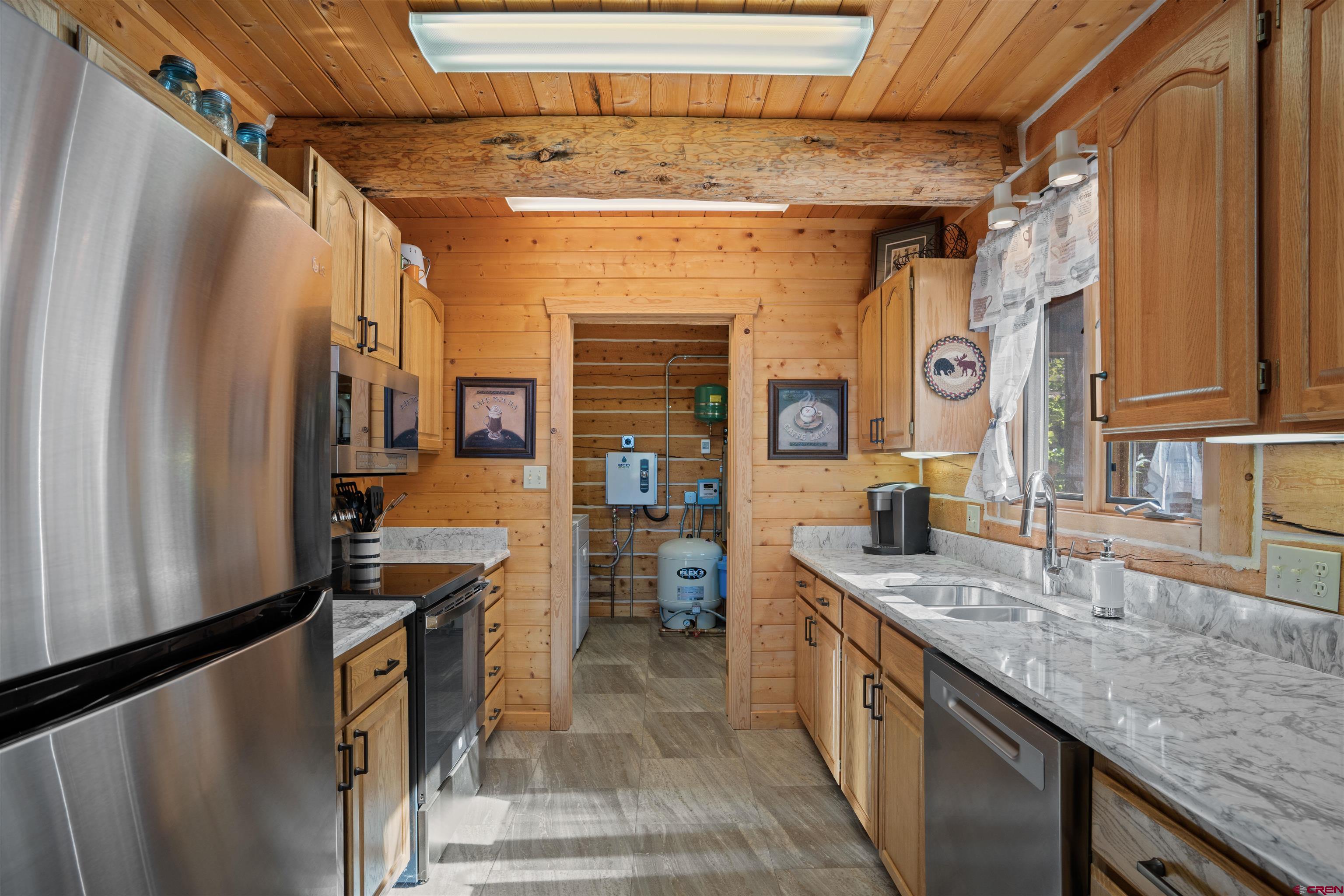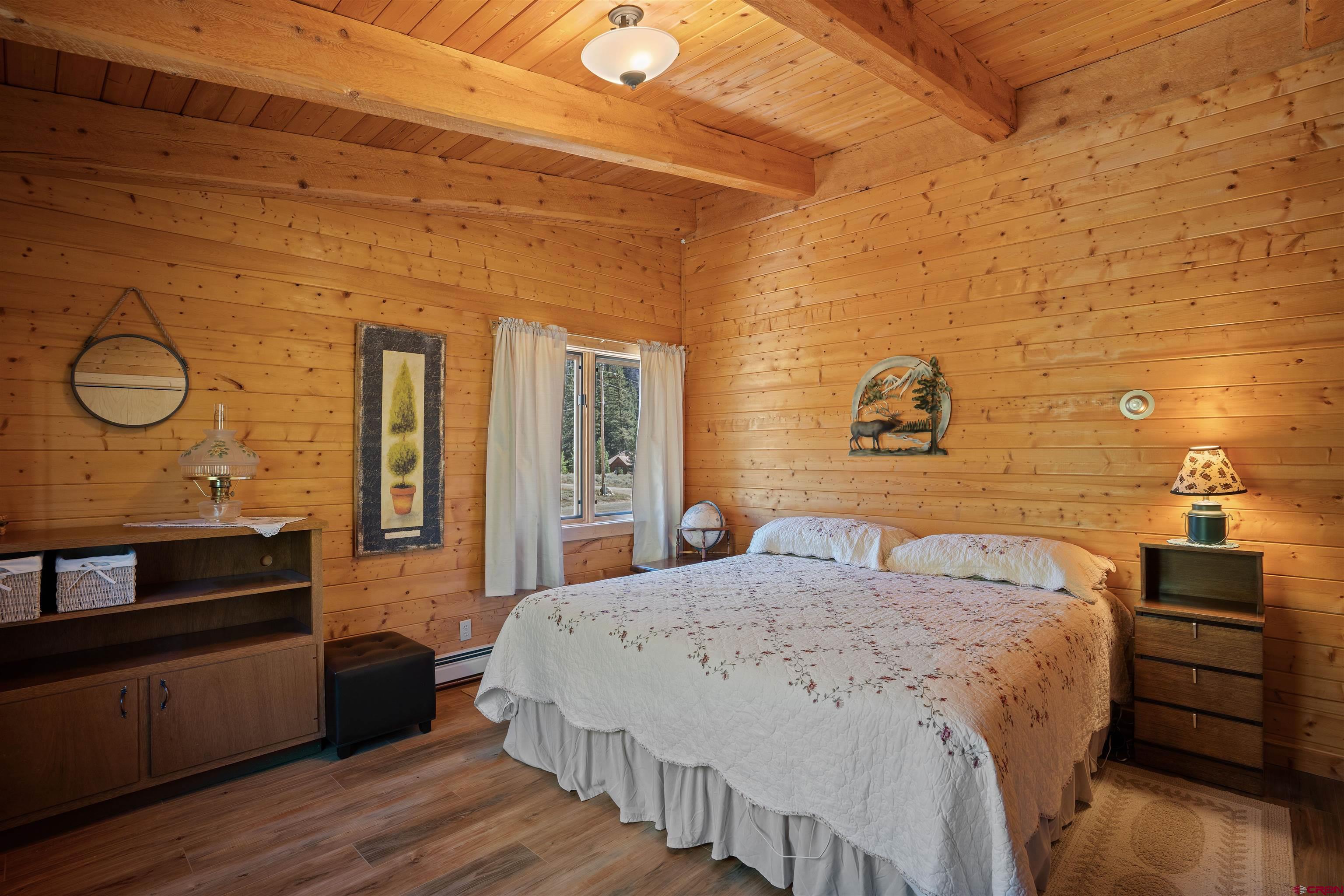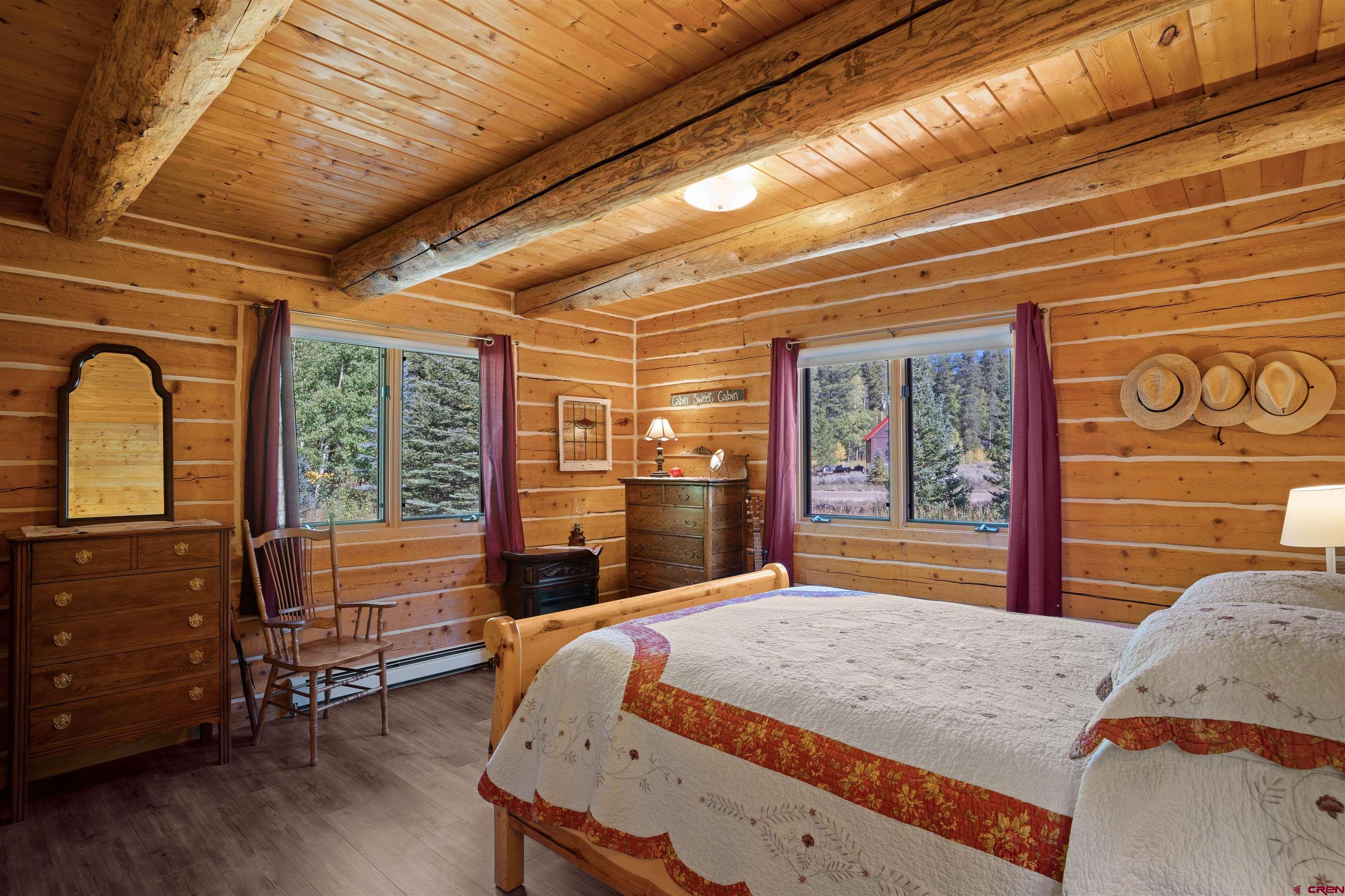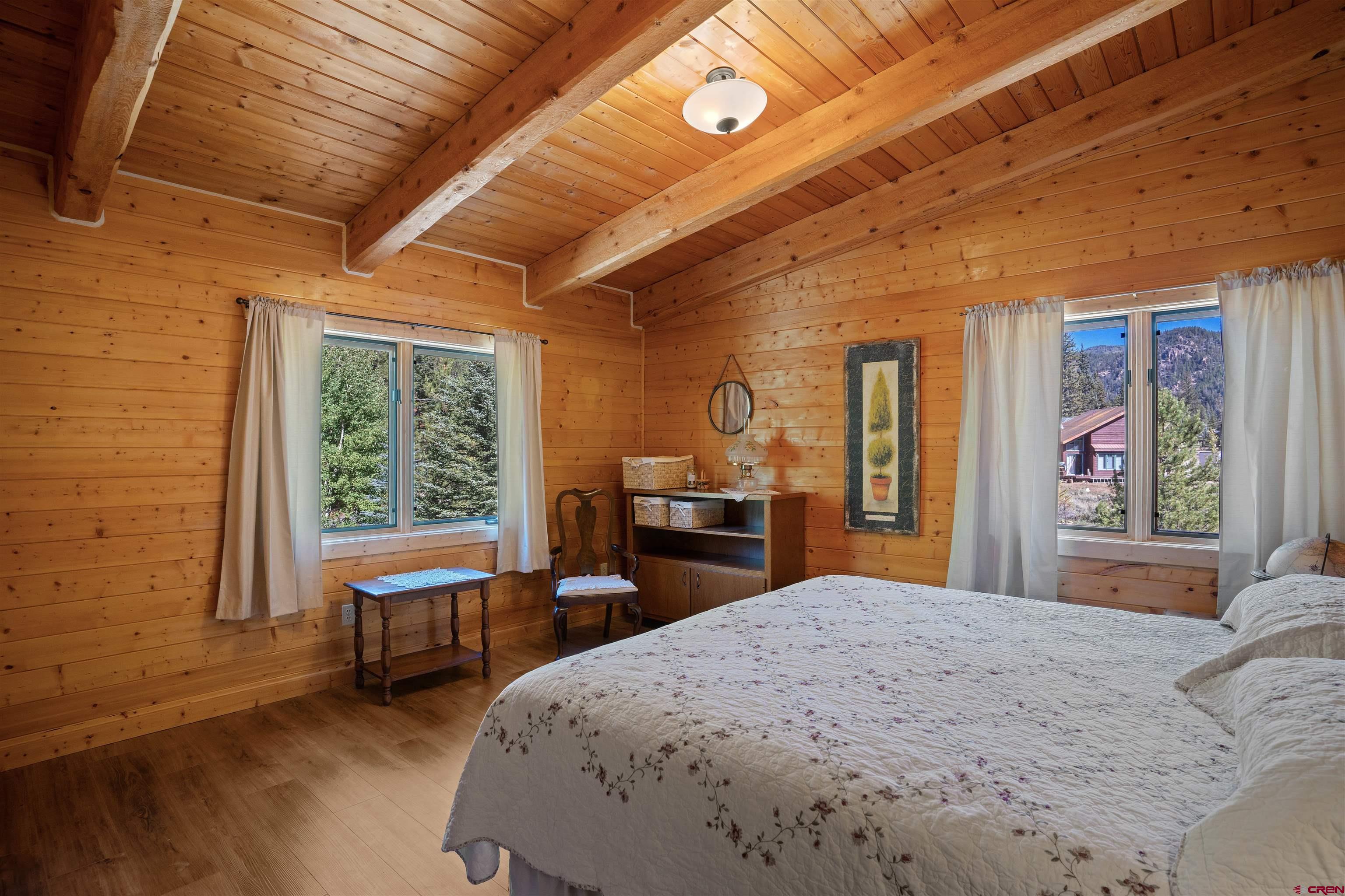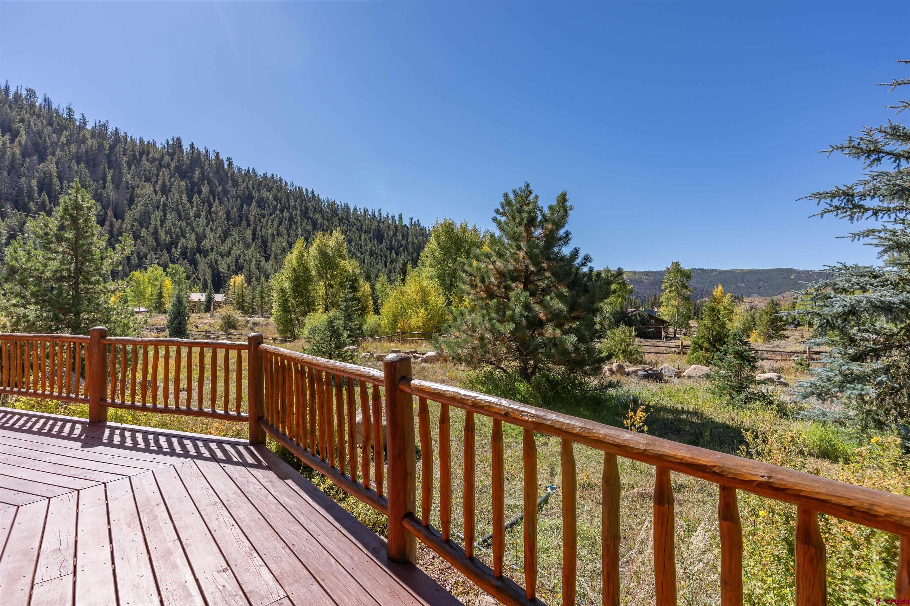 This exquisite log cabin is nestled within the scenic confines of Spring Creek Canyon, perfectly positioned on a sprawling, level lot spanning 0.92 acres adorned with majestic mature Aspen and Pine trees. You'll be captivated by the grandeur of soaring vaulted ceilings, adorned with intricate tongue and groove woodwork, complemented by floor-to-ceiling windows that bathe the interior in natural light. The centerpiece of the living room is a magnificent stone, wood-burning fireplace that adds both warmth and charm. This living space offers breathtaking canyon vistas, making it an ideal spot for relaxation.The kitchen has been beautifully renovated with new appliances, new countertops, new hardware and more plus it seamlessly adjoins the living area, creating a convenient layout for hosting and entertaining. The main floor boasts a generously sized bedroom and a full bathroom, ensuring comfortable living on this level. The bathroom has been updated with new flooring, vanity and countertop, sink, plumbing and a brand new shower surround and toilet. Ascending the stairs, you'll find a lofted landing that not only provides spectacular views but also serves as a versatile space for a home office or play area. Two additional bedrooms and another completely updated full bathroom grace the upper level, with the larger bedroom featuring a spacious closet and two windows framing picturesque canyon panoramas. Outside, a detached two-car garage awaits and has a brand new insulated garage door, complete with ample storage space and a practical workbench. Nature enthusiasts will relish in the abundant wildlife sightings on the property and the opportunity to stargaze from the front deck under the vast night sky. For outdoor adventurers, the location is a dream come true, with direct access to the renowned Doctor's Park trail for mountain biking enthusiasts and hundreds of miles of National Forest just a short distance away. Anglers will appreciate the proximity to the Taylor River, known for its world-class fishing. Spring Creek's strategic locale places it only 30 minutes from both Crested Butte and Gunnison. Notably, the owners have recently installed a brand new boiler, hot water heater, new washer and dryer and fully insulated the crawlspace, ensuring the home's continued comfort and efficiency. They have also stained the exterior and added a large cement pad in the driveway. Included in this offering are rare water rights to the Axtel Ditch for irrigation and it adds incredible ambiance as a babbling brook just off the porch. This residence has been meticulously cared for and is being offered partially furnished, making it an exceptional opportunity to embrace the mountain lifestyle in style and comfort.