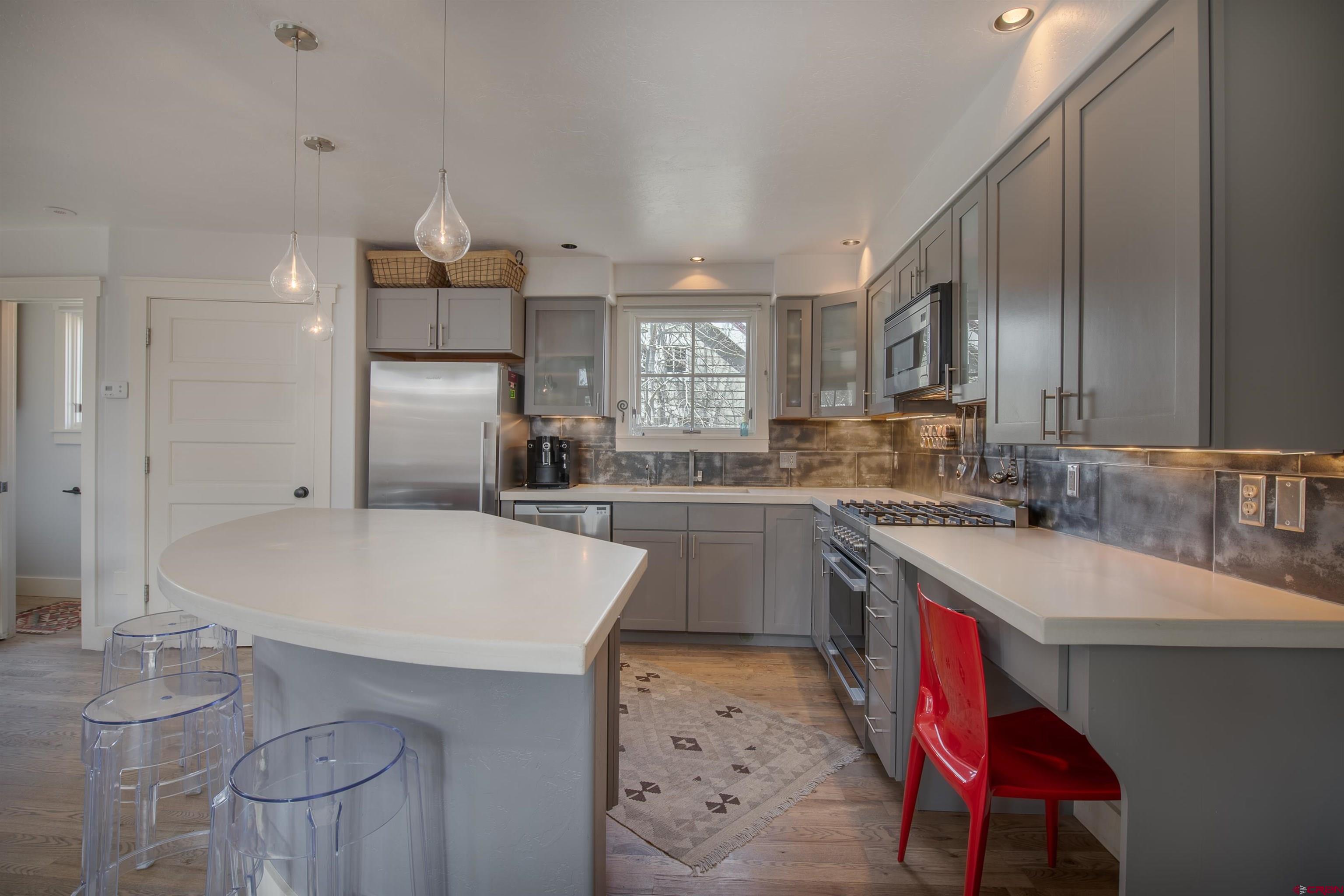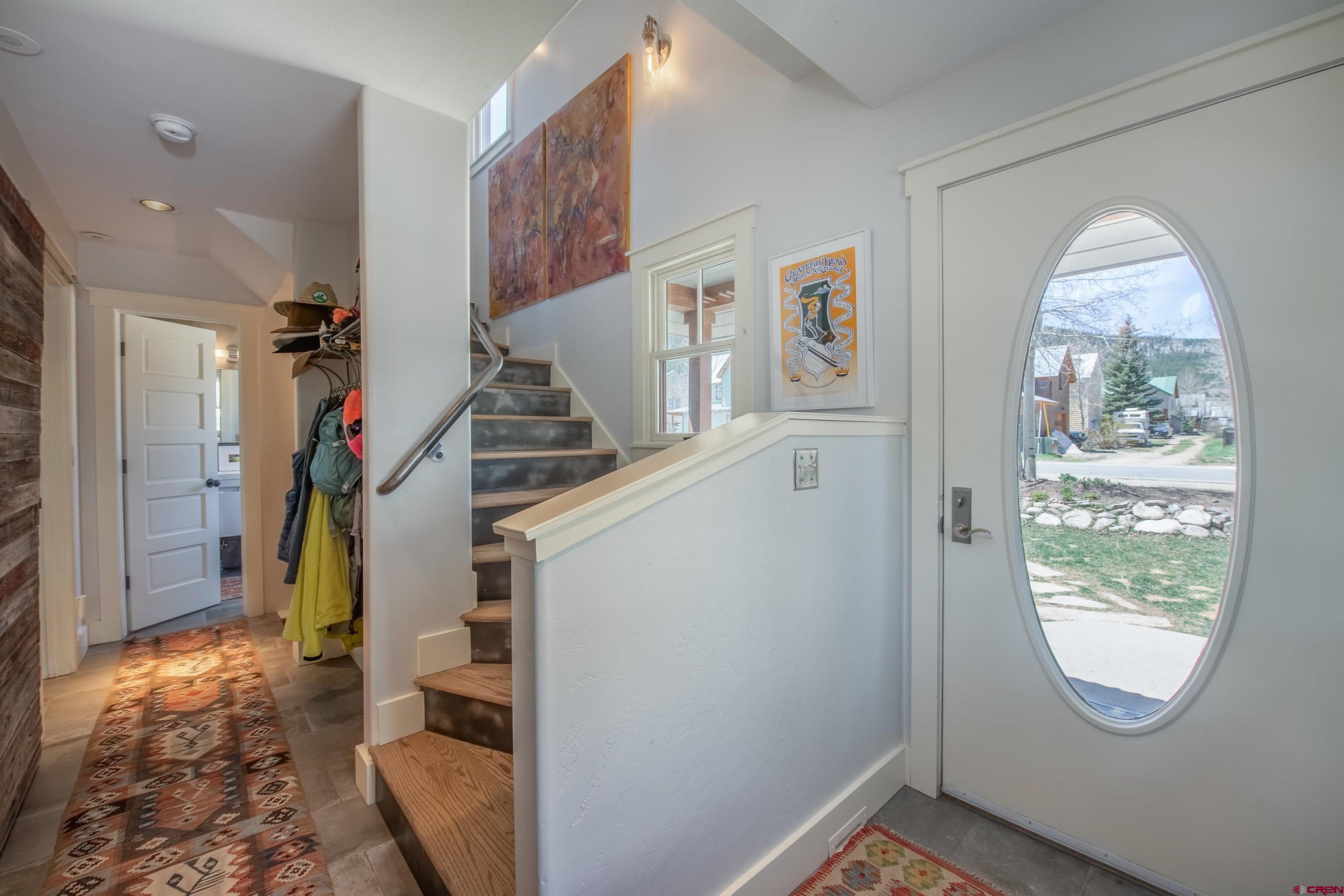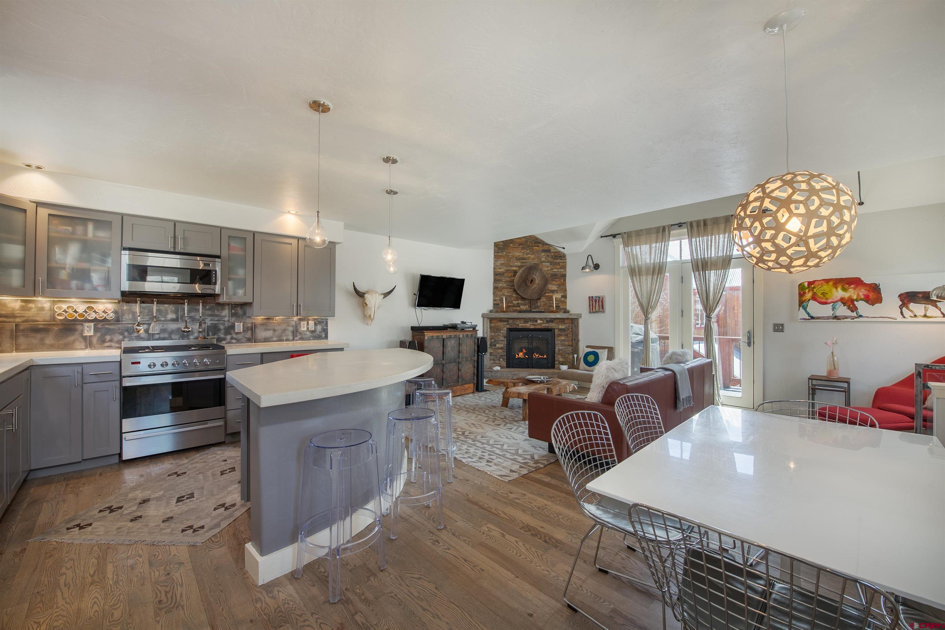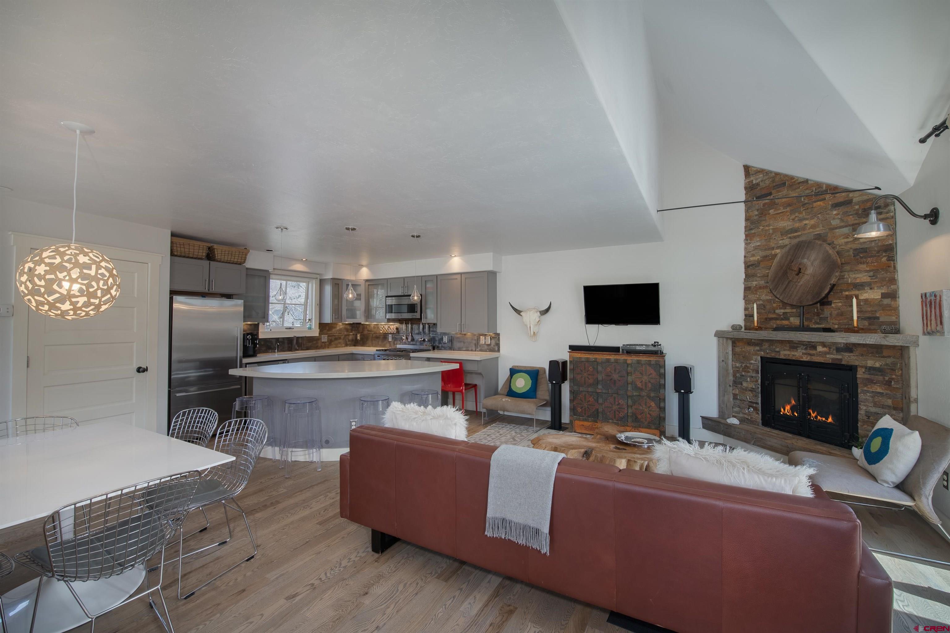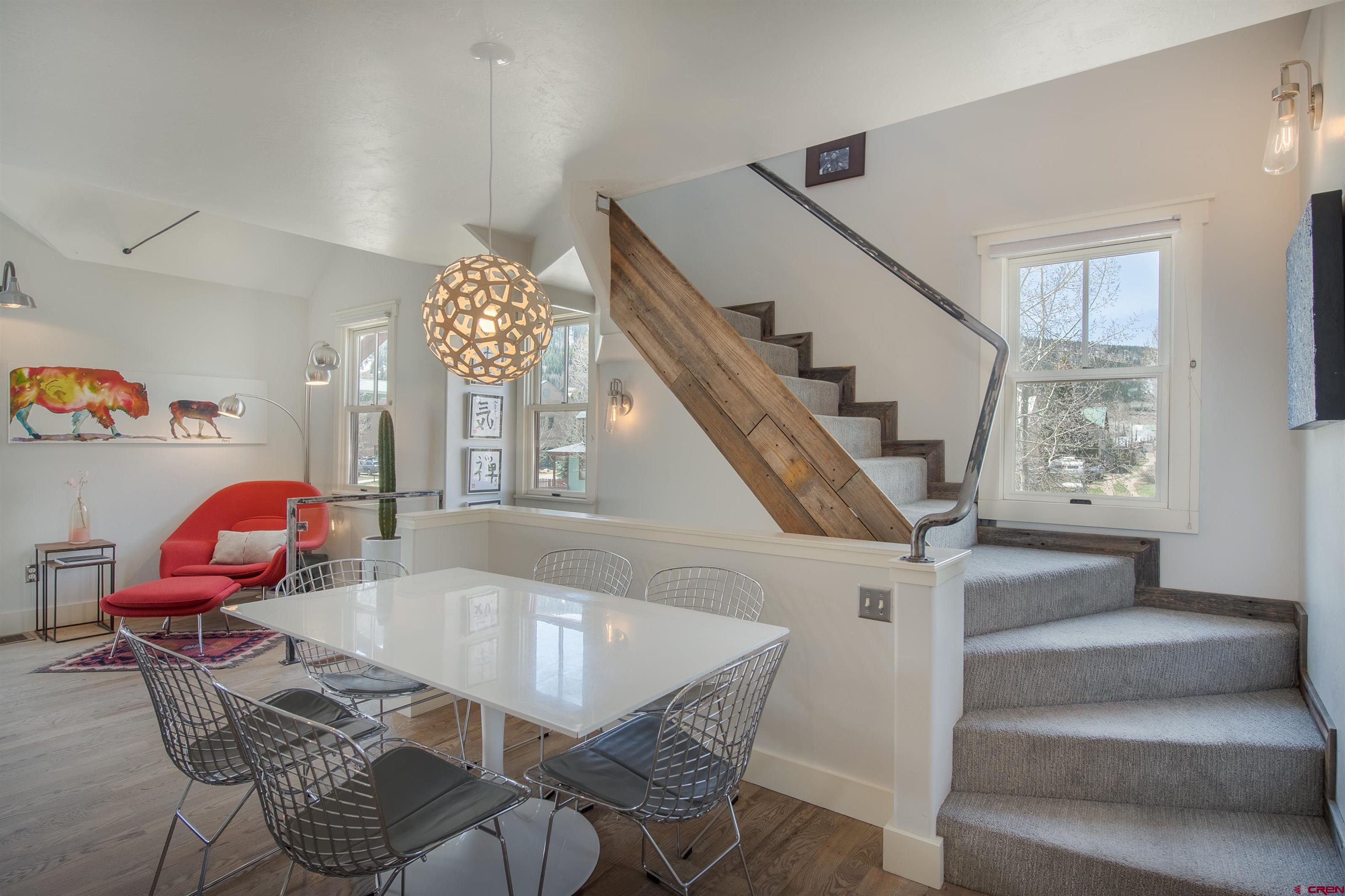 A beautiful home in a great location in the desirable east end of town, 710 Ninth is the Crested Butte offering you've been waiting for. The townhouse lives big at 2,248 SF with four bedrooms including a quiet top floor primary suite with skylights, a stylish full bath and a steam shower. The open floor plan comprises a well designed chef's kitchen with a Fisher-Paykal appliance package, poured concrete tops, a pantry, a center island, a separate dining area, a comfortable living area with a rock fireplace and a nice south side deck perfect for bar-b-ques or relaxing with a beer after a mountain bike ride. Other interior highlights include gorgeous oak flooring, metal hand rails and stair risers and barn wood doors and trim. Two more bedrooms and full bath complete the 1st floor and downstairs, the fourth bedroom and a second living area round out this great home. Off the back alley, there is a full garage space with a studio office above and a 1/2 bath along with an enclosed storage space. Mature trees, flower gardens and landscaping wrap the property and the fenced area is a great spot to hide the townie bikes.